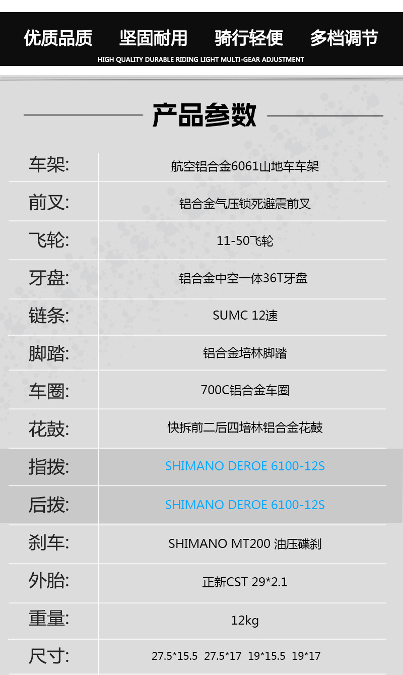 | HORQUILLA DELANTERA | Horquilla delantera de bloqueo de presión de aire de aleación de aluminio |