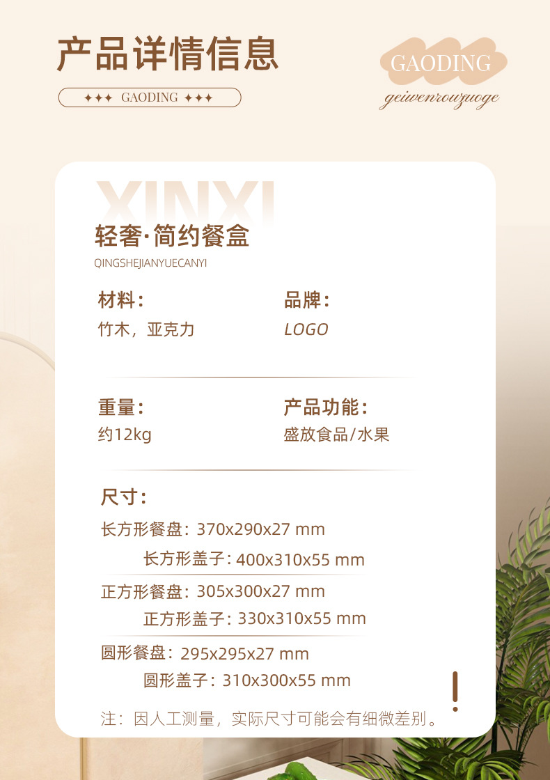 | Colores | Conjunto rectangular de bambú y madera,Juego cuadrado de bambú y madera,Juego redondo de bambú y madera,Cubierta rectangular,Cubierta cuadrada,Cubierta redonda |