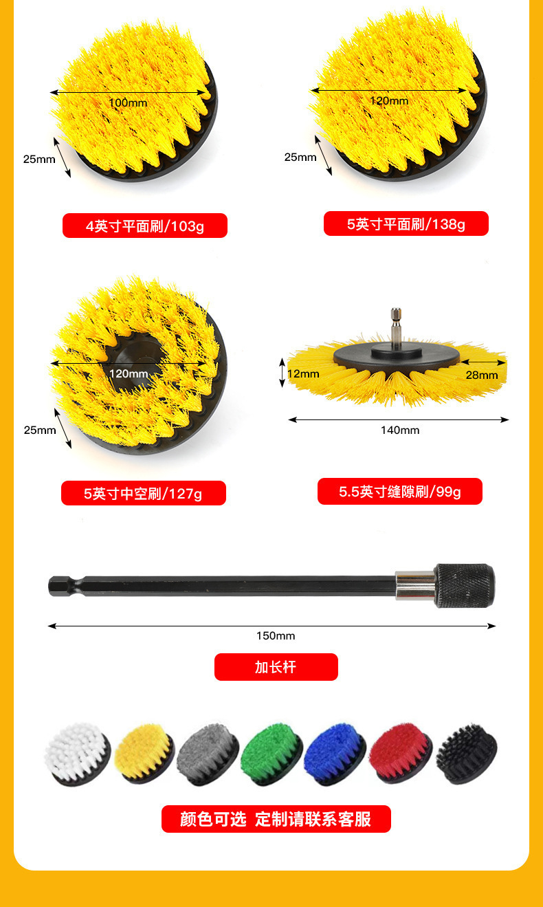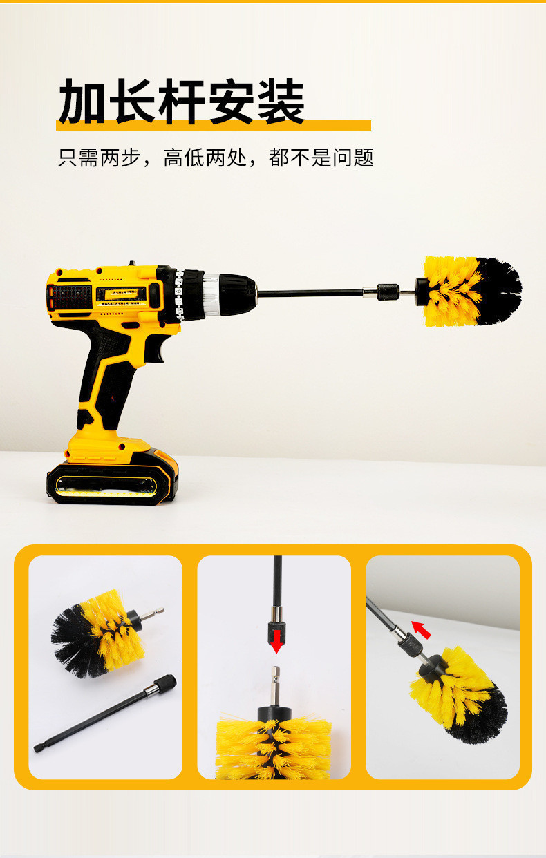 Taladro eléctrico de mano Juego de cabezal de cepillo de limpieza Cepillo de limpieza eléctrico Cepillo cónico Varilla de alargamiento Cepillo de cocina y baño de azulejos multifuncionales para el hogar