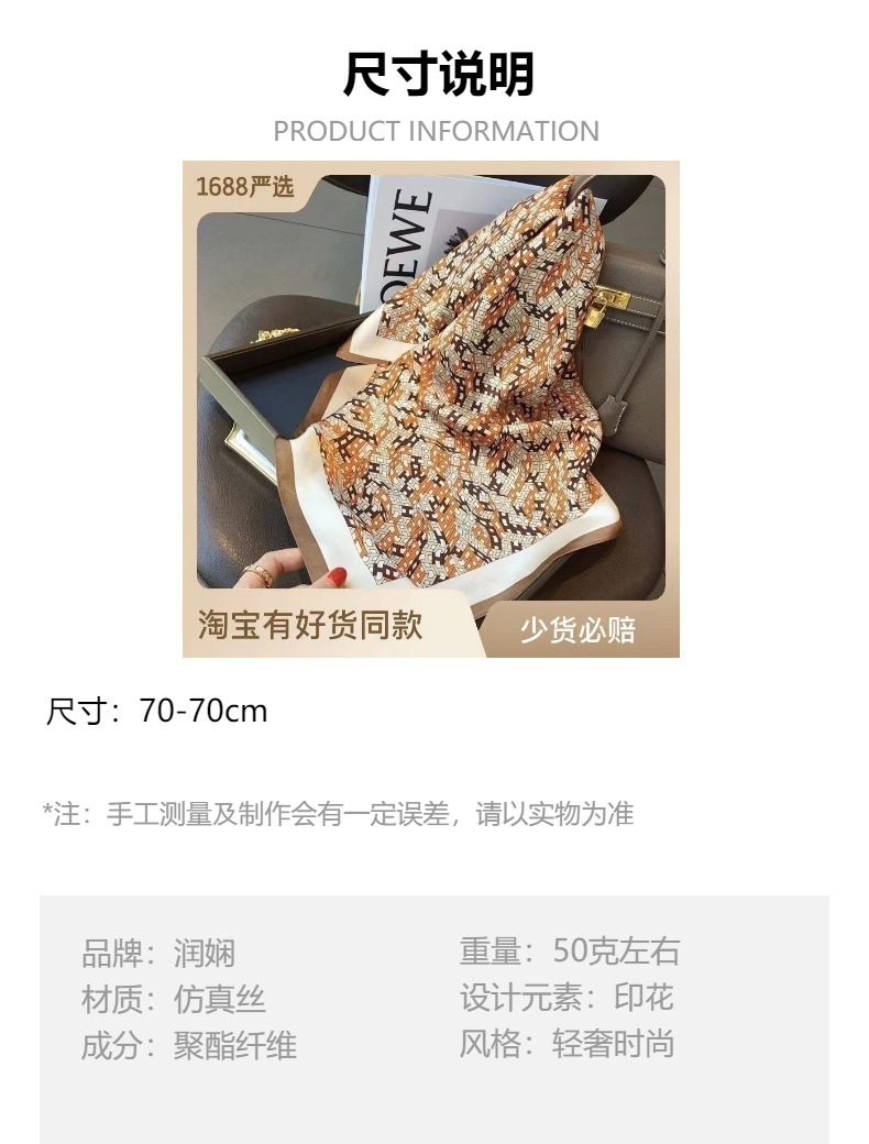 | Estilo | Negocios, versátil, elegante, minimalista, casual, moda ol, simple, europeo y americano, estilo de lujo ligero, estilo chic, sentido avanzado Pañuelo cuadrado |