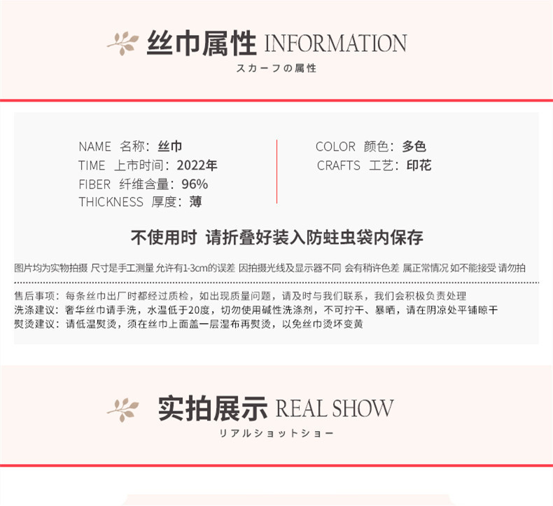 | Estilo | Negocios, versátil, elegante, minimalista, casual, moda ol, simple, europeo y americano, estilo de lujo ligero, estilo chic, sentido avanzado Pañuelo cuadrado |