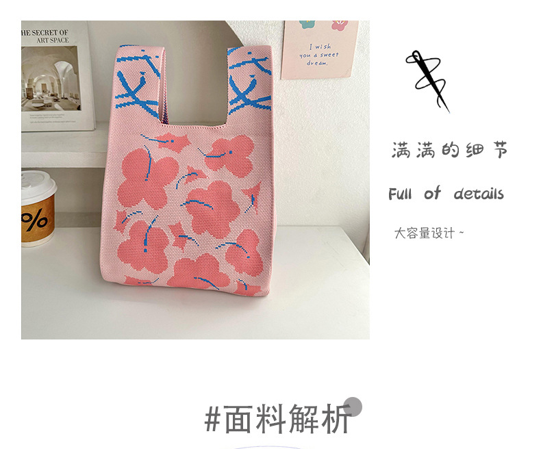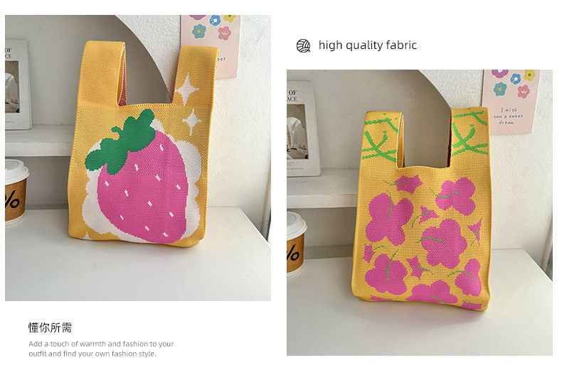 | Color | Fresas naranjas, fresas amarillas, fresas albaricoques, fresas moradas, mariposas naranjas, mariposas rosas, mariposas azules, tulipanes naranjas, tulipanes rosas, tulipanes azules, tulipanes verdes, grandes flores rosas, grandes flores azules, grandes flores moradas, tulipanes a rayas negras, tulipanes a rayas azules, tulipanes a rayas moradas, bolsos blancos (modelos ordinarios), bolsos negros (modelos alargados) |