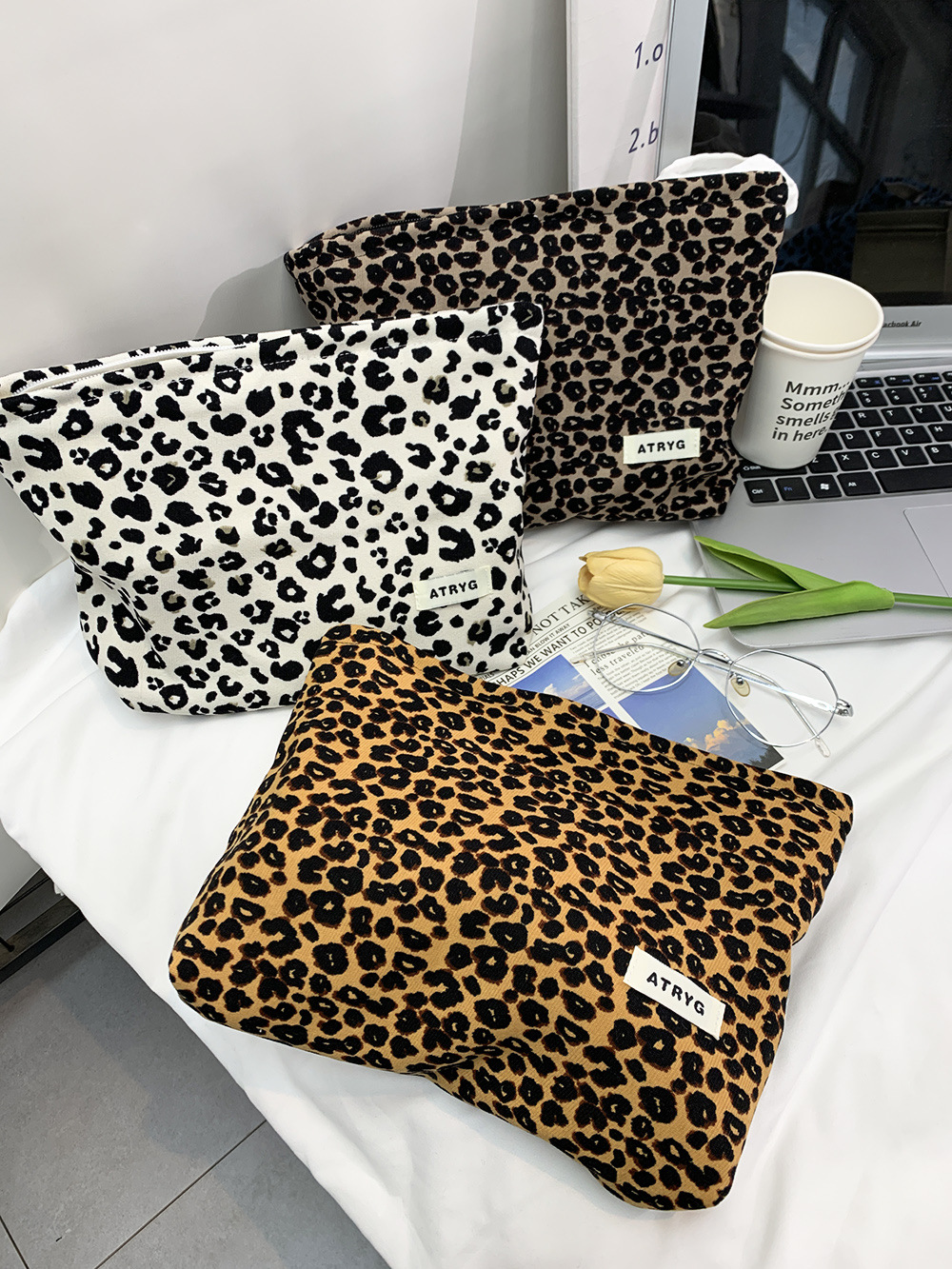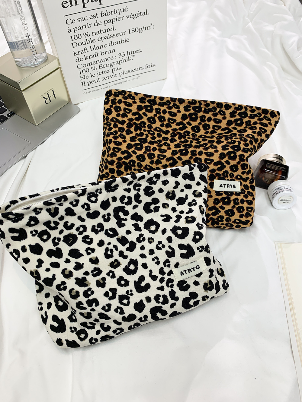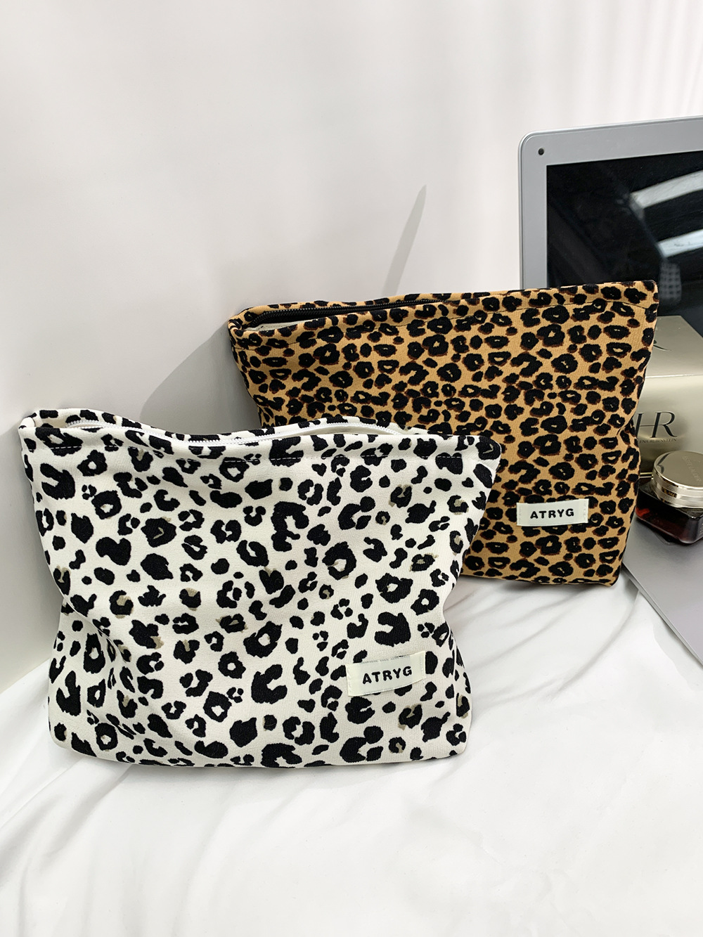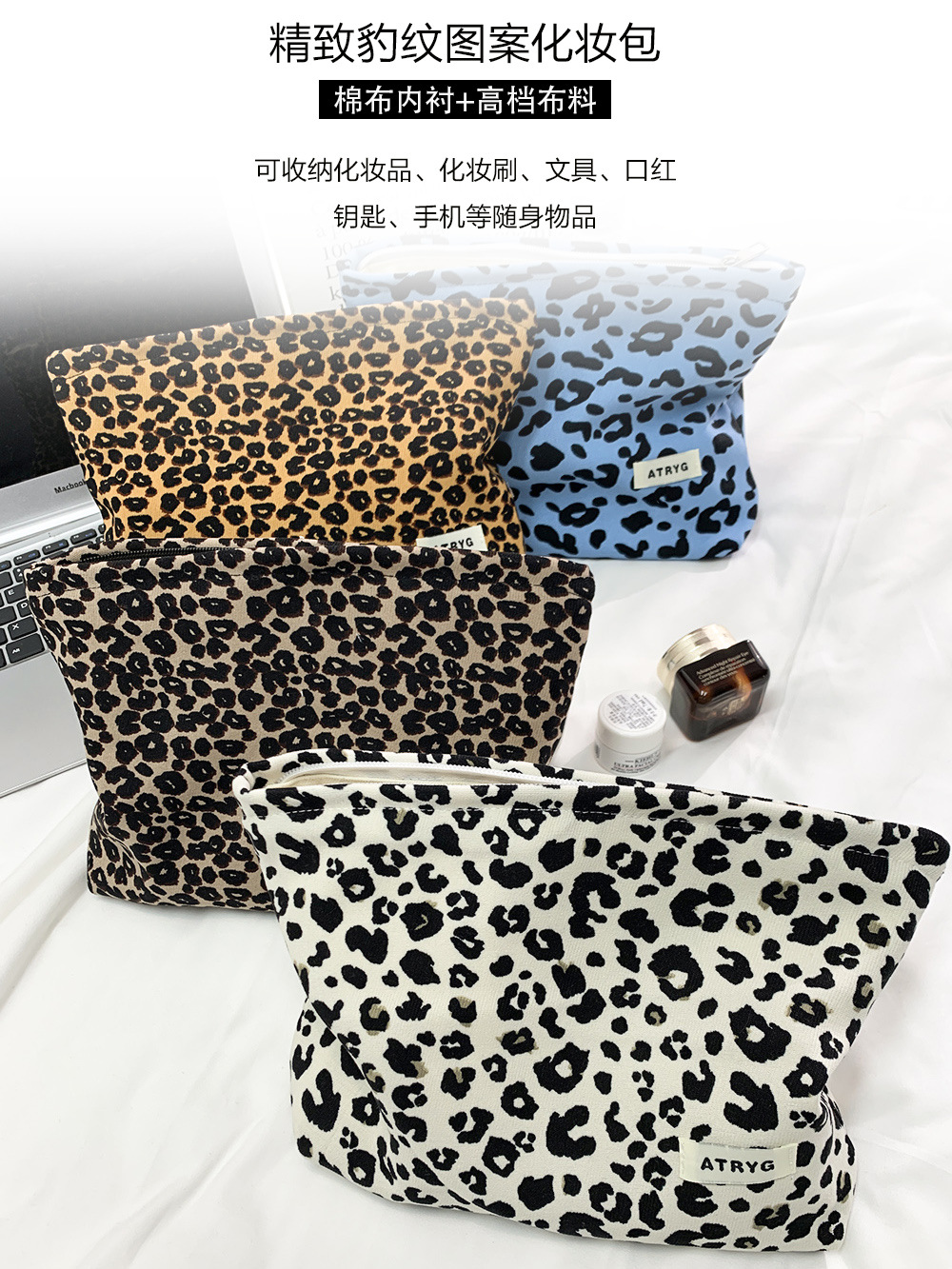 Bolsas de maquillaje de leopardo impresa bolsas de lápiz labial bolsas de almacenamiento portátiles de gran capacidad bolsas de mano una bolsa de lotes