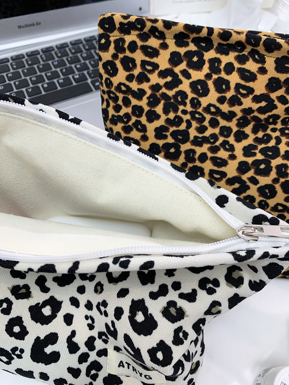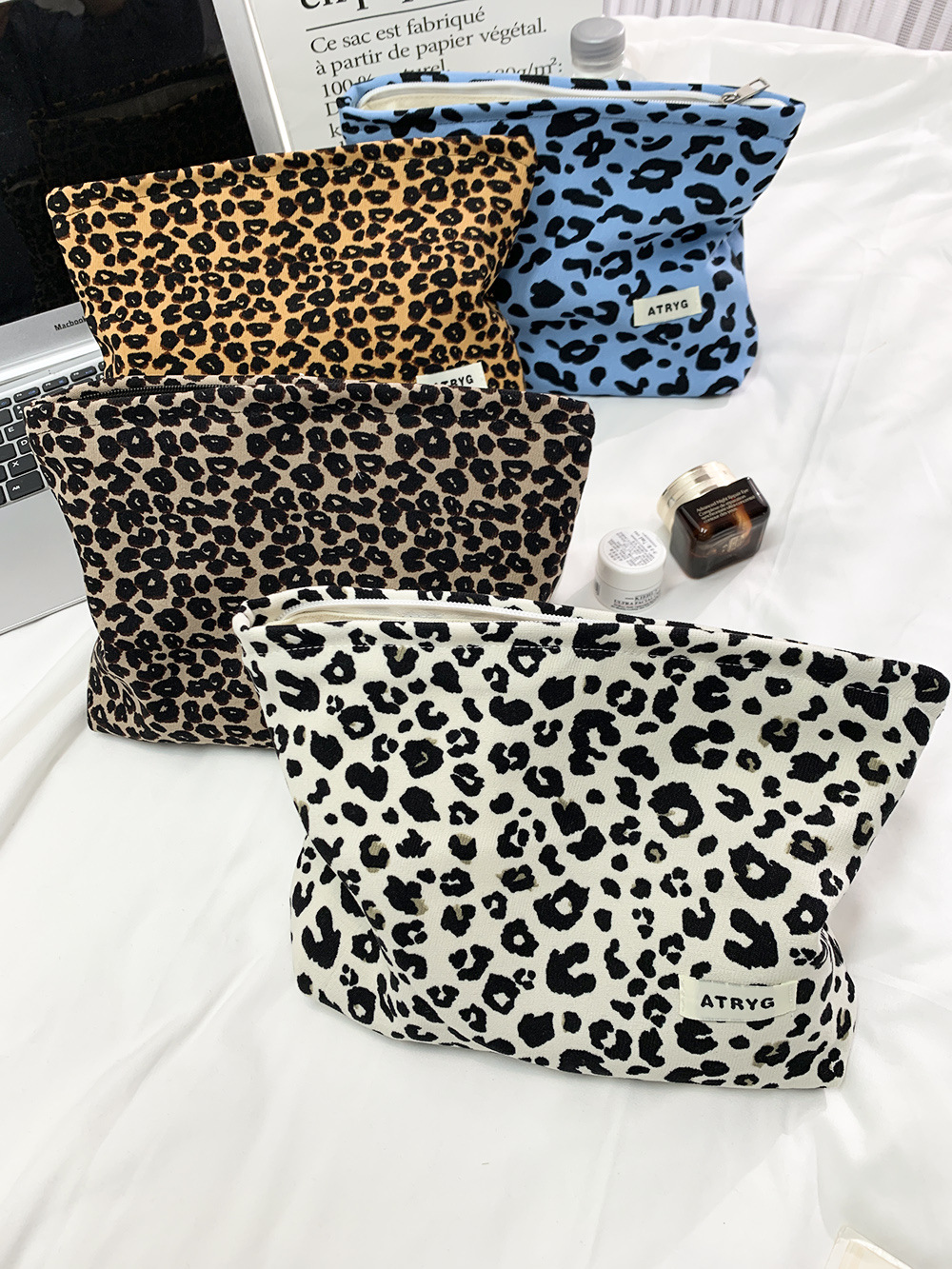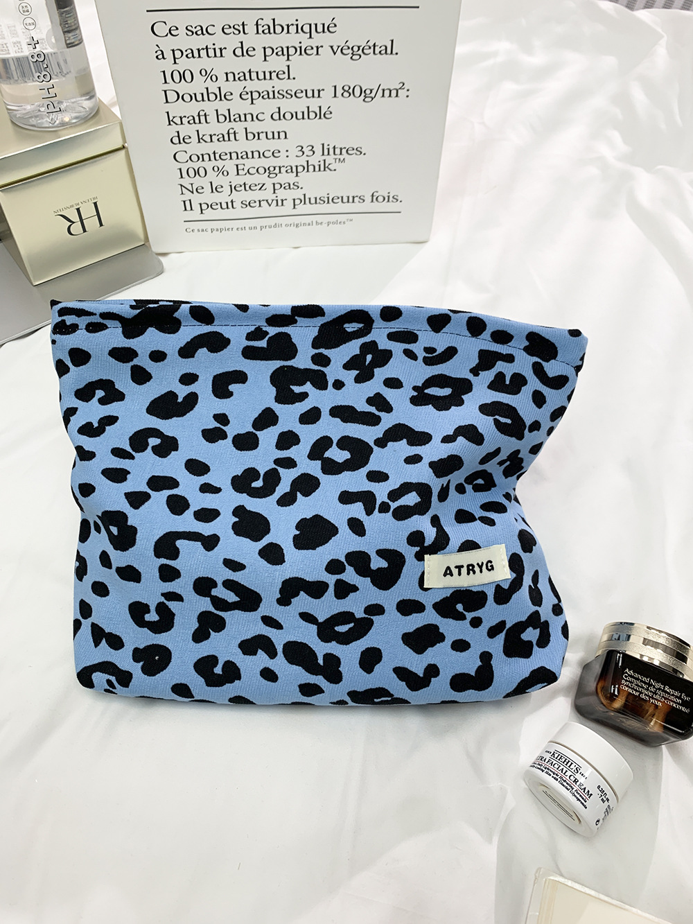 Bolso de maquillaje beige con estampado de leopardo pequeño, bolso de maquillaje azul con estampado de leopardo pequeño, bolso de maquillaje amarillo con estampado de leopardo pequeño, bolso de maquillaje marrón con estampado de leopardo pequeño