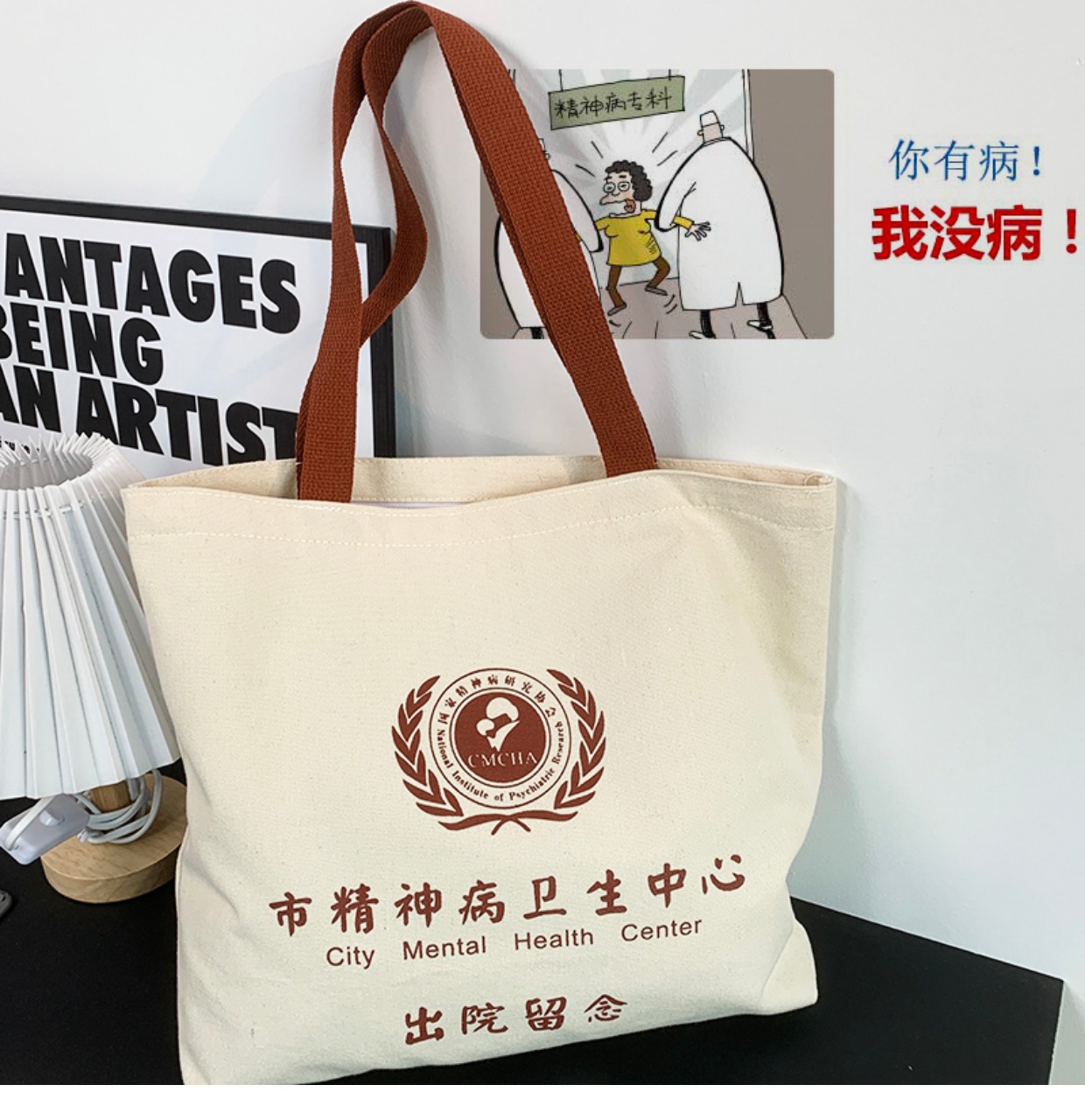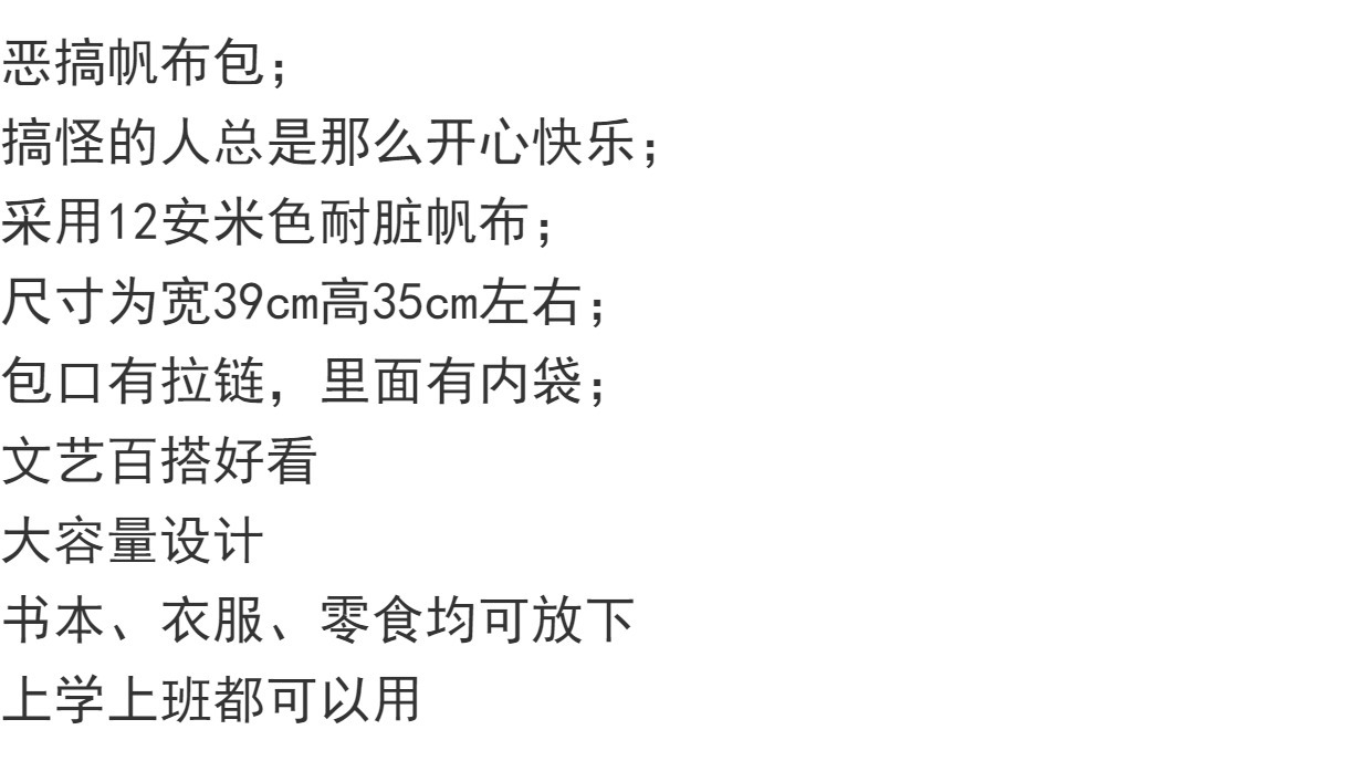 Verano nueva bolsa de protección del medio ambiente de hombro portátil de gran capacidad Estudiante artículos de regalo de descarga recuerdo enfermedad mental bolsa de lona hombres y mujeres