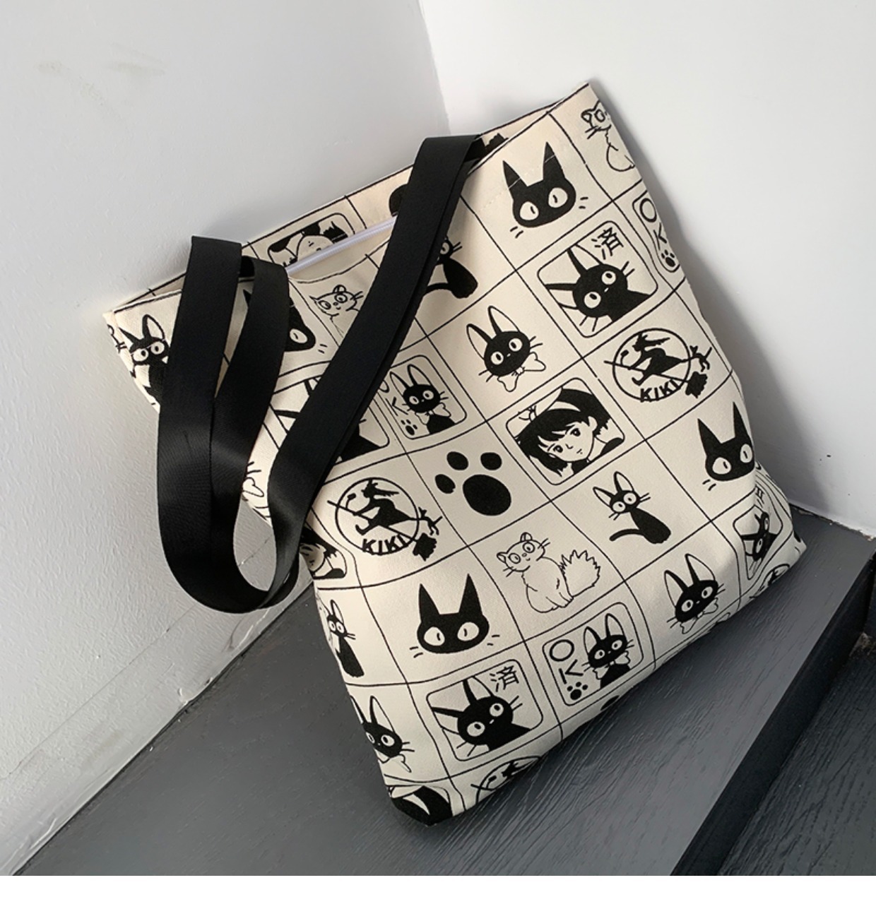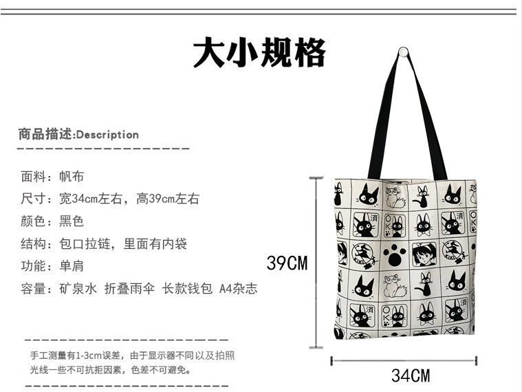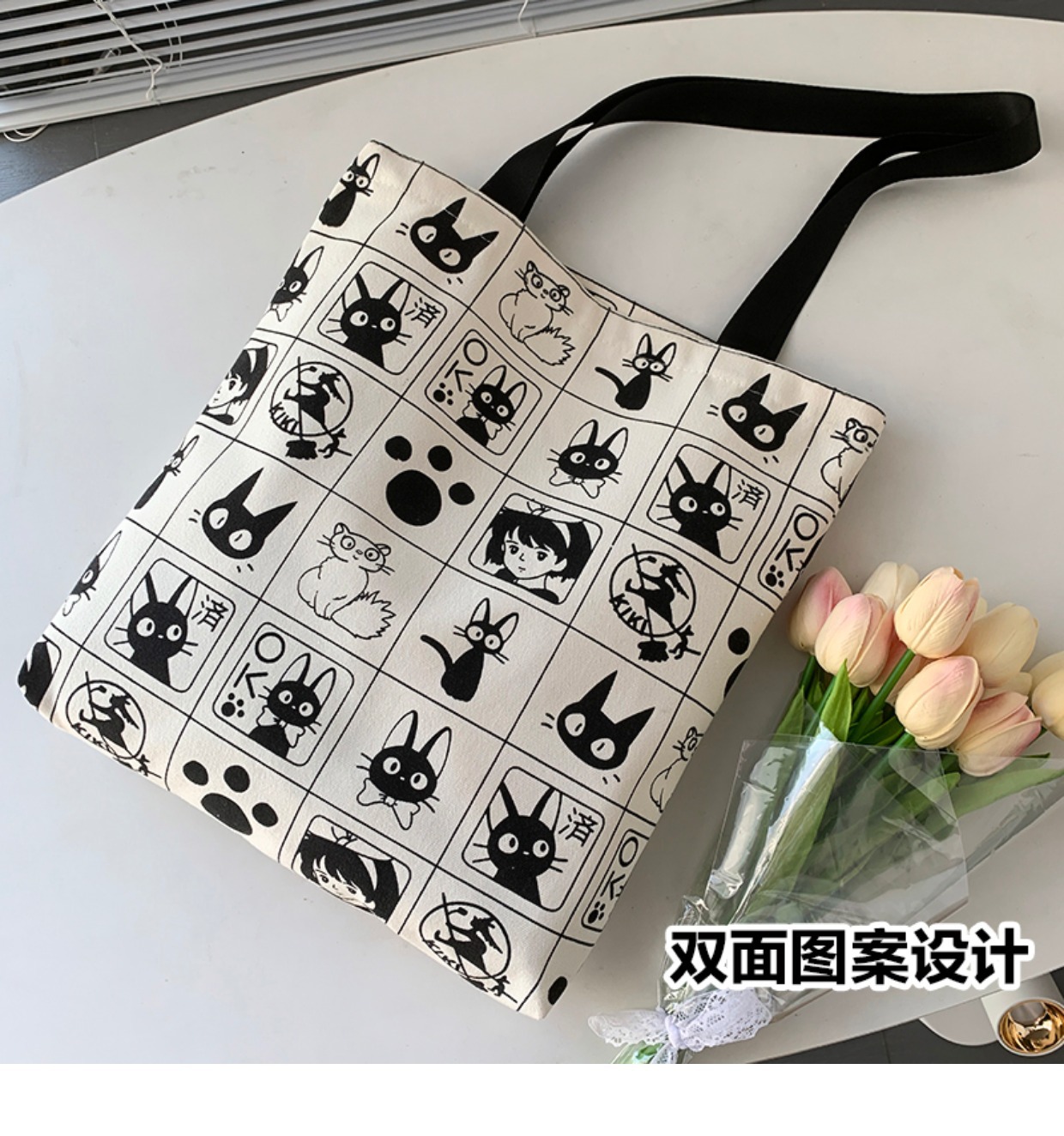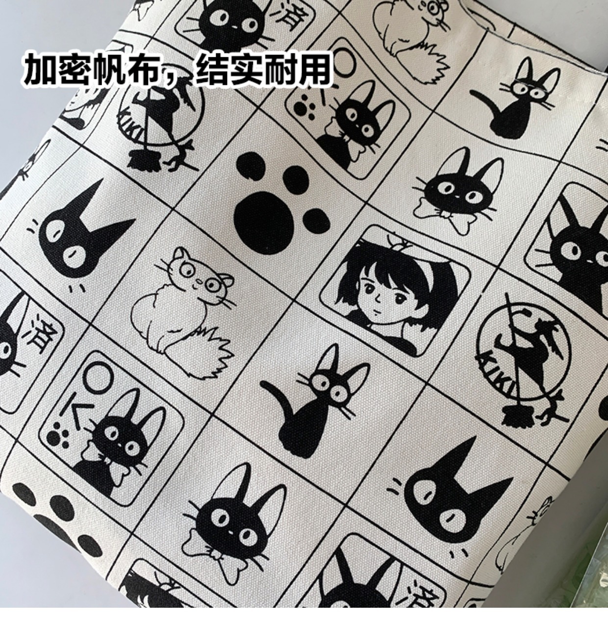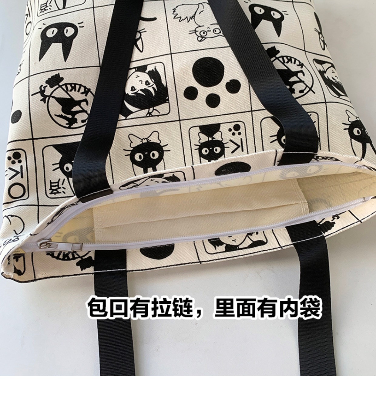 2023新款帆布包女单肩百搭ins可爱猫咪卡通学生上课拉链手提布包