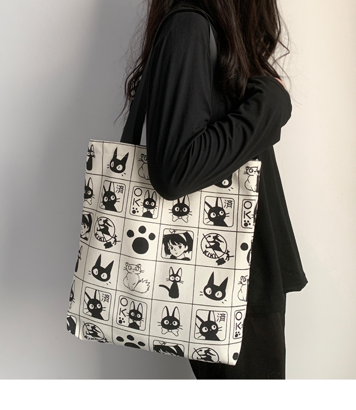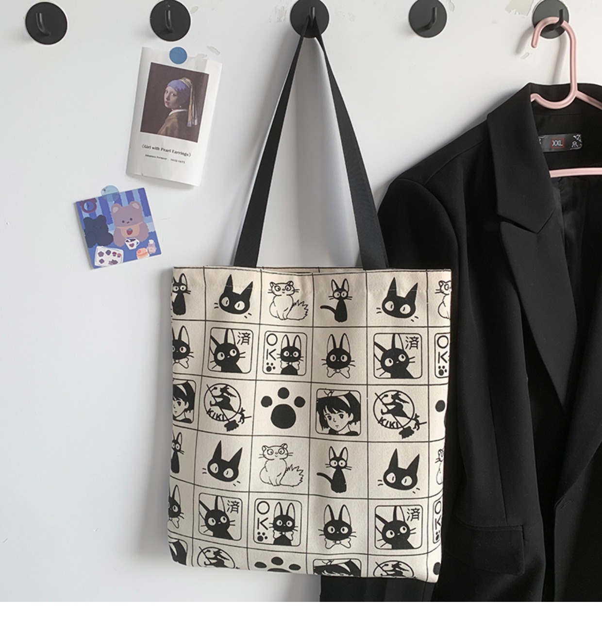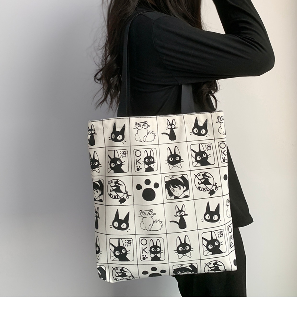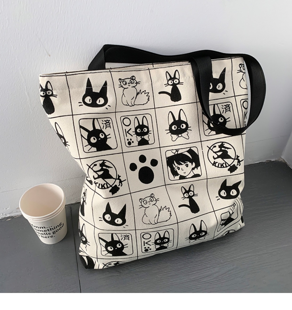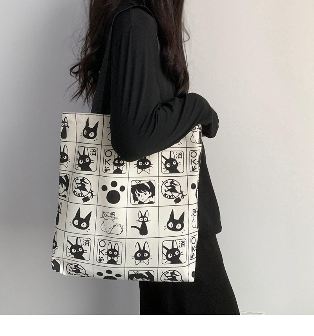 2023新款帆布包女单肩百搭ins可爱猫咪卡通学生上课拉链手提布包