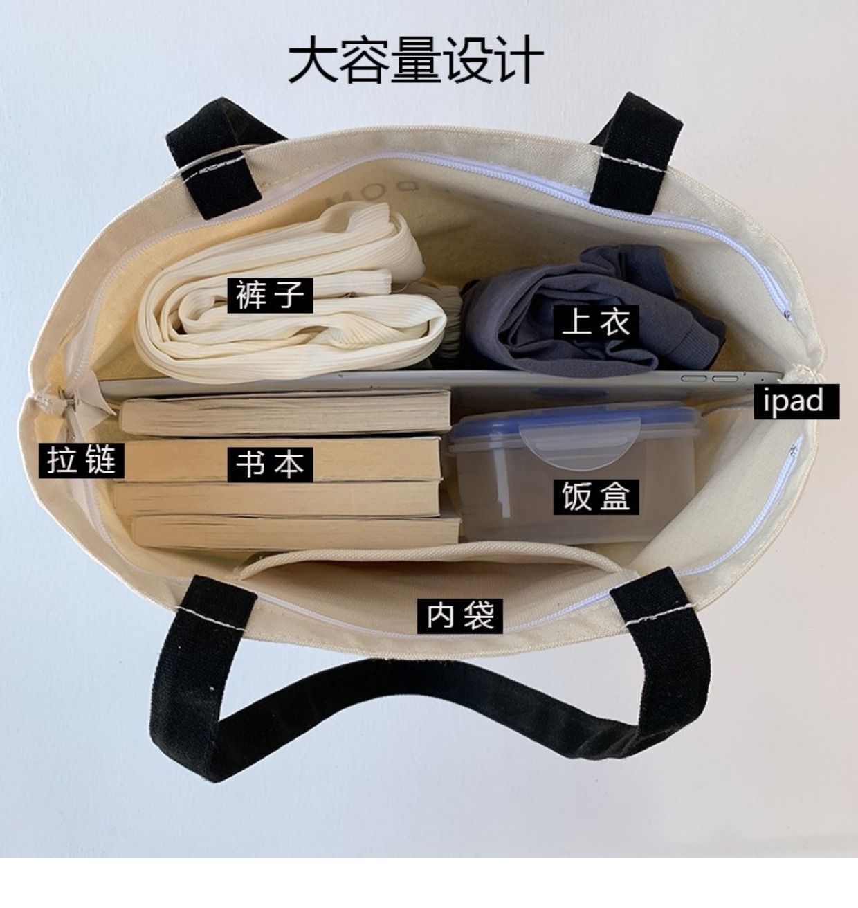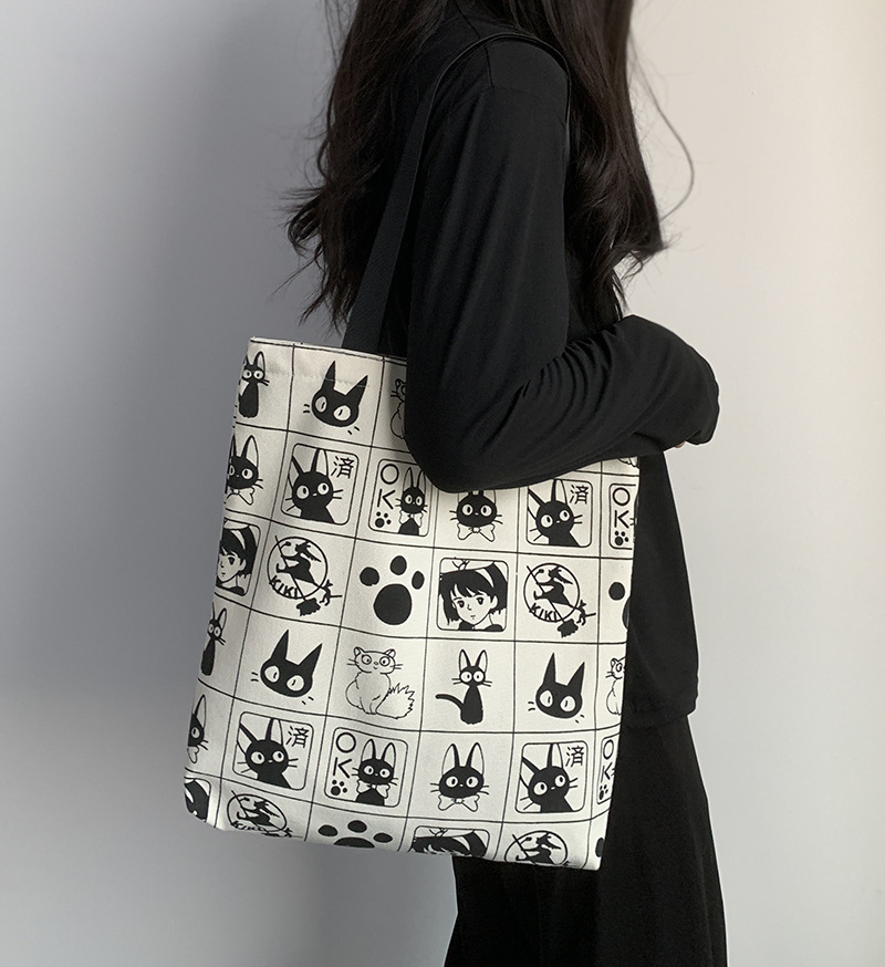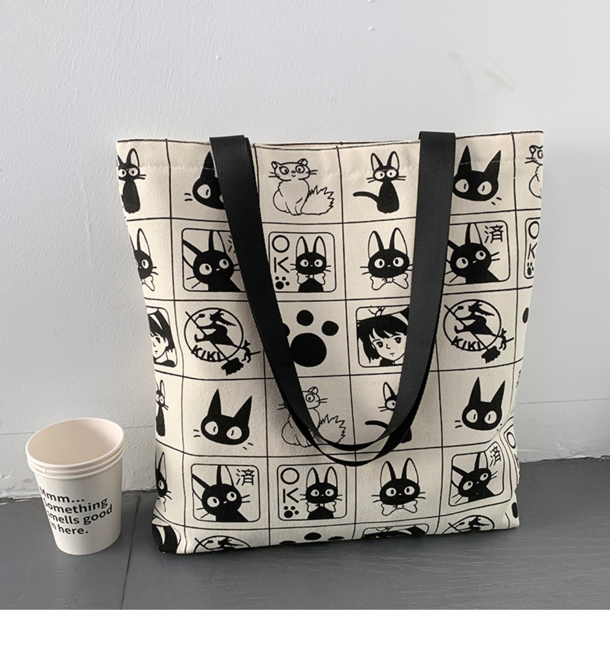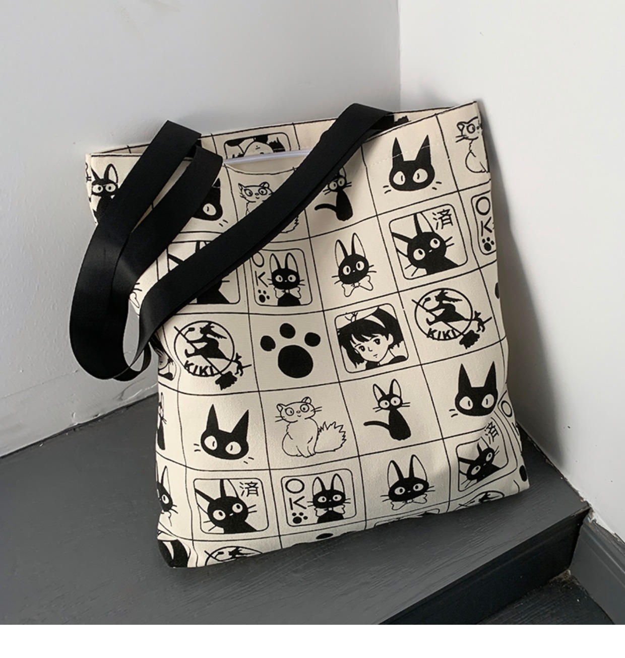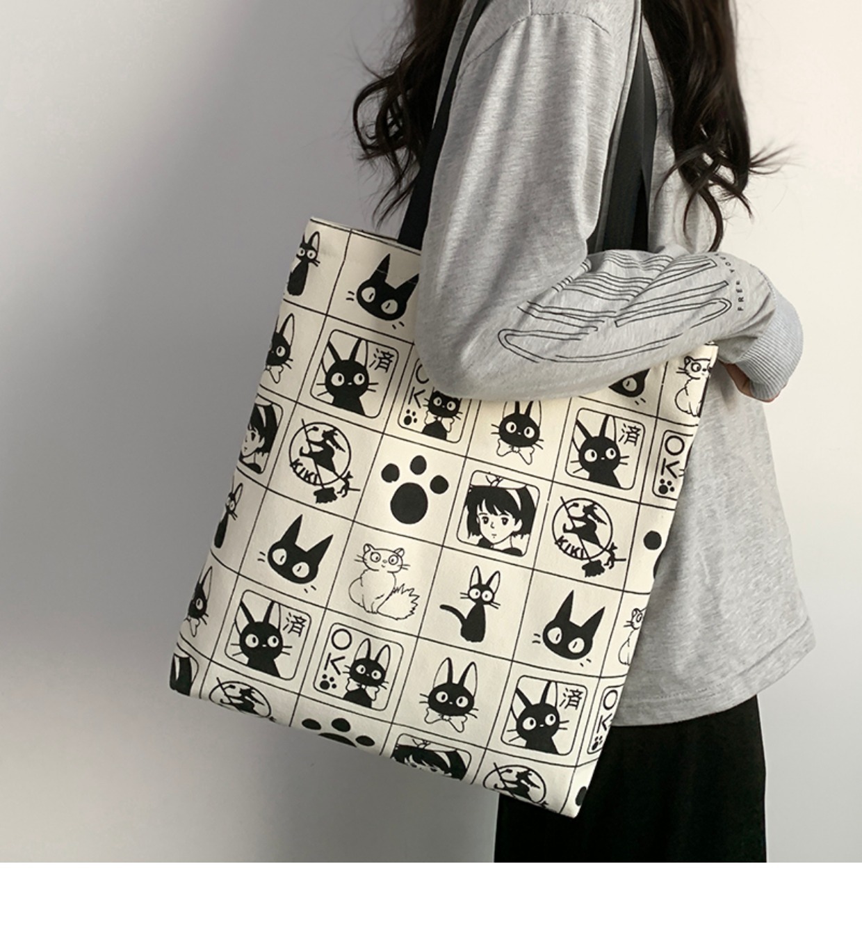2023新款帆布包女单肩百搭ins可爱猫咪卡通学生上课拉链手提布包