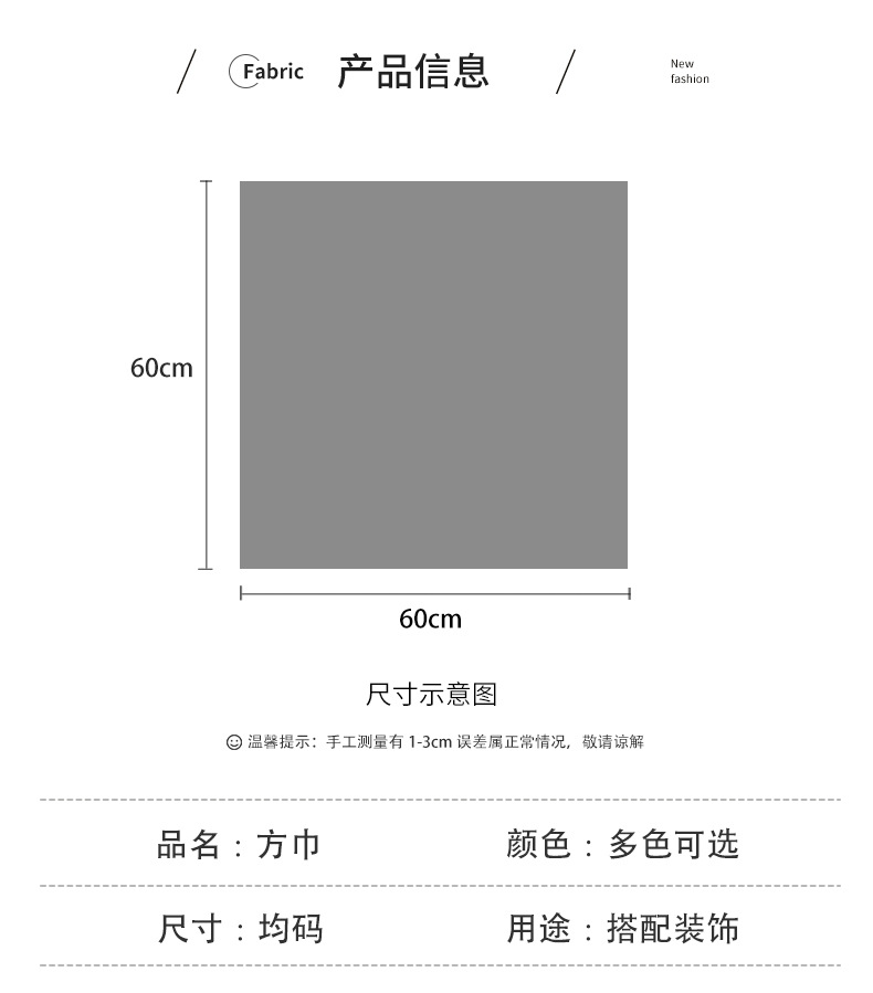 | Estilo | Versátil, elegante, casual, moda ol, simple, estilo de lujo ligero, sentido avanzado Pañuelo cuadrado |