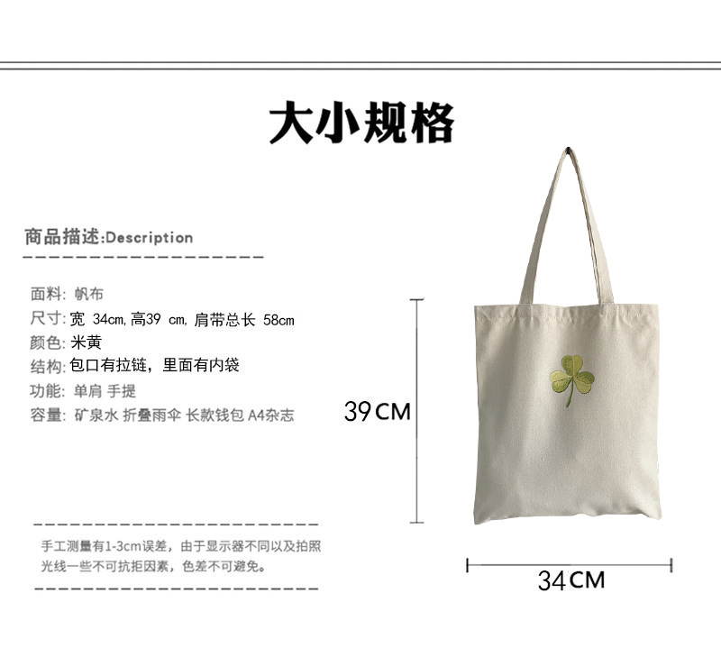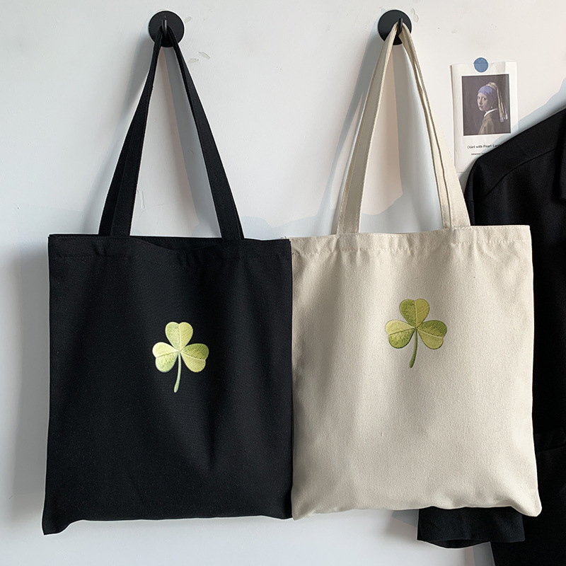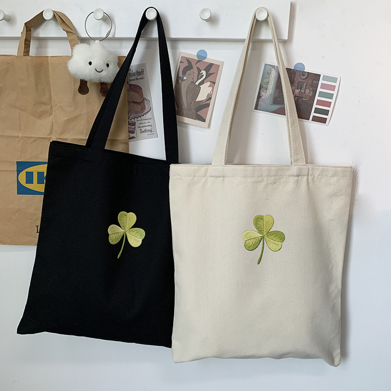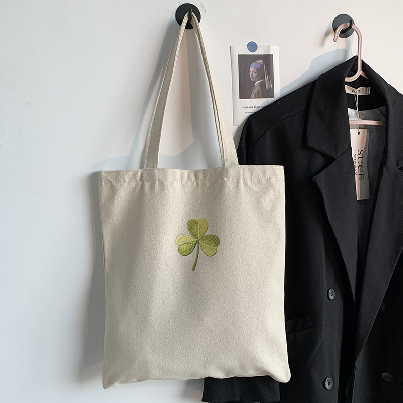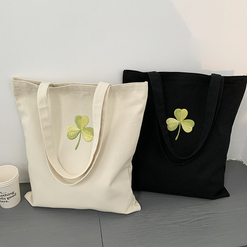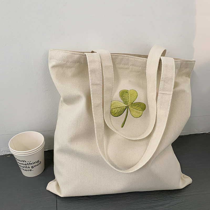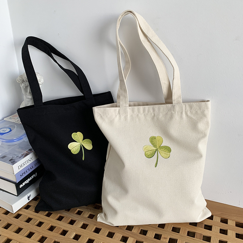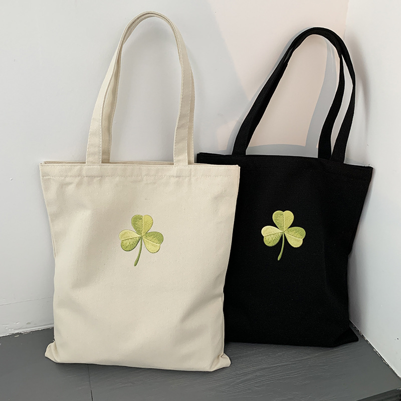 Bolso de lona Clover Bolso de matrícula de gran capacidad de verano para mujer Bolso de libro portátil para estudiantes de primaria y secundaria Bolso de tela portátil