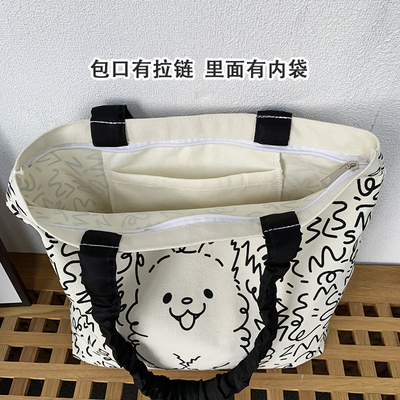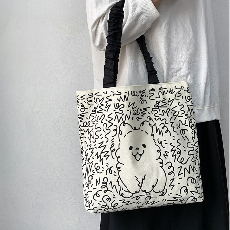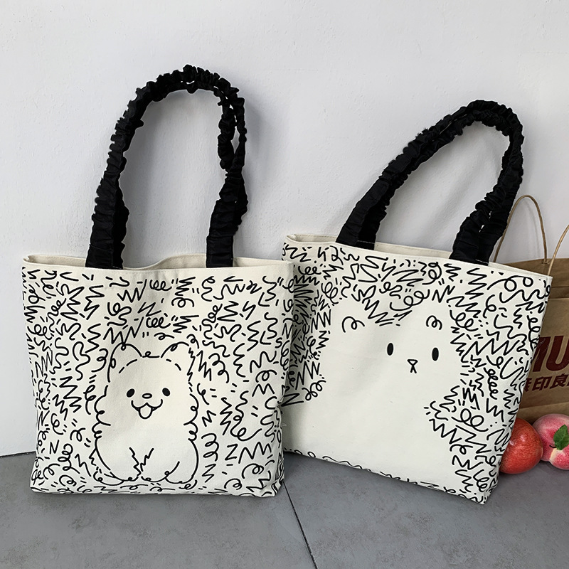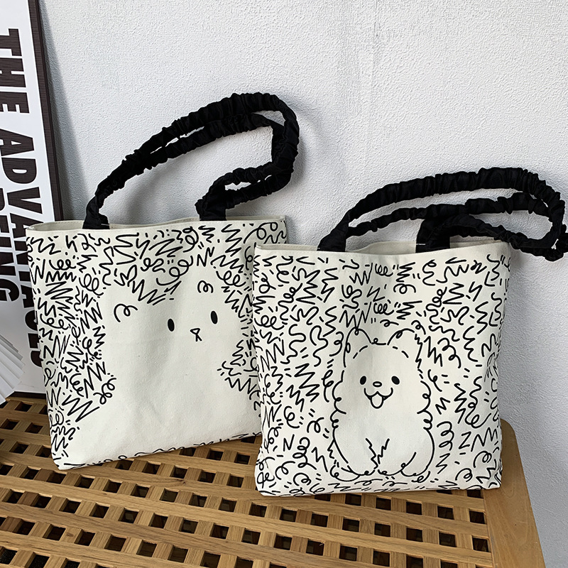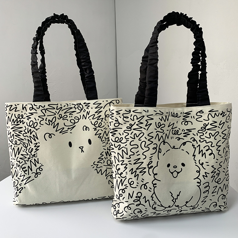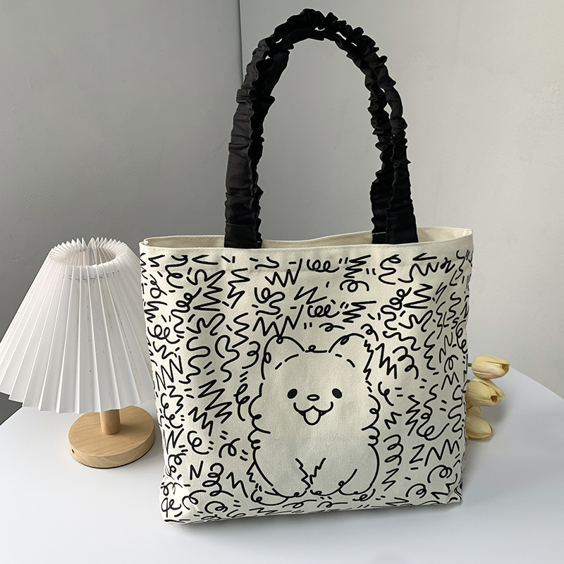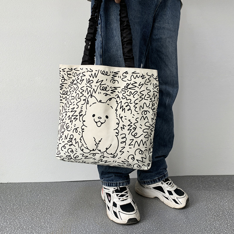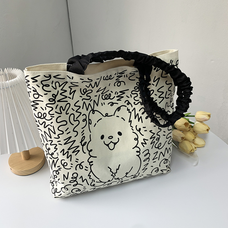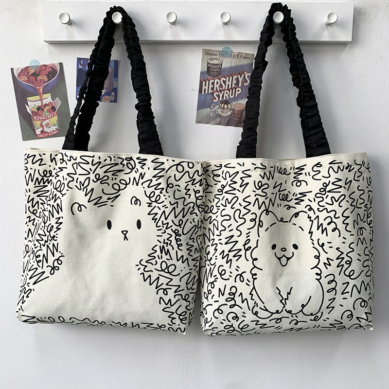 Lindo bolso de lona para perro gato, hombro femenino, arte de verano, dibujos animados frescos, bolso de comercio exterior de gran capacidad para estudiantes