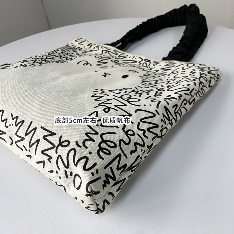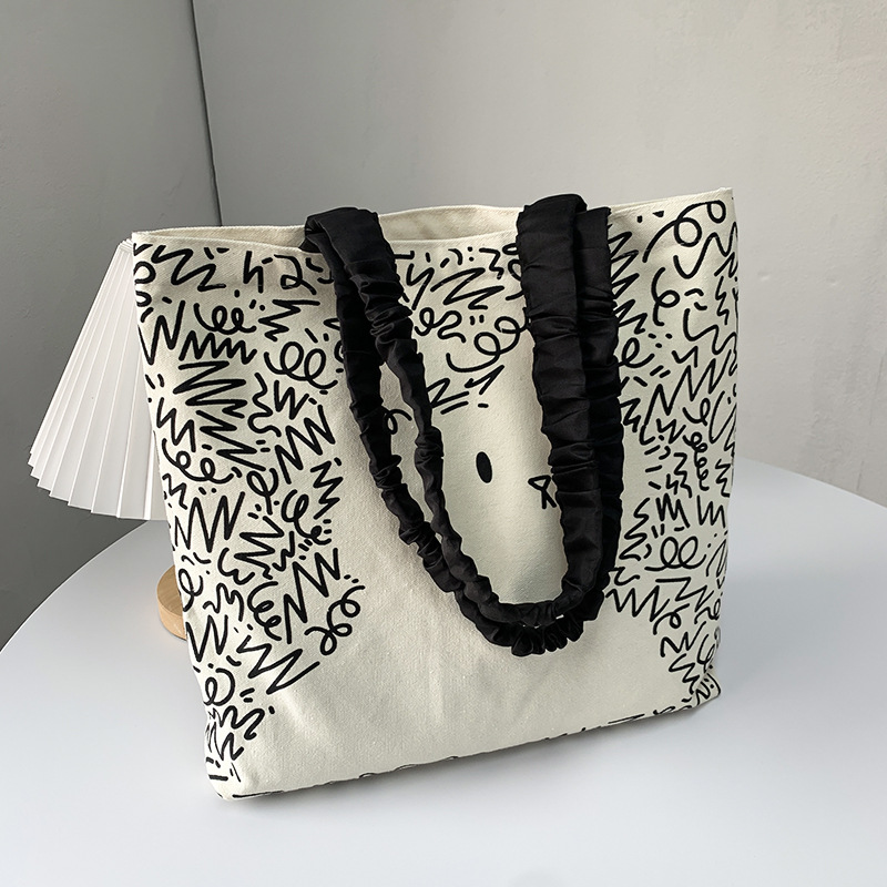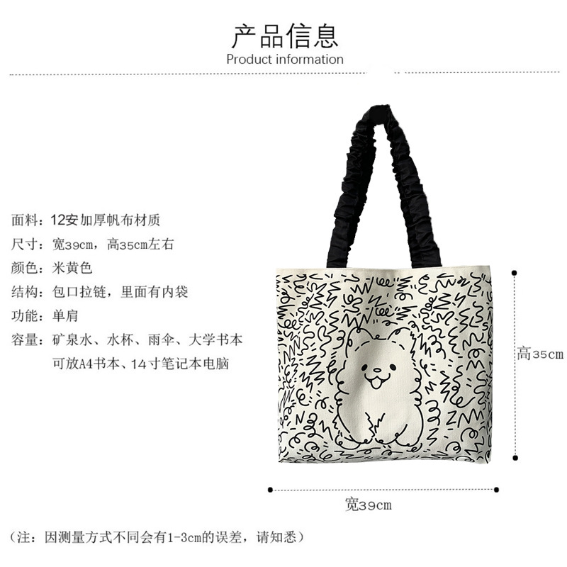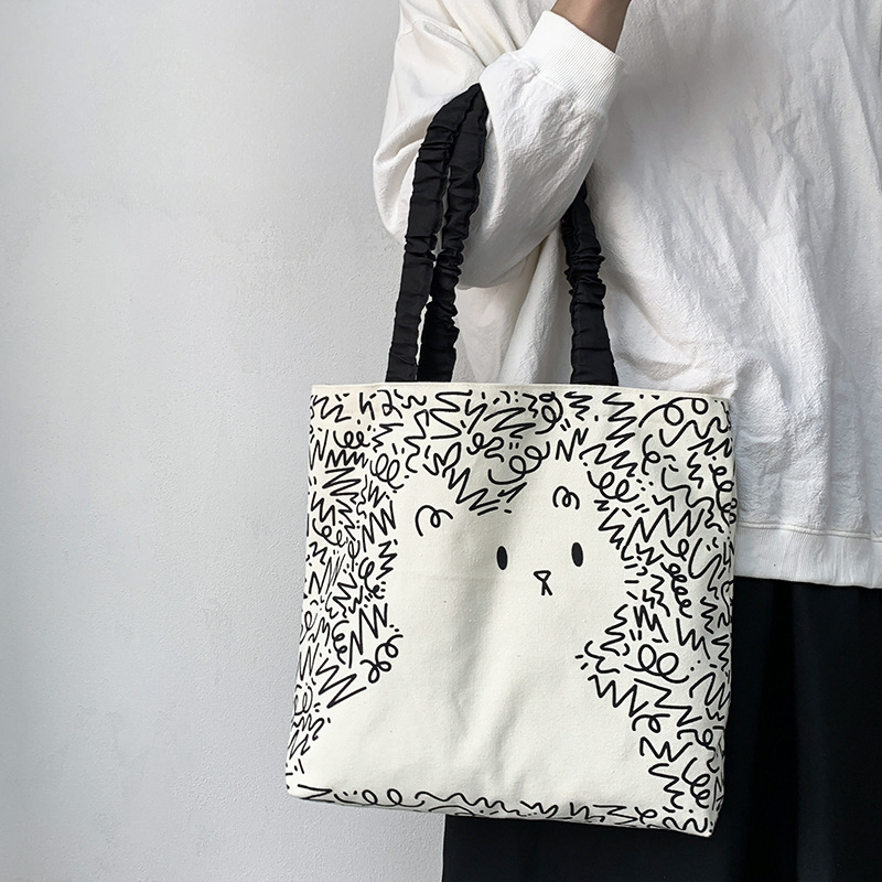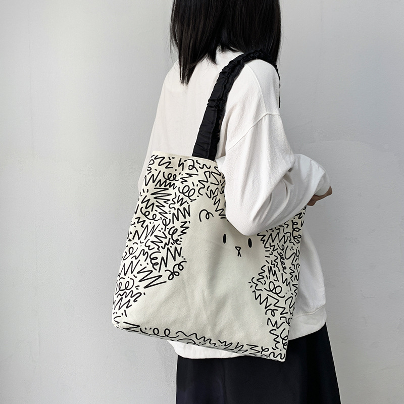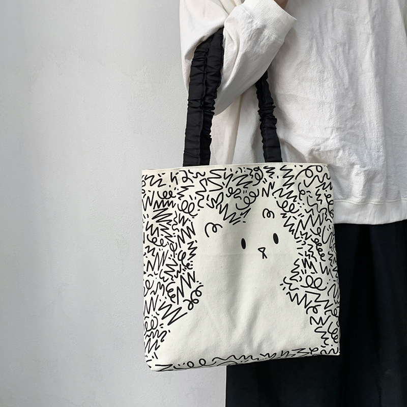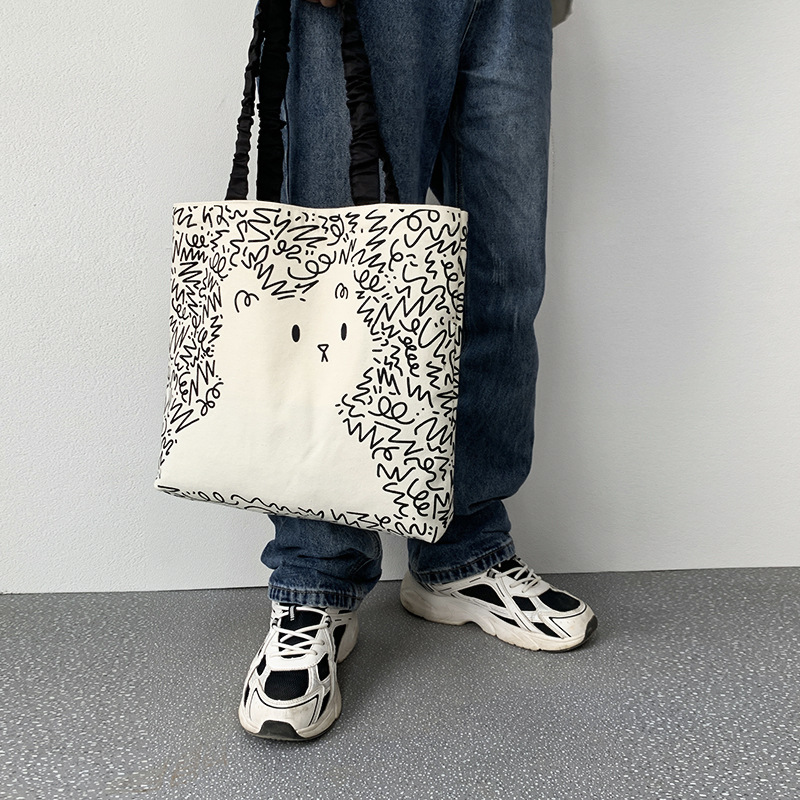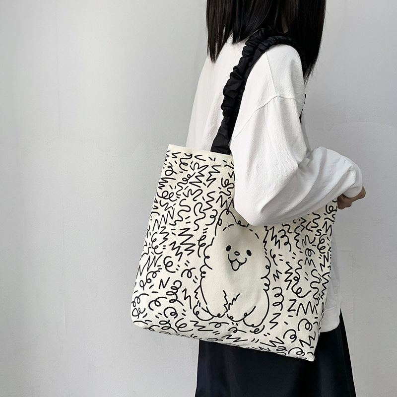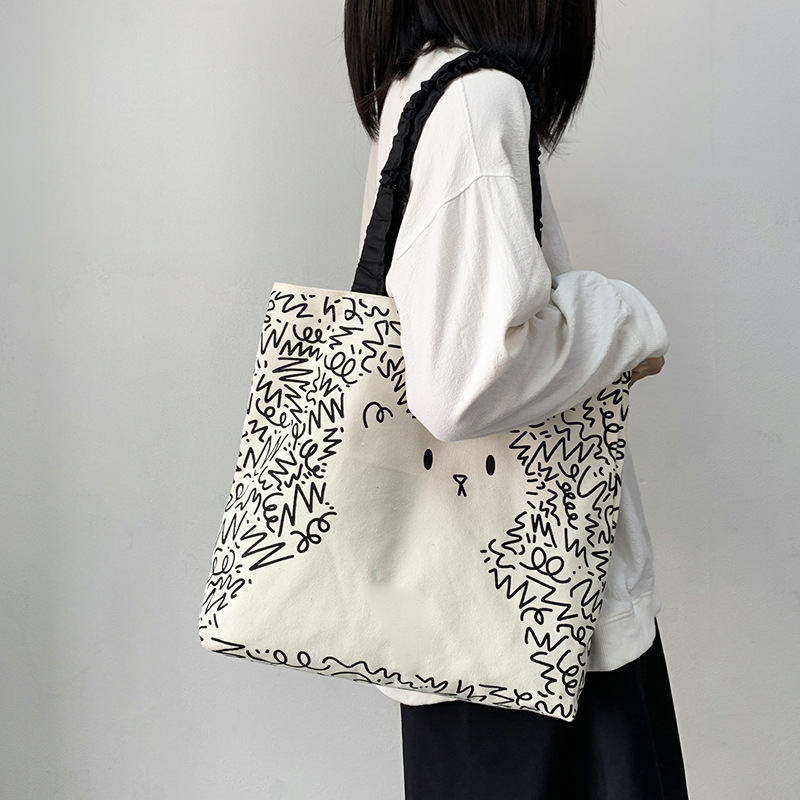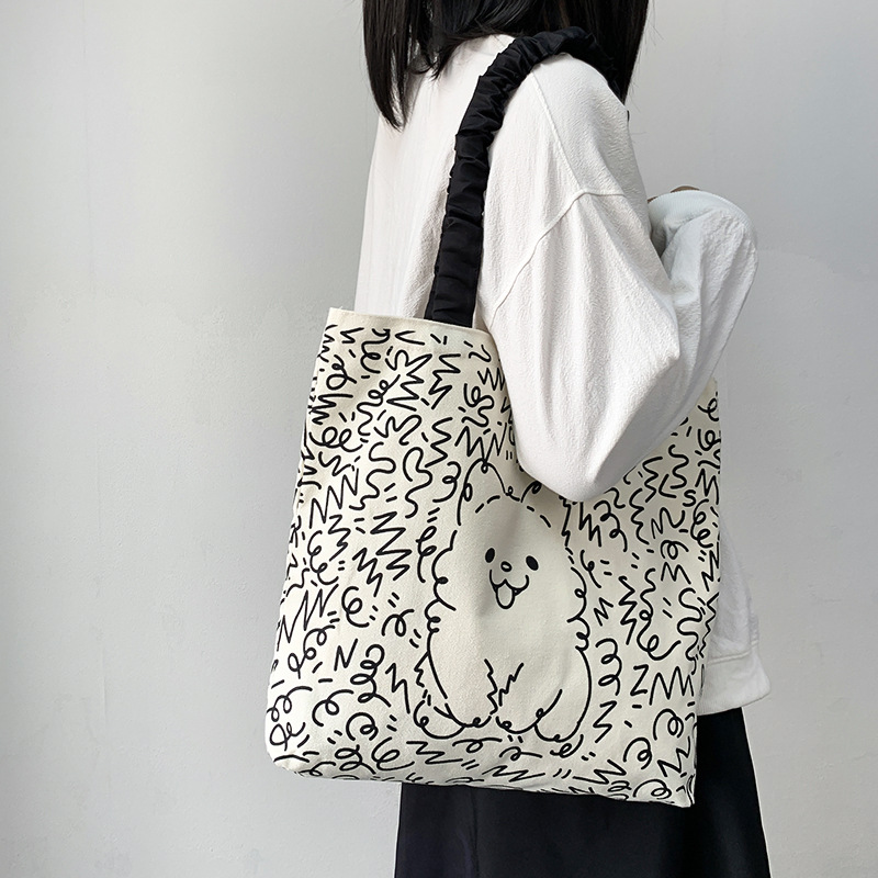 Lindo bolso de lona para perro gato, hombro femenino, arte de verano, dibujos animados frescos, bolso de comercio exterior de gran capacidad para estudiantes