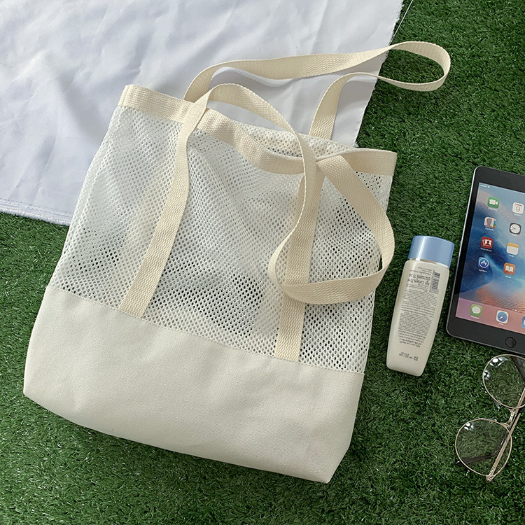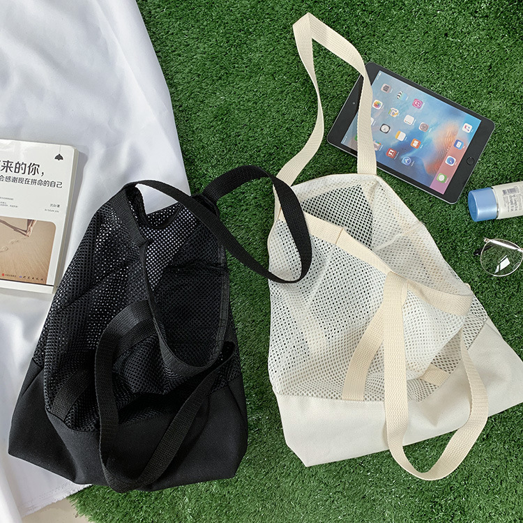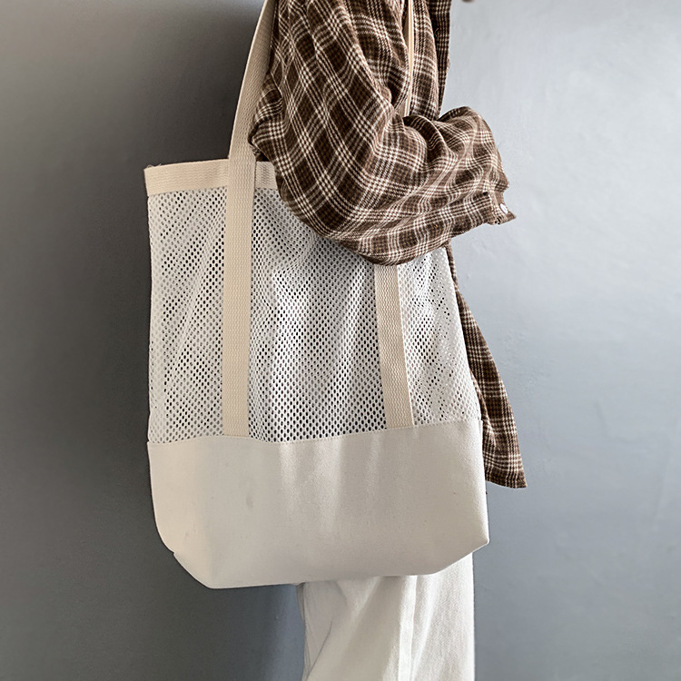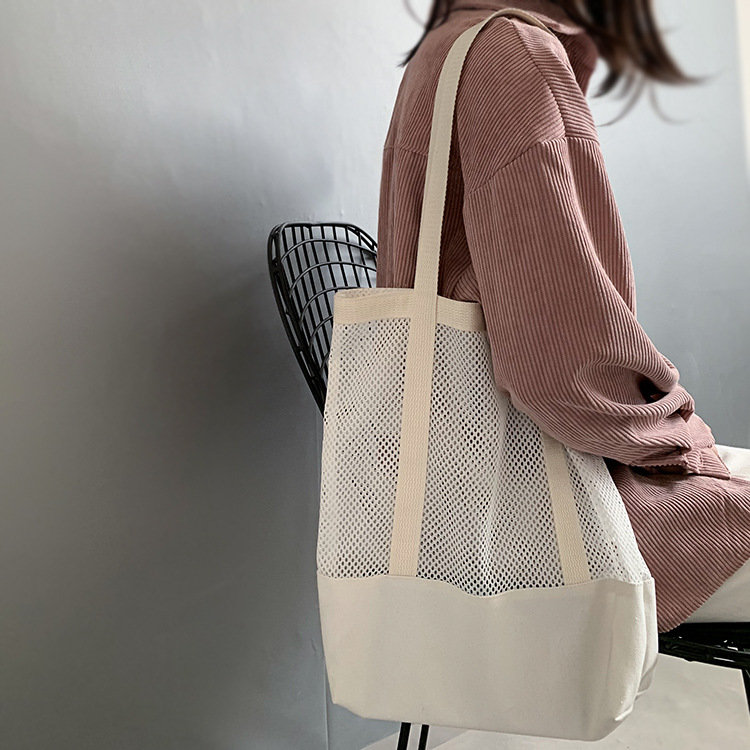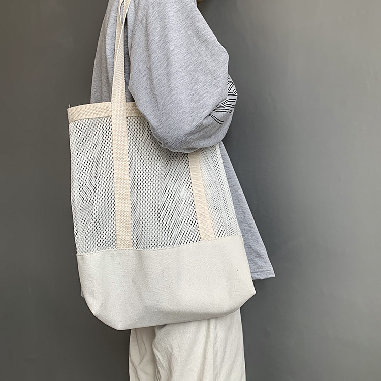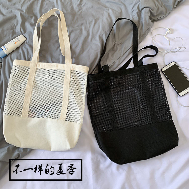 Primavera y verano nuevo estilo coreano bolso de malla bolso de compras bolsa de playa hueco bolsa de hombro de lona para mujeres