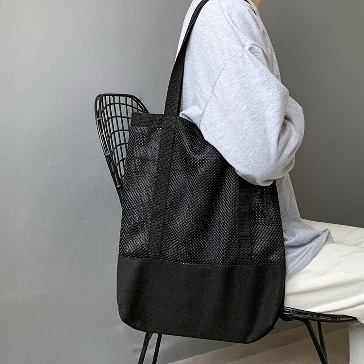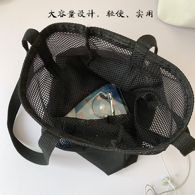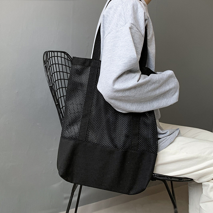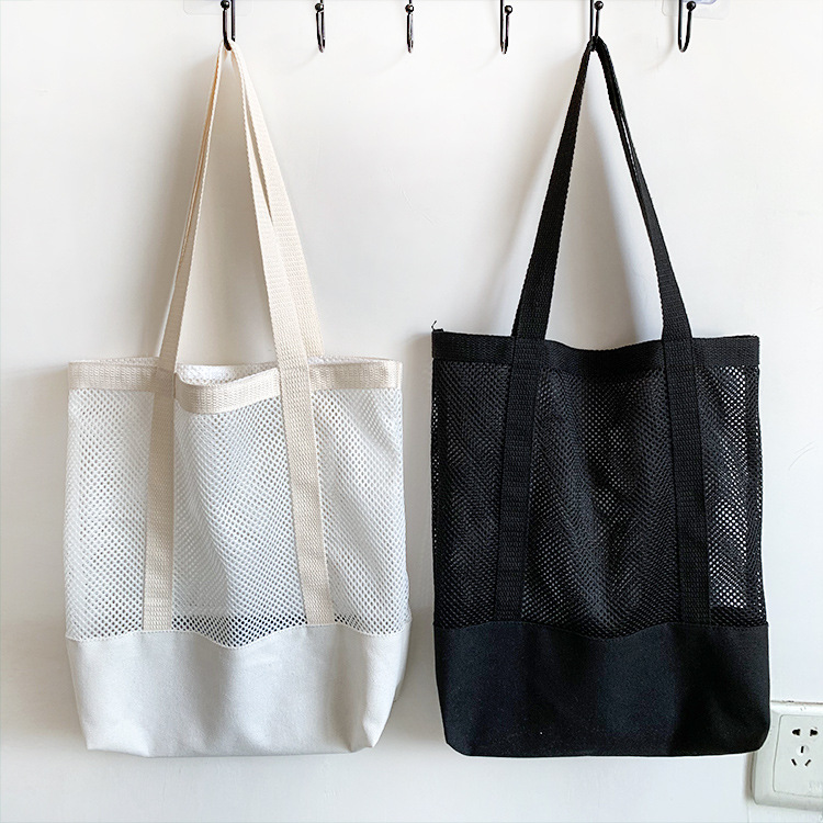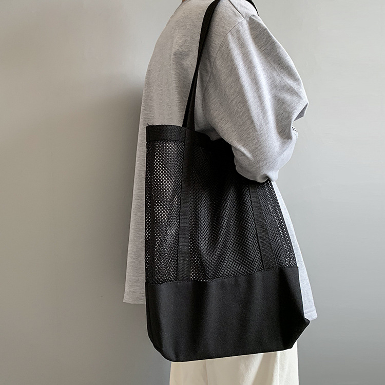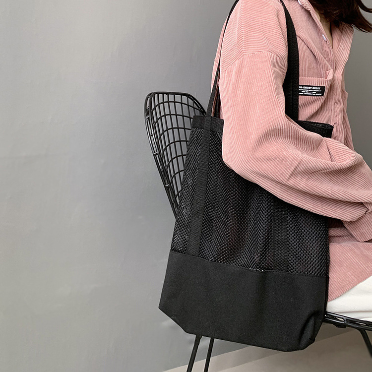 Primavera y verano nuevo estilo coreano bolso de malla bolso de compras bolsa de playa hueco bolsa de hombro de lona para mujeres