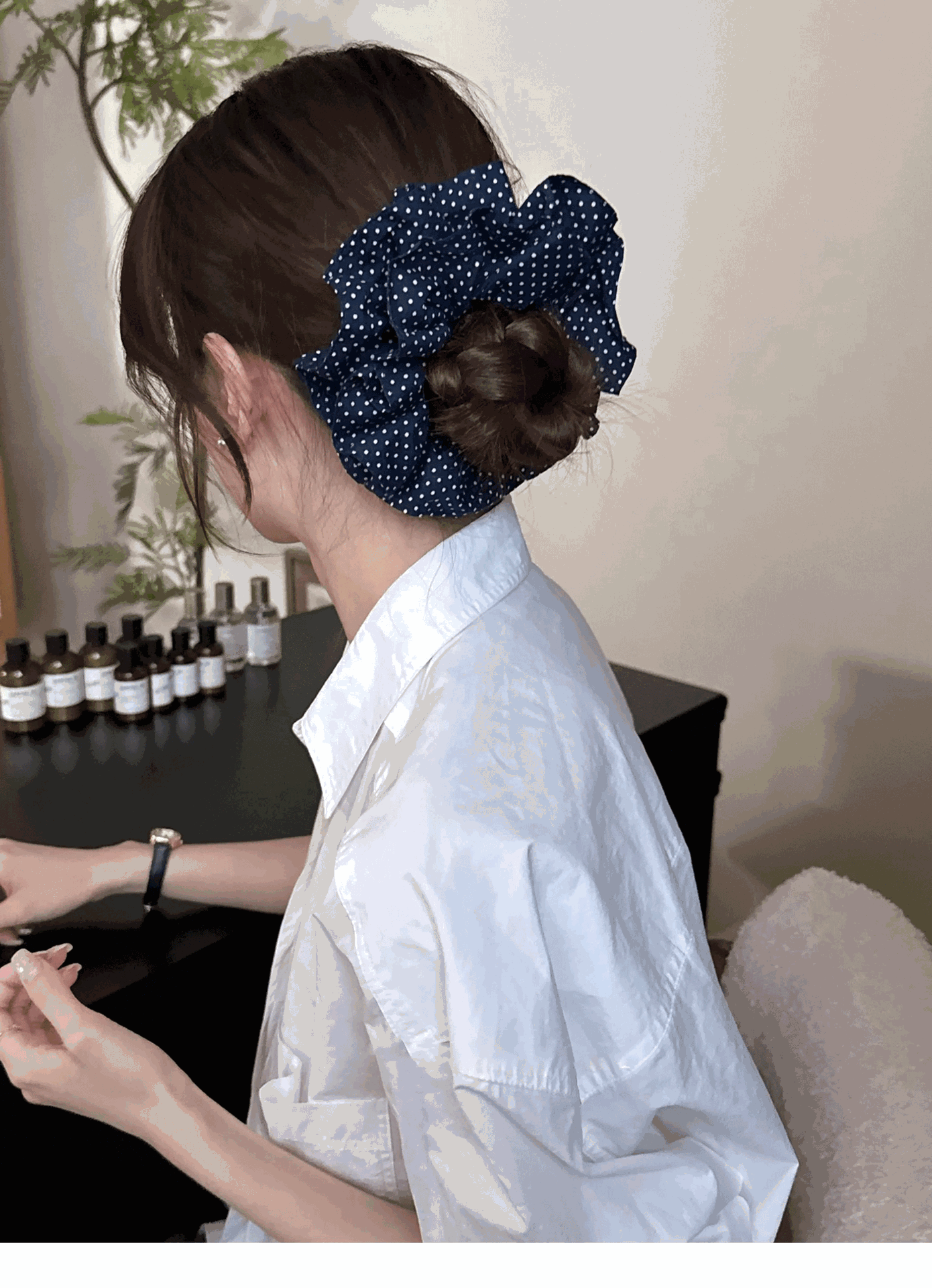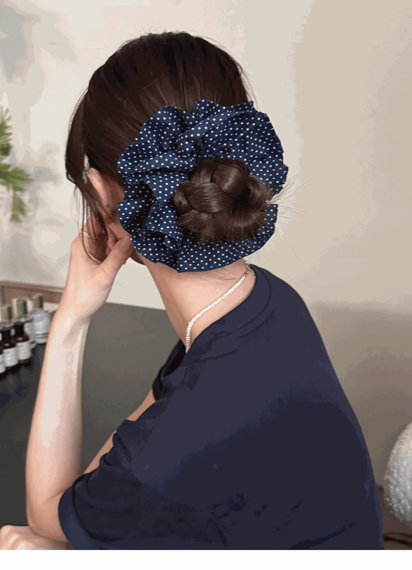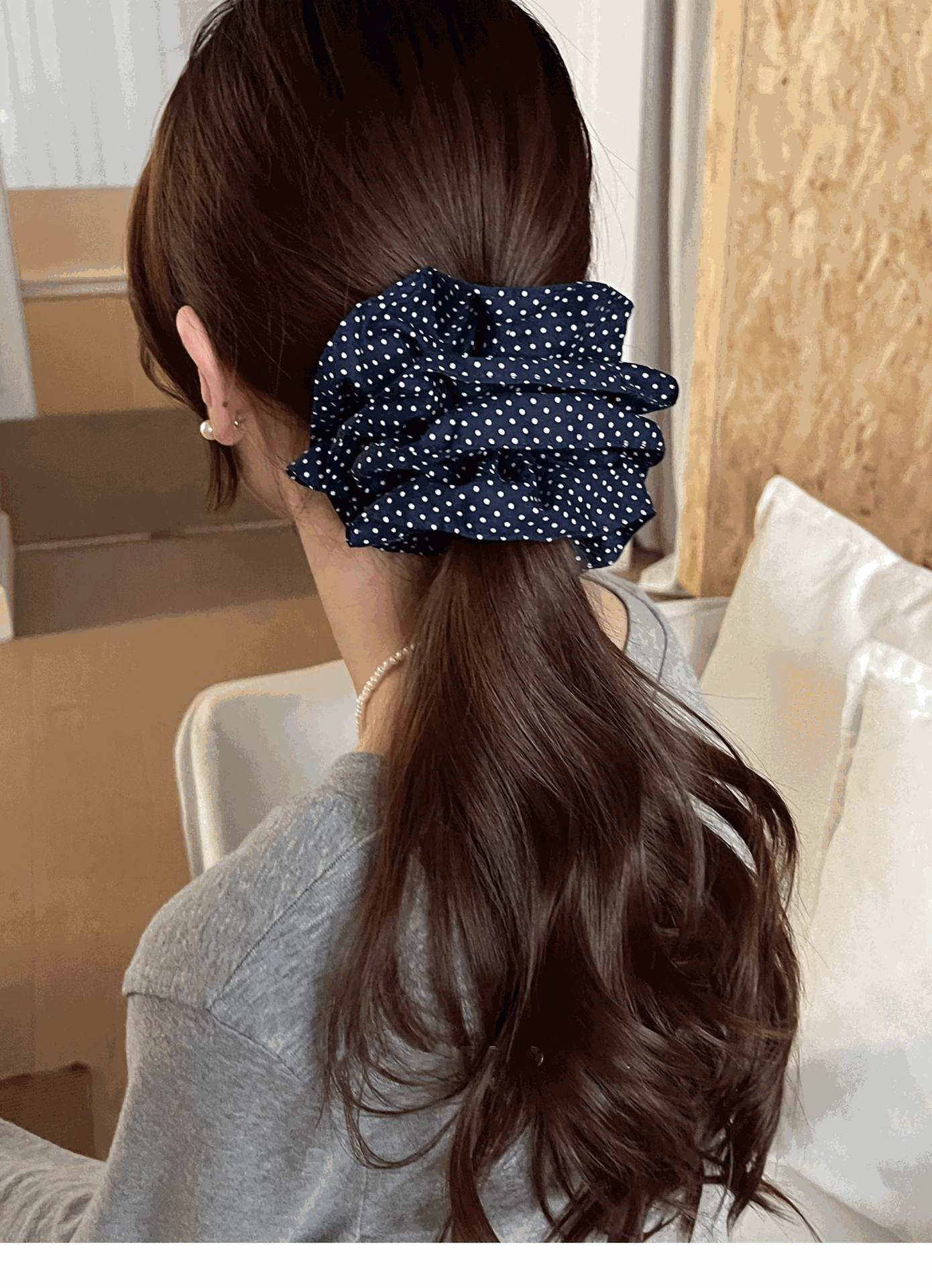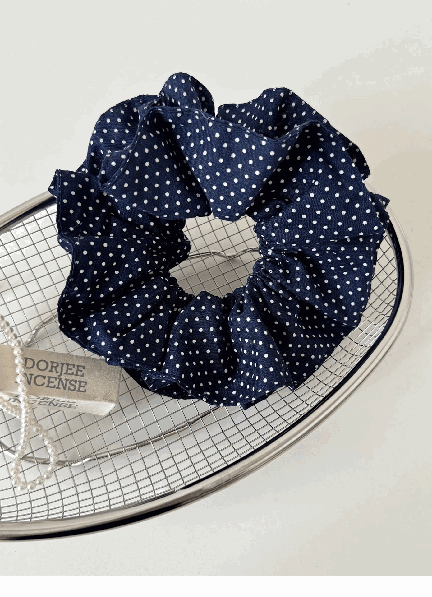 | Colores | Anillo de pelo de lunares azul marino |