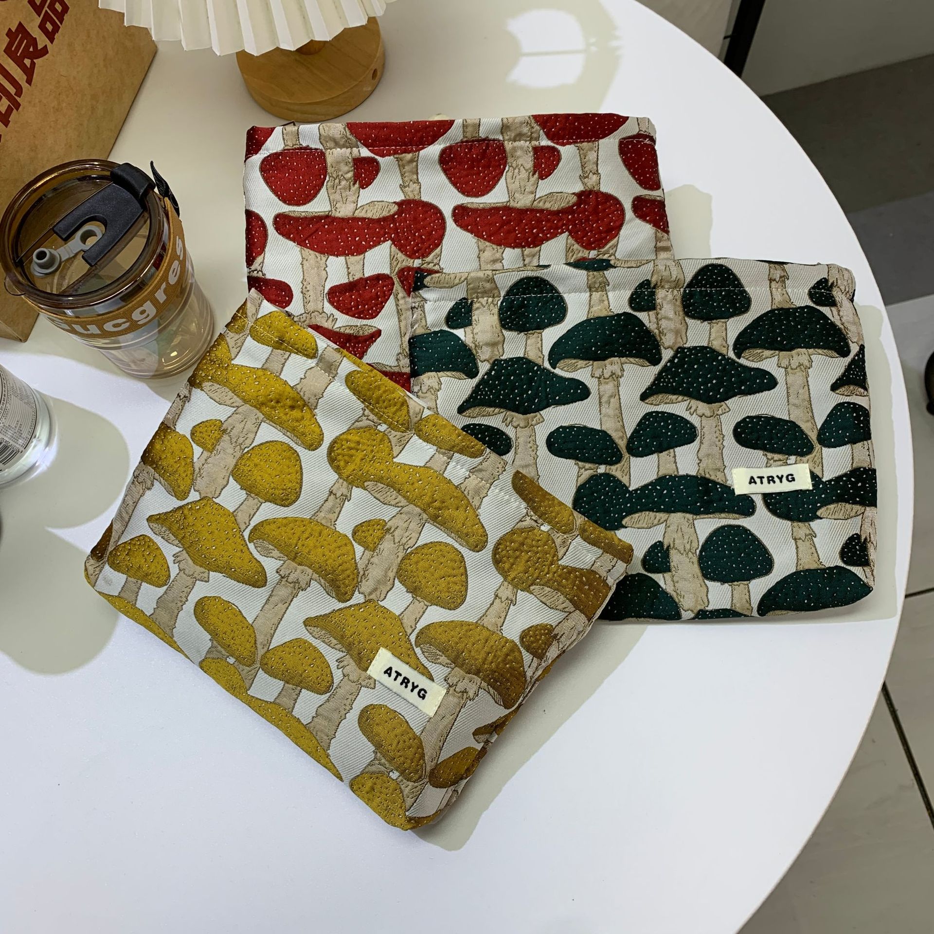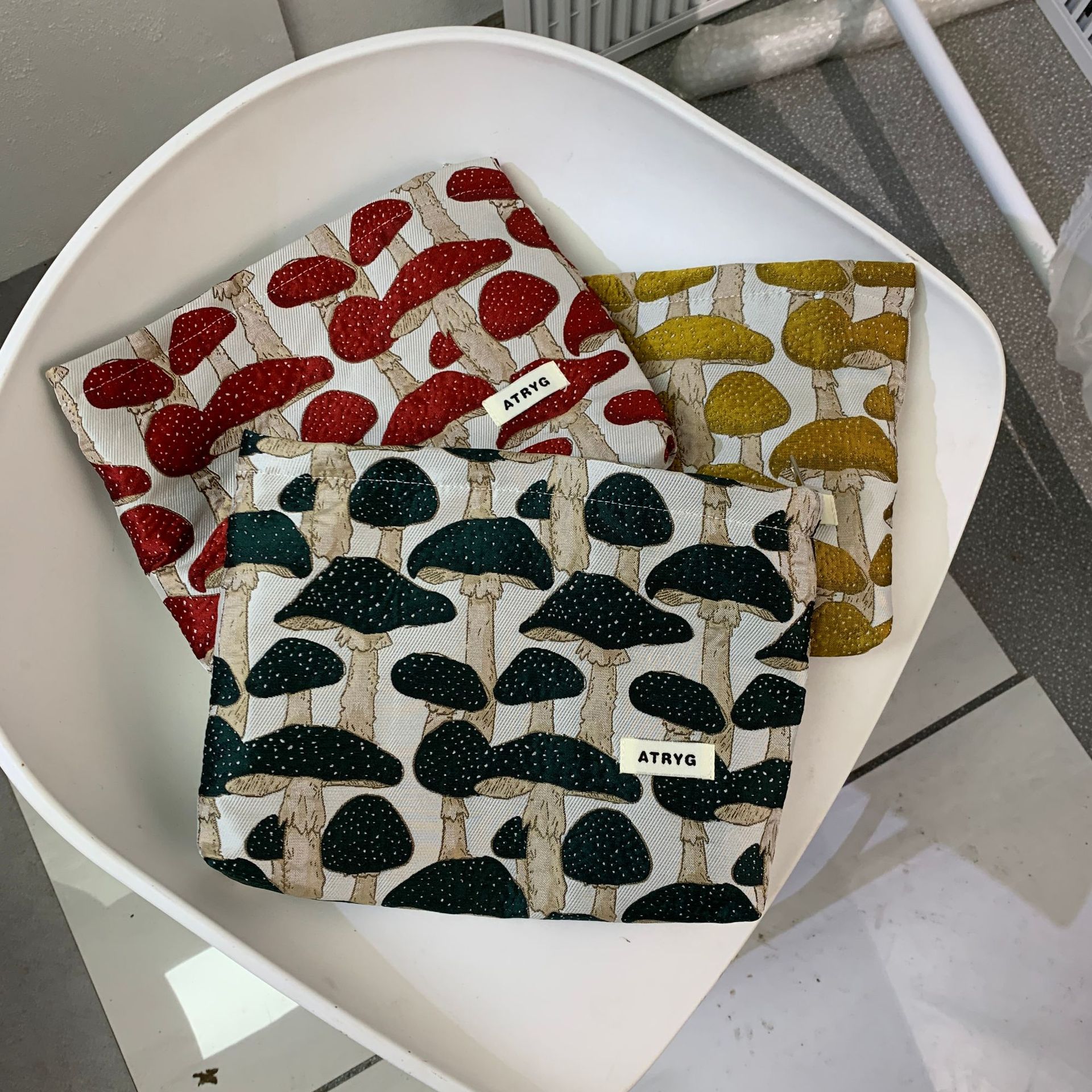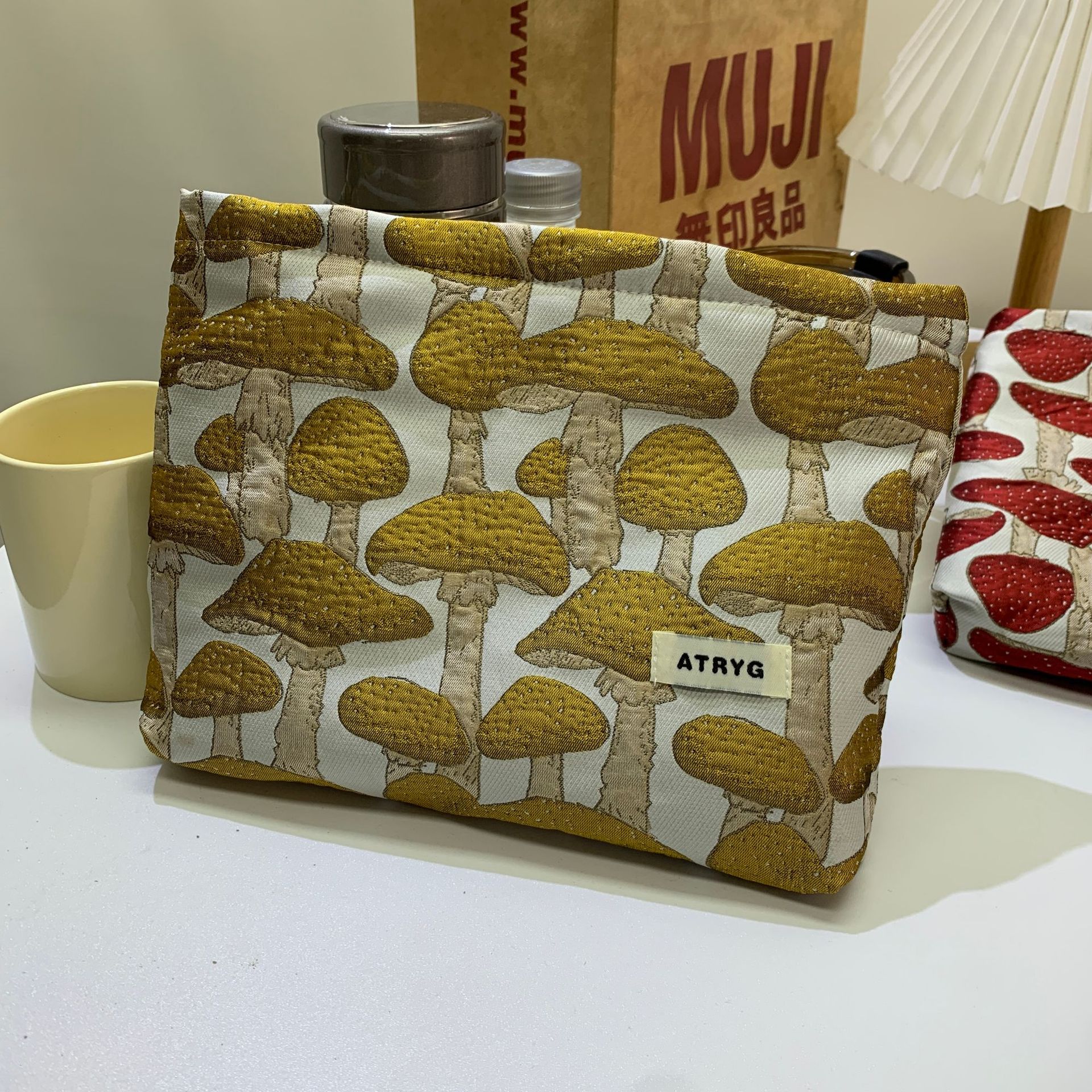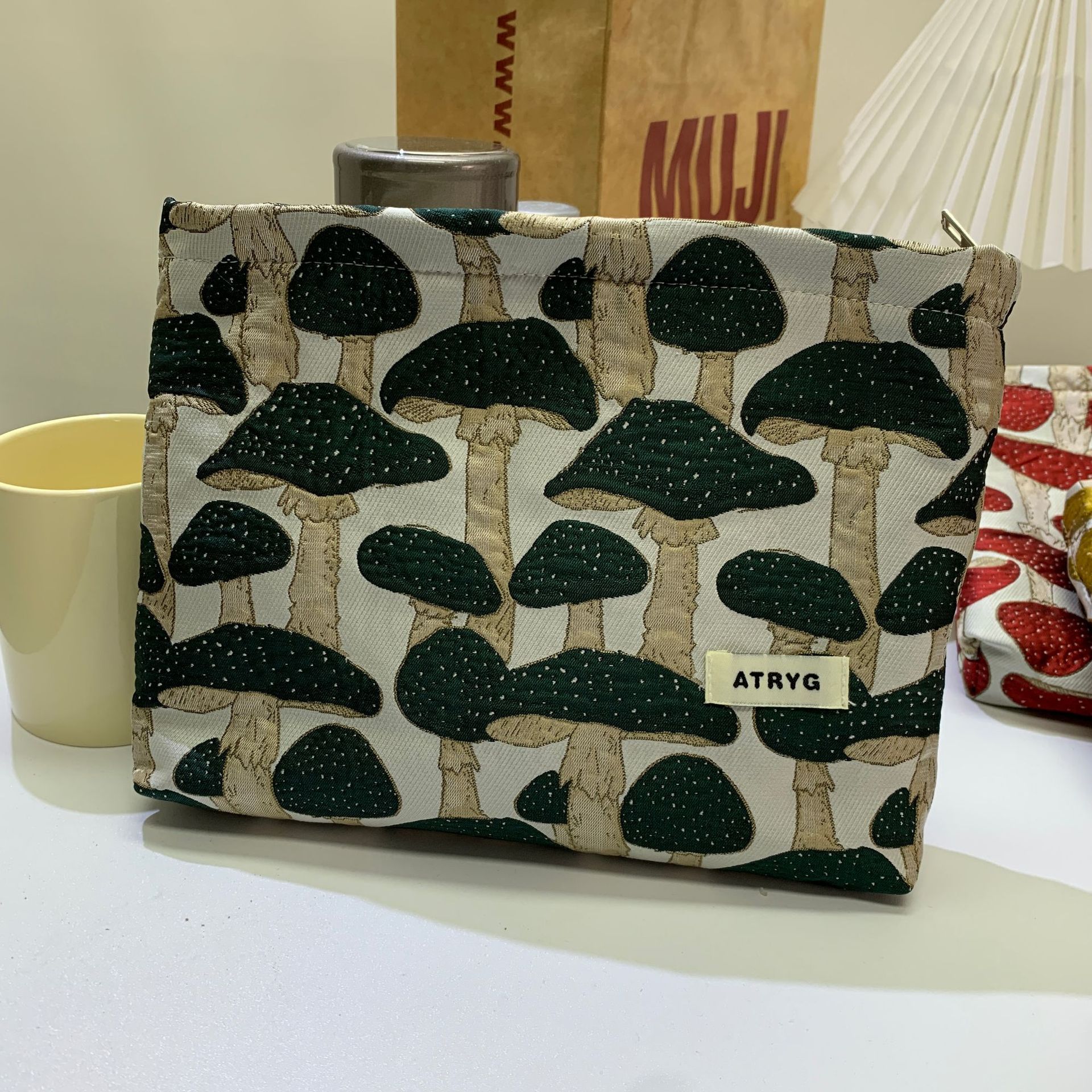 Bolsa de maquillaje, una bolsa de almacenamiento de hongos transfronterizos portátiles Jacquard, bolsa de almacenamiento de maquillaje de alto valor nominal
