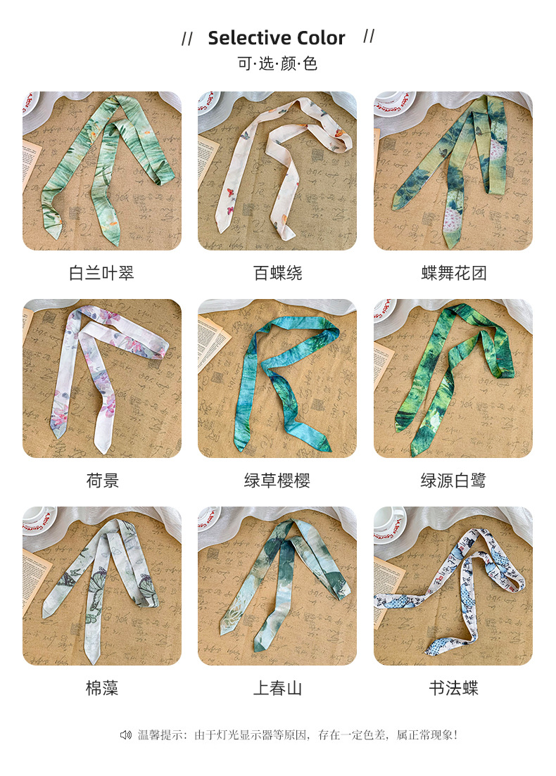 | Colores | Hojas de orquídea blanca,Cientos de mariposas,Grupo de flores de baile de mariposas,Vista de loto,Hierba verde cereza,Garceta de fuente verde,Algas de algodón,Montaña Shangchun,Mariposa del libro |