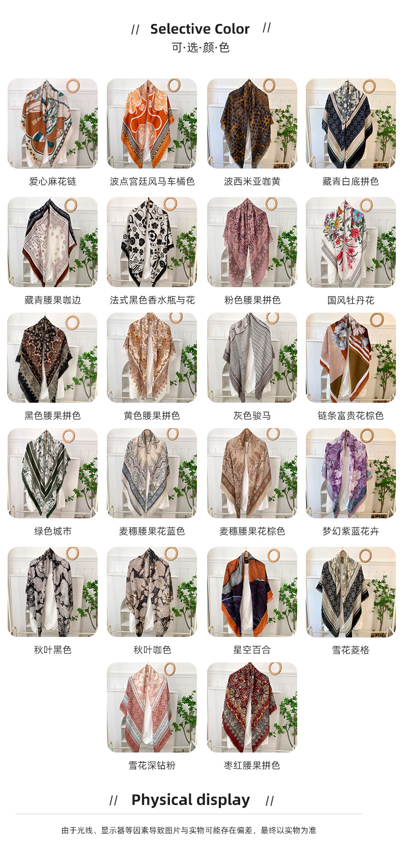 | Colores | Cadena de amor,Caballo de viento de la corte de lunares naranja,Café bohemio amarillo,Color azul marino y blanco,Café de anacardo verde Xizango,French negro botella de perfume con flores,Color de anacardo rosa a juego,Peonía de estilo nacional,Color de anacardo negro a juego,Color de anacardo amarillo a juego,Caballo gris,Cadena flor rica marrón,Ciudad verde,Flor de anacardo de trigo azul,Flor de anacardo de trigo marrón,Flor azul púrpura de ensueño,Hojas de otoño negro,Hojas de otoño color café,Lily,Rómbico de copo de nieve,Polvo de diamante profundo de copo de nieve,Anacardo rojo a juego |
