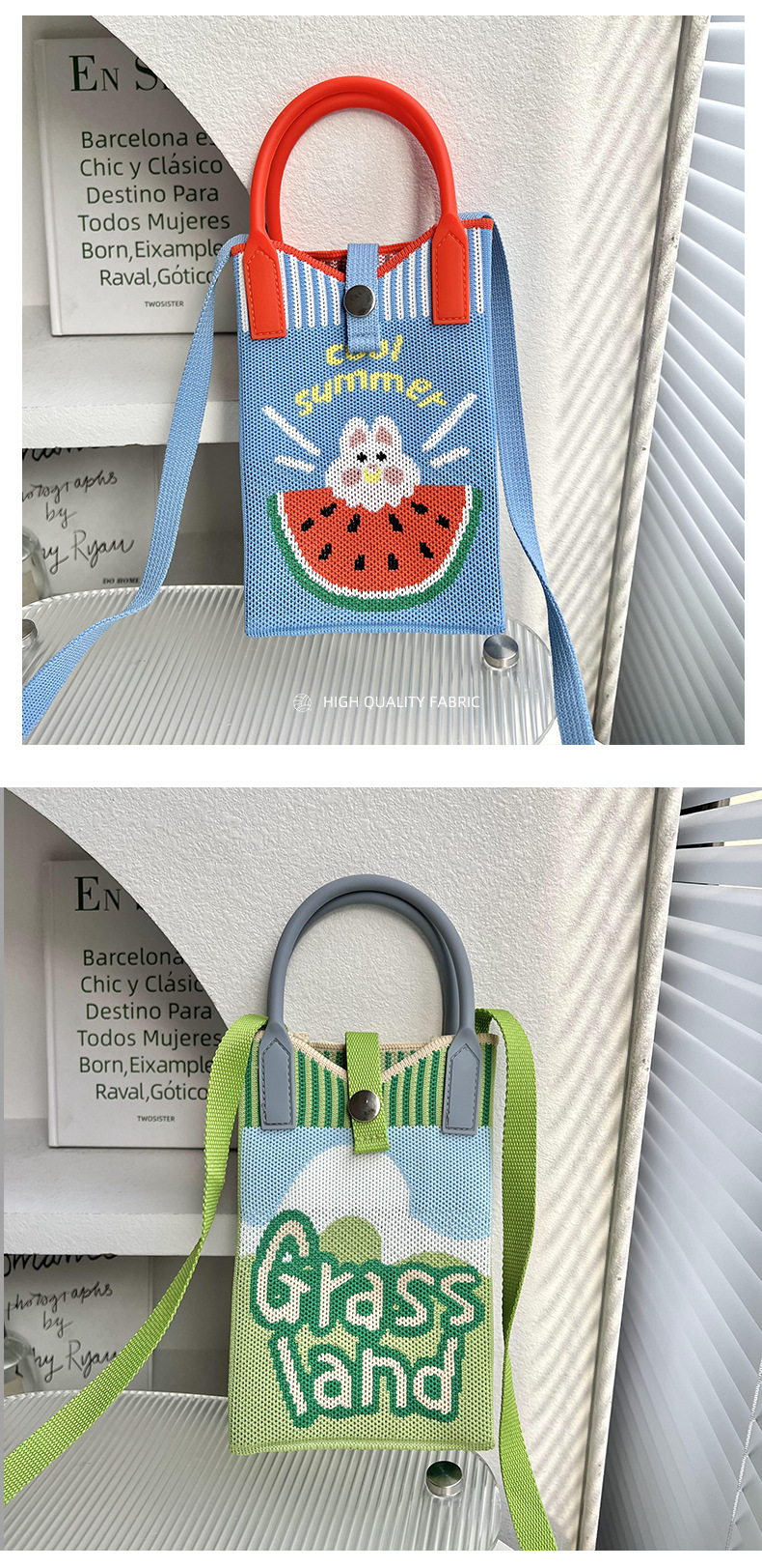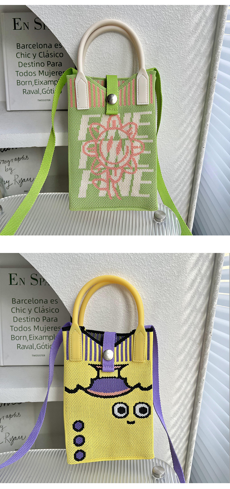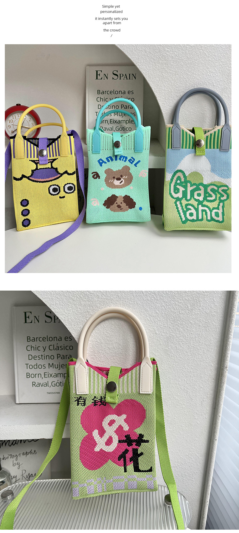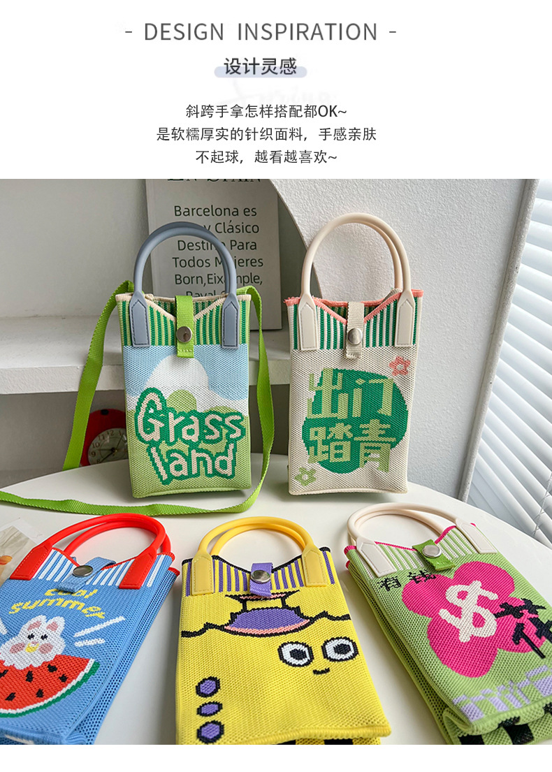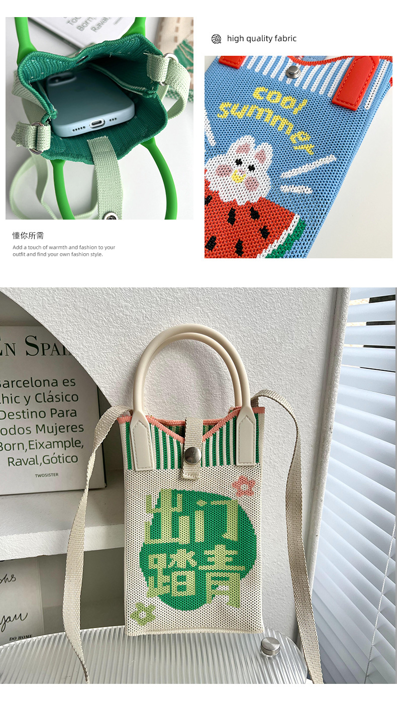 Bolsa de teléfonos móviles de dibujos animados para mujeres primavera y otoño estudiantes coreanos de tejido de mano bolsa de cambio de almacenamiento bolsa de mano decoración portátil bolsa de mochila