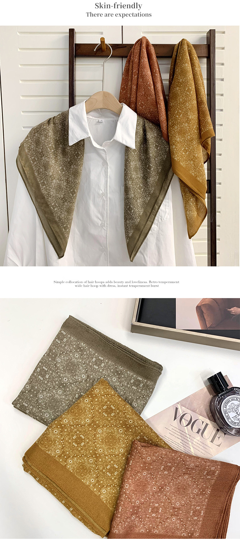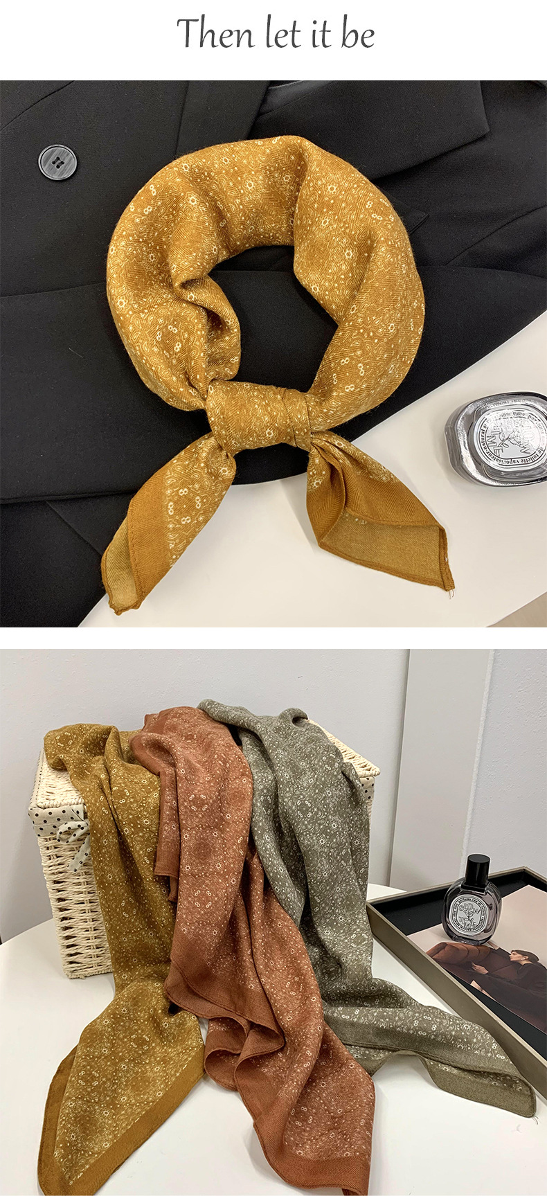 | Estilo | Versátil, elegante, casual, europeo y americano Pañuelo cuadrado |