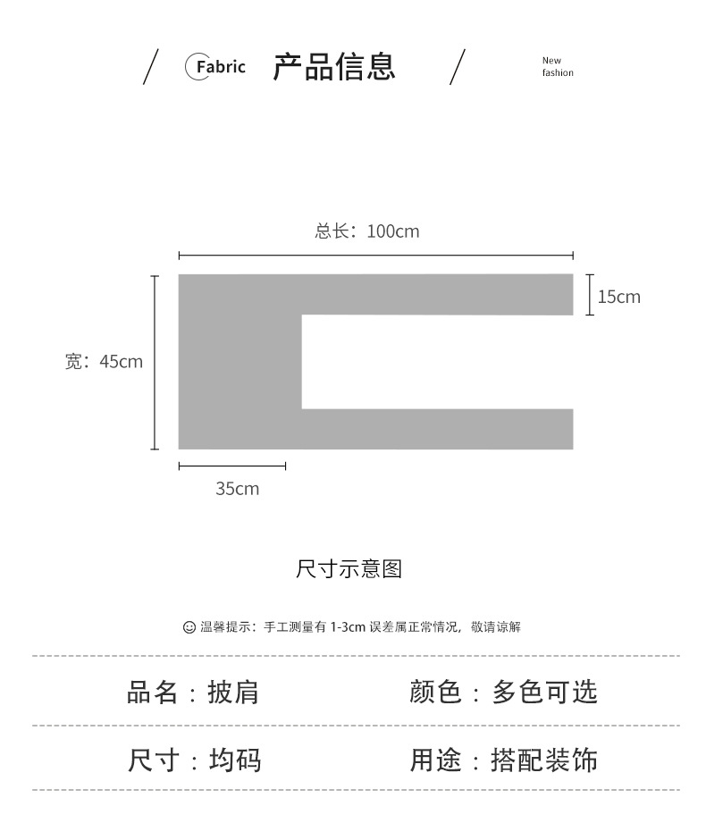 | Colores | Mantón de borde rosa,Chal amarillo,Chal de borde gris,Mantón de borde azul,Chal de borde verde |