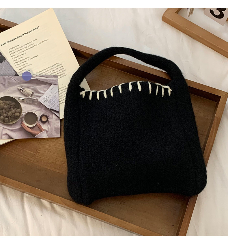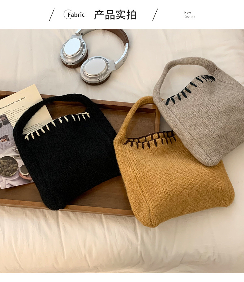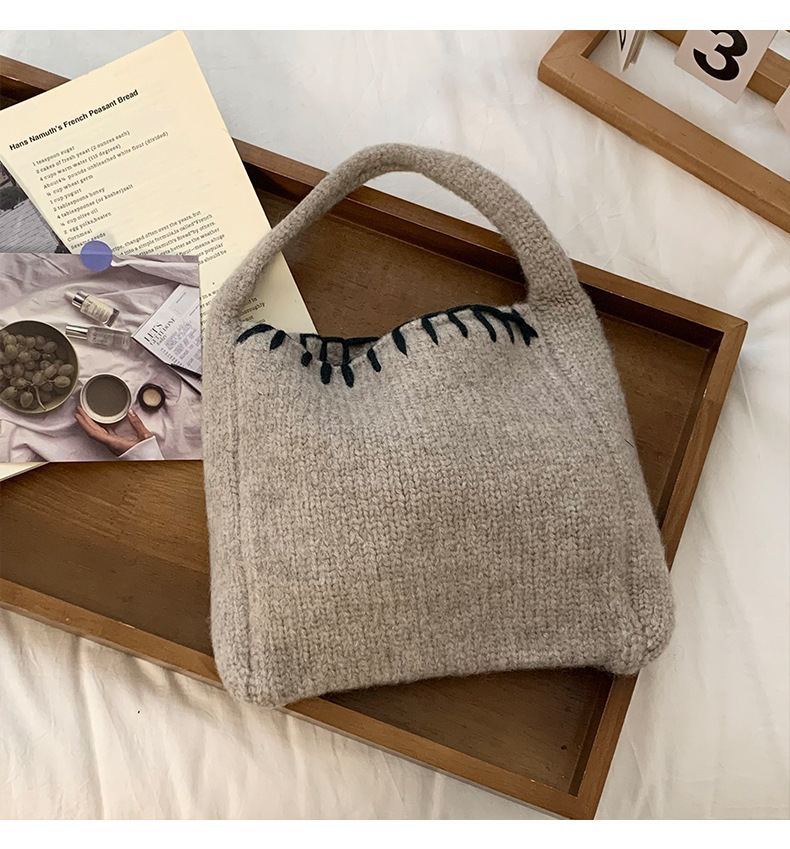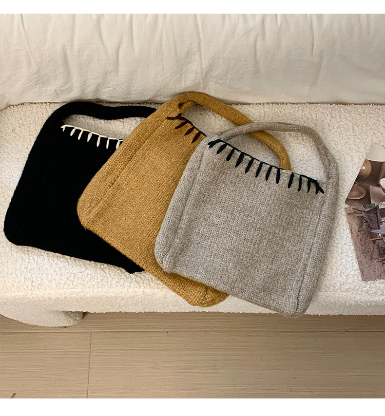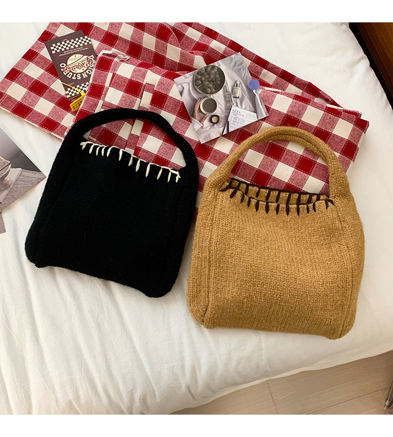 Nuevo bolso de tejido de otoño y invierno atmósfera sensación de bolsa de cesta de verduras bolso de tejido a mano bolso de lana de moda bolso de hombro