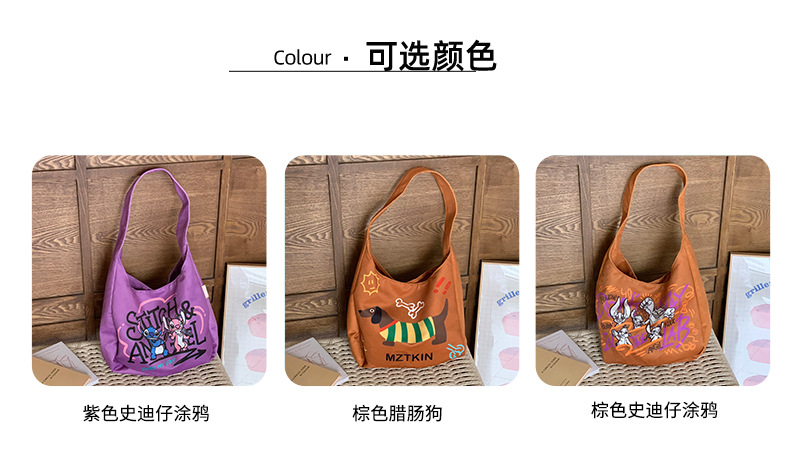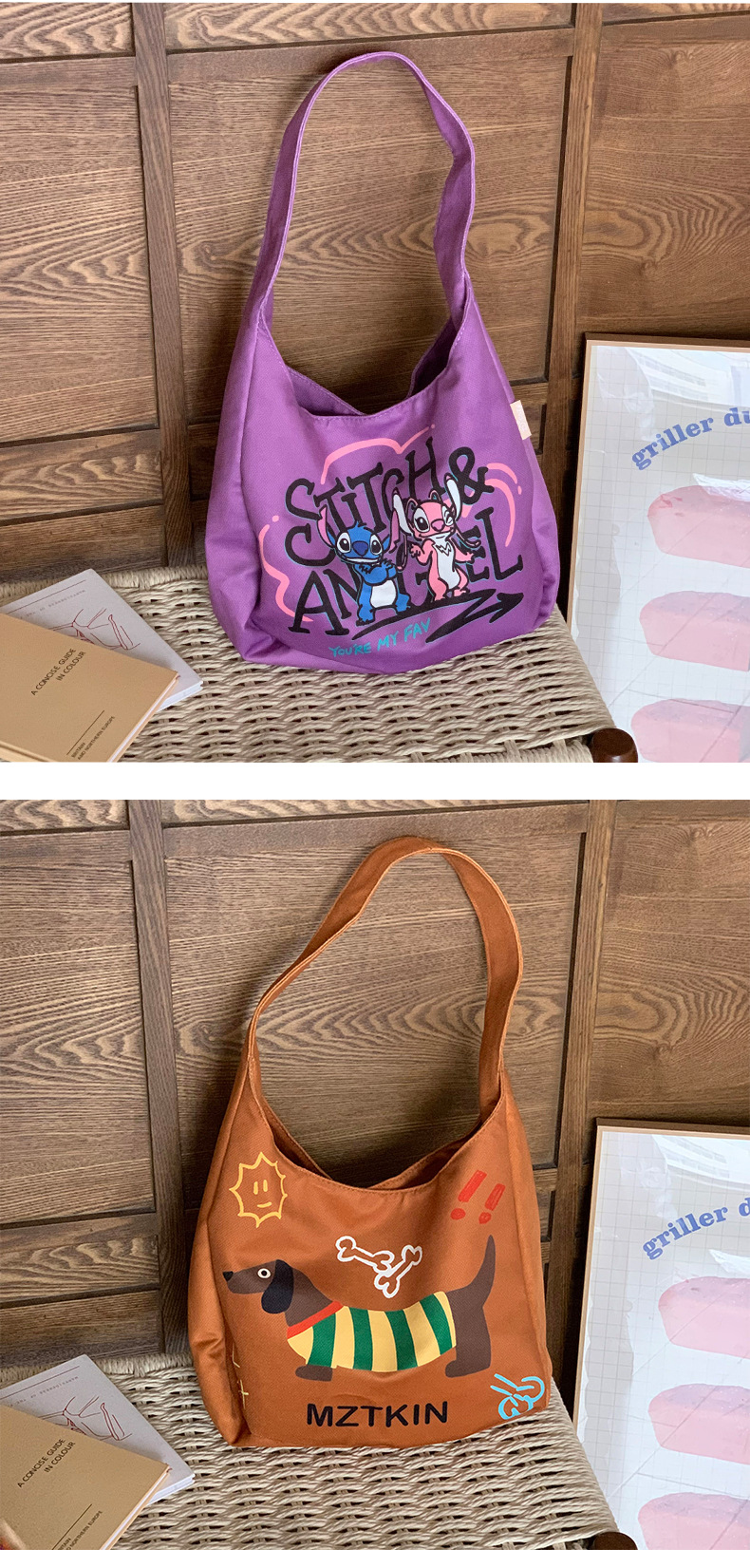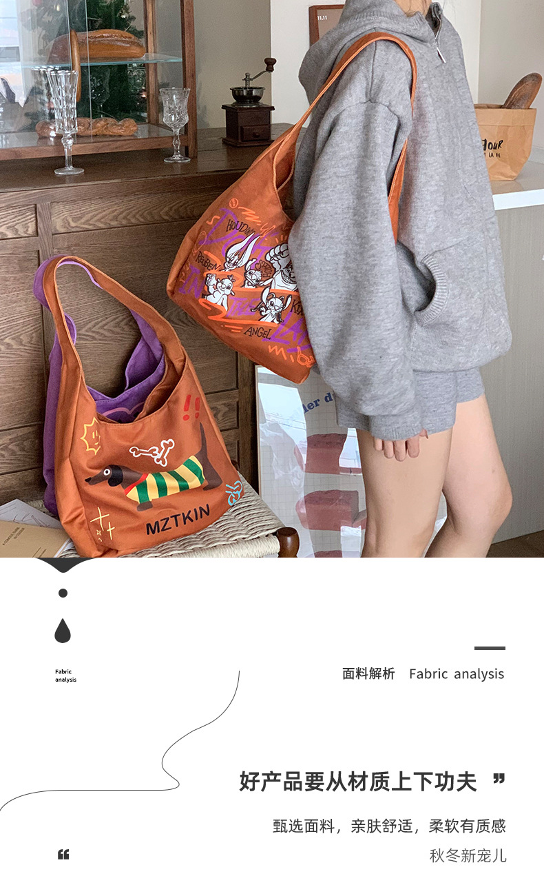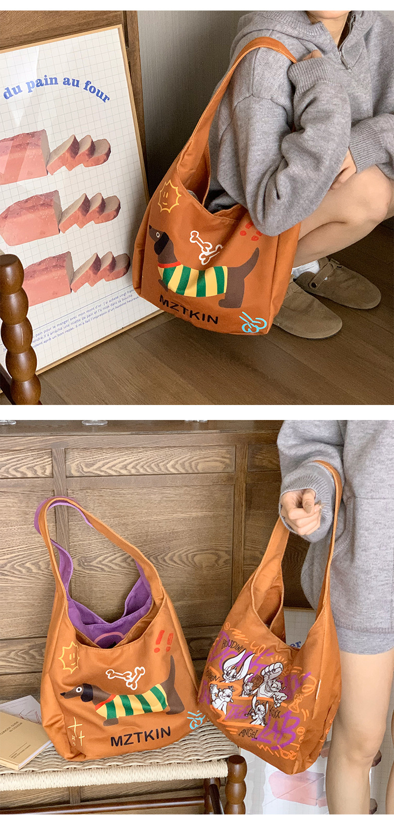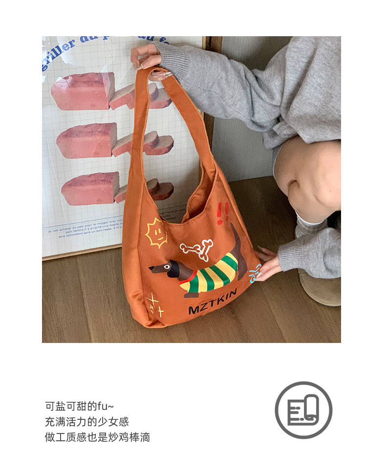 Bolsa de mano de gran capacidad, bolso de mano, bolso de hombro portátil, estilo coreano de perro salchicha encantador de dibujos animados.