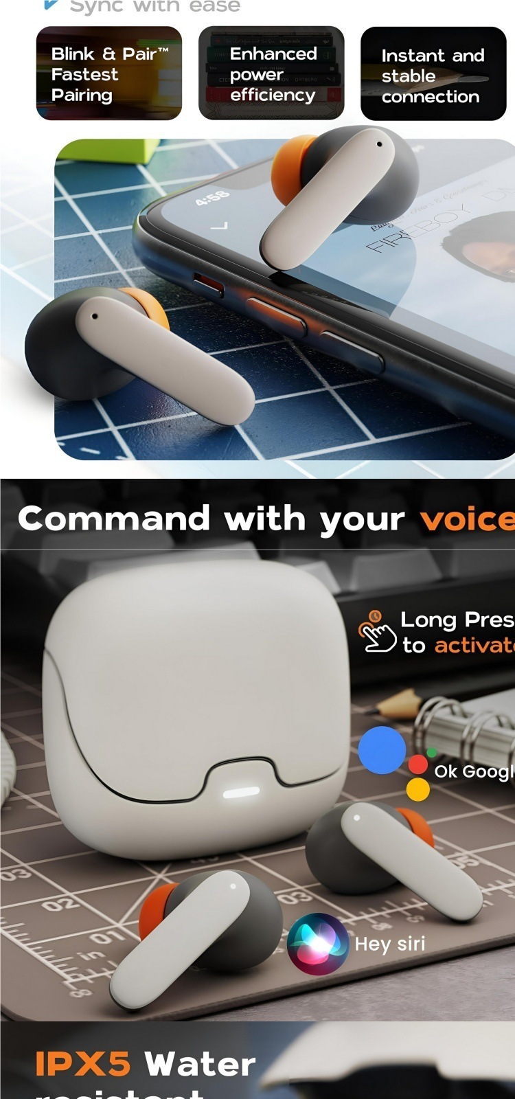 Blanco beige [5.3/4 reducción de ruido de trigo ENC],Negro [Reducción de ruido de trigo 5.3/4 ENC]