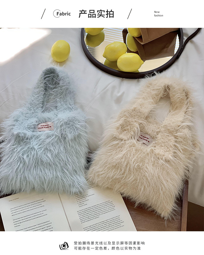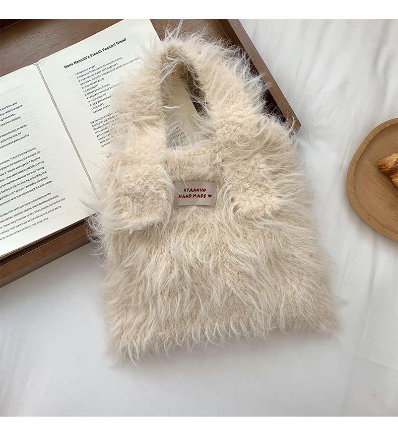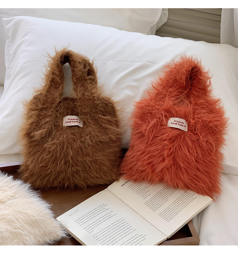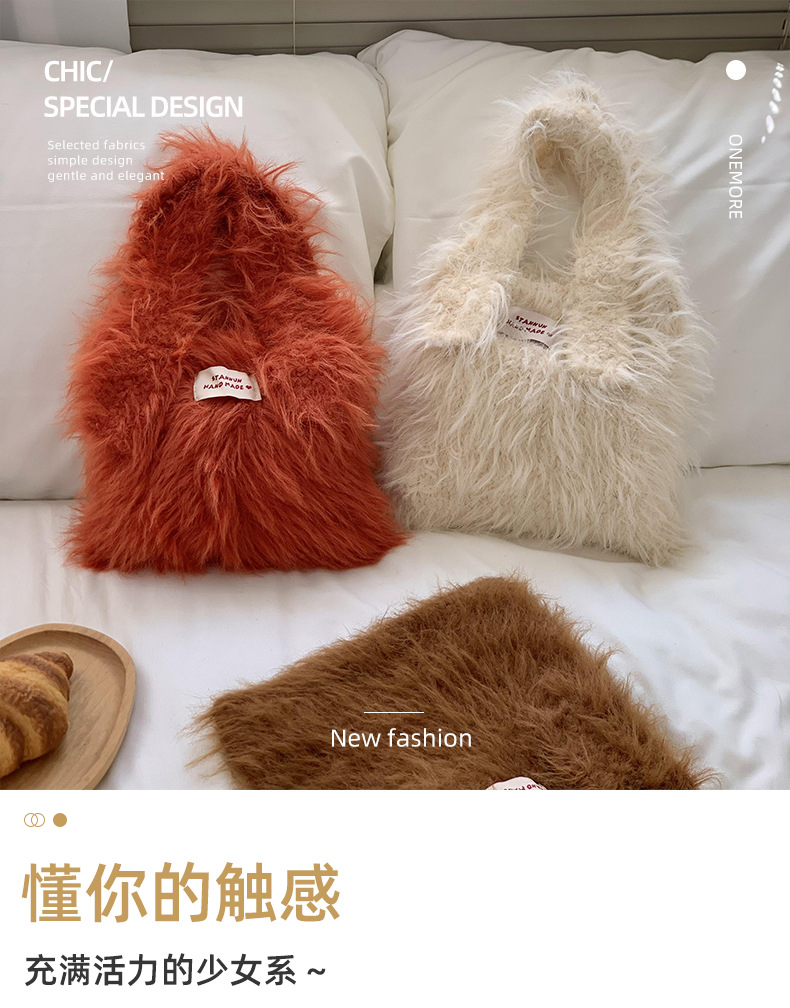 Bolso de mano mujer 2025 nuevo color caramelo nicho de diseño de gran capacidad de transporte de peluche bolso de brazo al por mayor