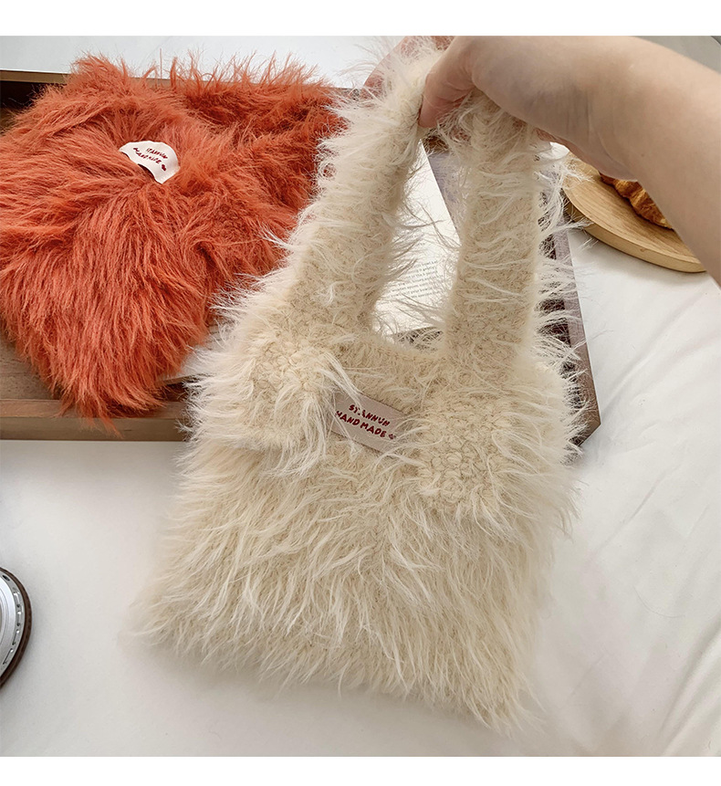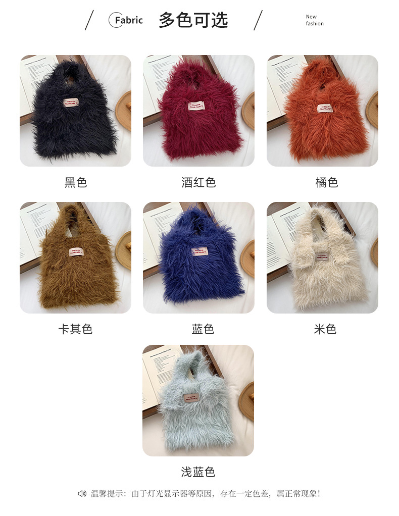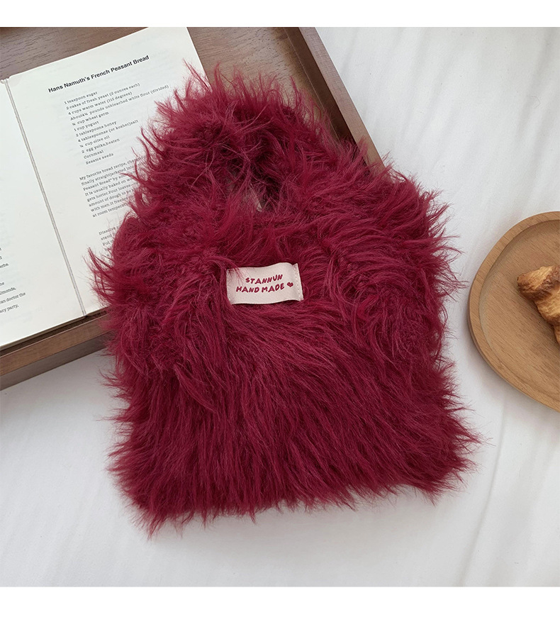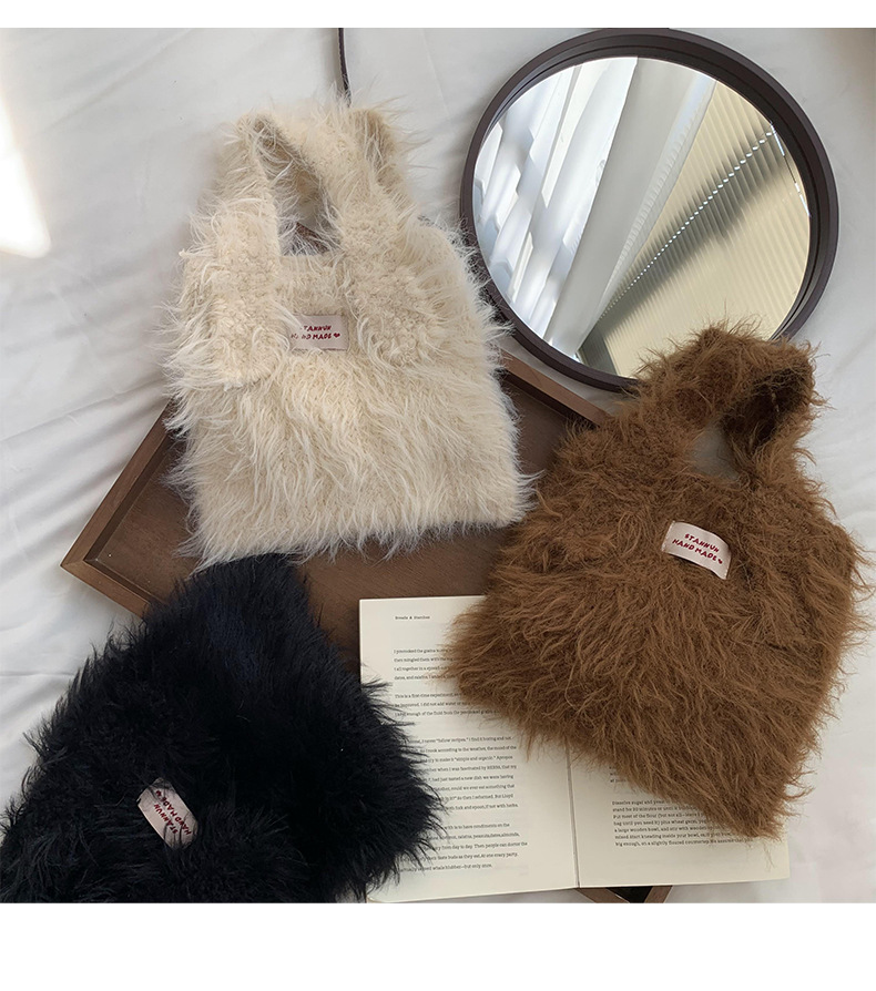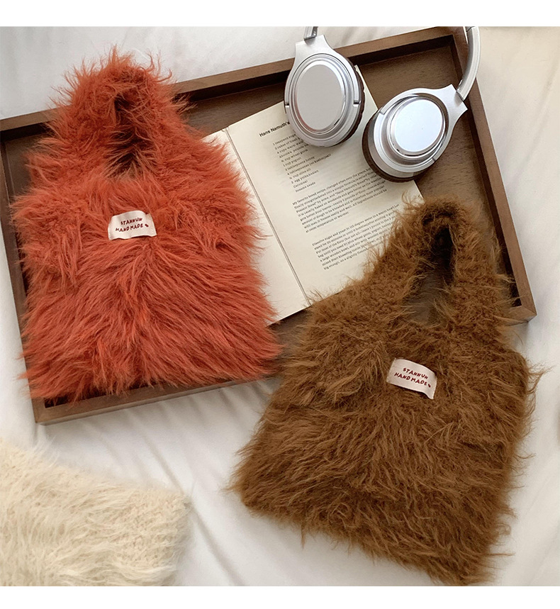 Bolso de mano mujer 2025 nuevo color caramelo nicho de diseño de gran capacidad de transporte de peluche bolso de brazo al por mayor