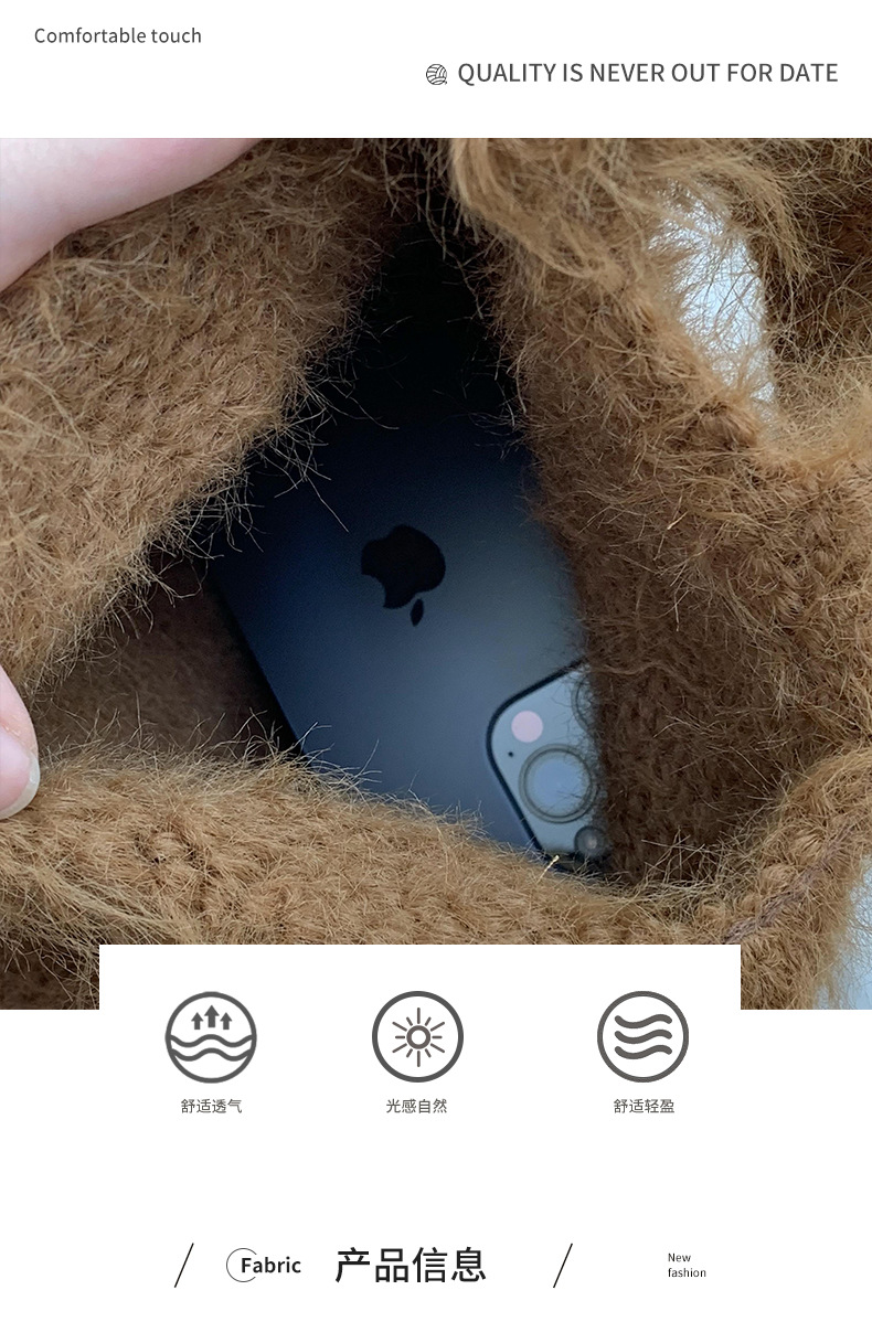 Bolsa de tejido coreana ins bolsas de gancho hechas a mano de color sólido bolsas de lana lindas bolsas de mano de otoño y invierno para llevar bolsas de teléfono móvil