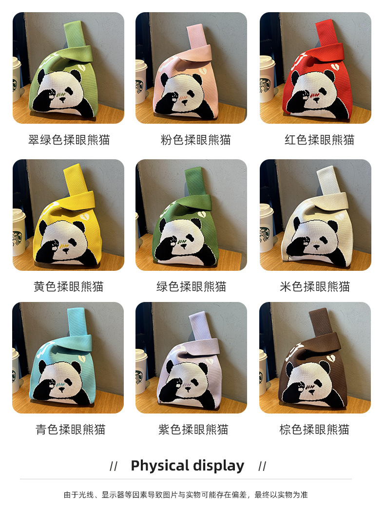 | Color | Panda de amasado de ojos verde turquesa, panda de amasado de ojos rosa, panda de amasado de ojos rojo, panda de amasado de ojos amarillo, panda de amasado de ojos verde, panda de amasado de ojos beige, panda de amasado de ojos azul, panda de amasado de ojos morado, panda de amasado de ojos marrón, bolso blanco (modelo ordinario), bolso negro (modelo más largo) |