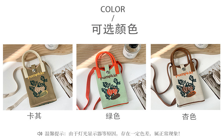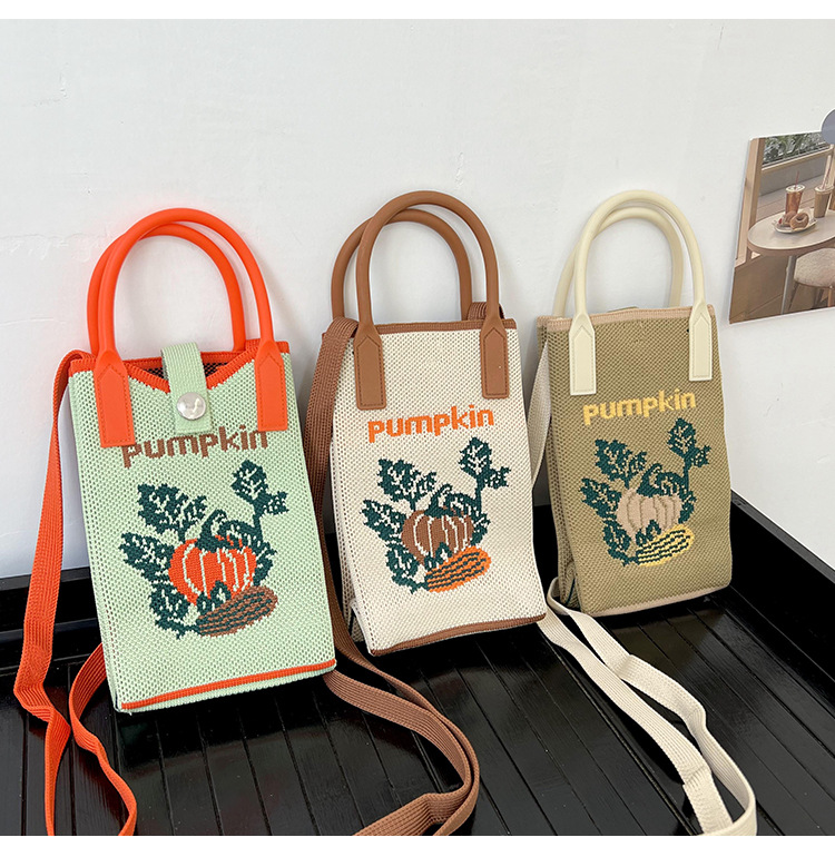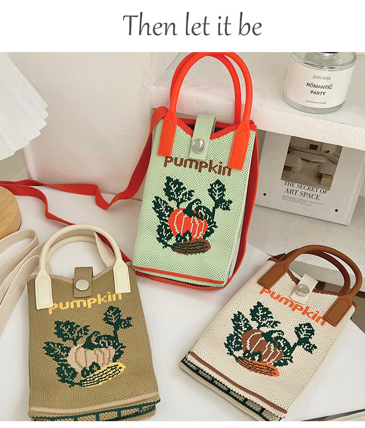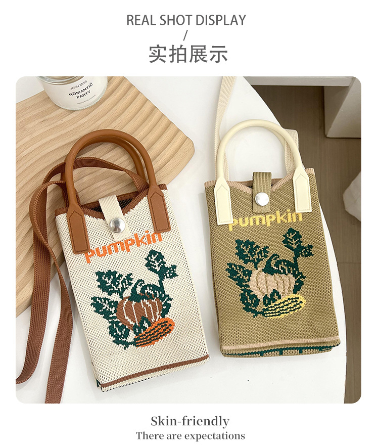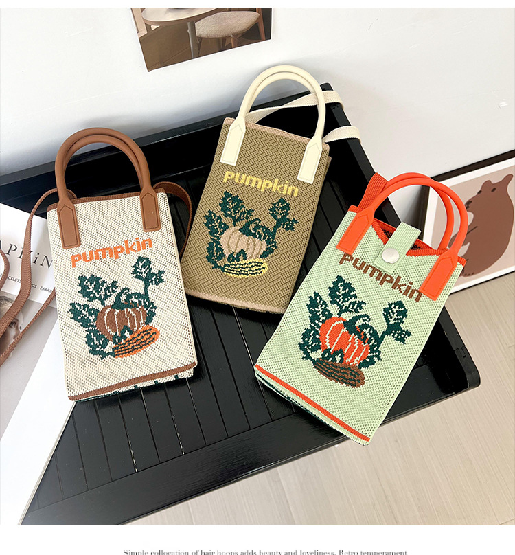 Nuevo diseño de nicho mini bolso para teléfono móvil de punto de vid de calabaza lindo y pequeño monedero de mensajero de un solo hombro portátil