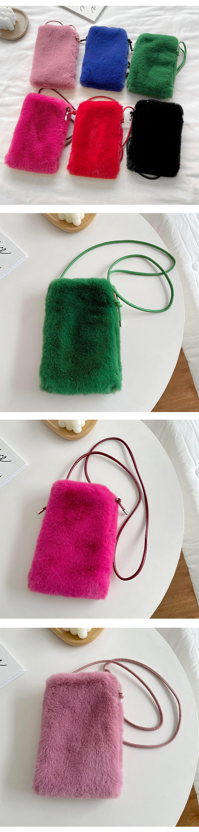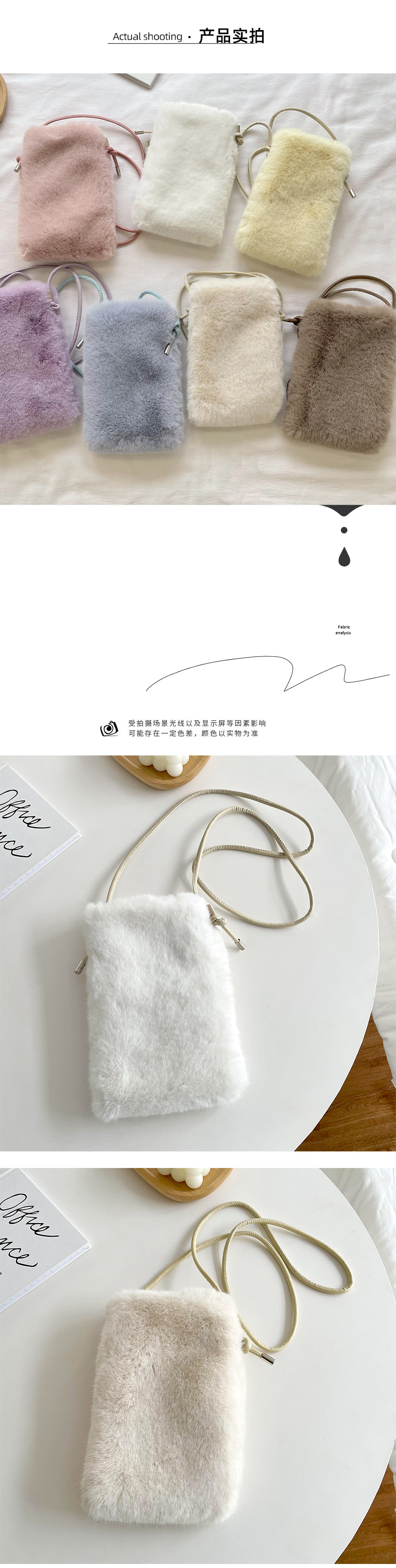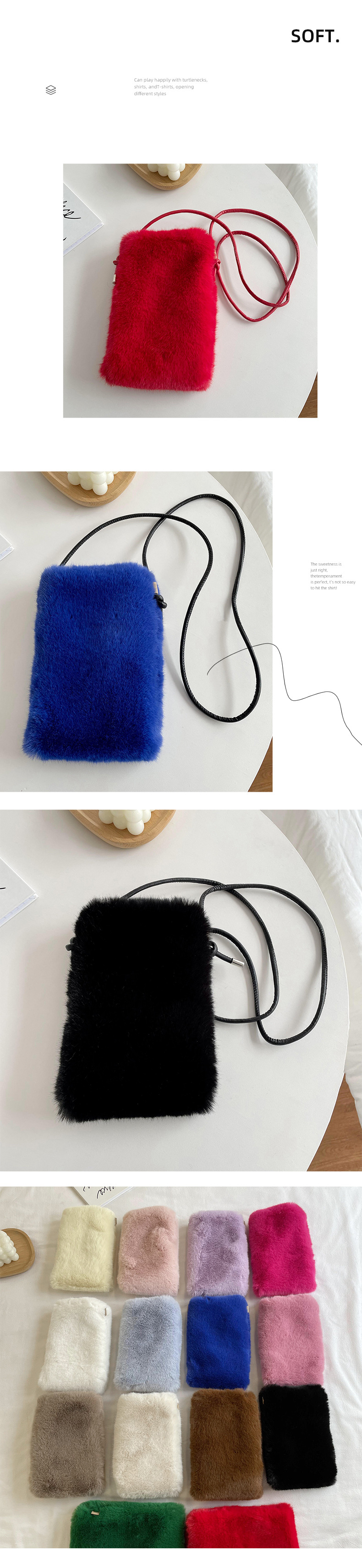 Bolso otoño-invierno nuevo estilo coreano bolso para teléfonos móviles de lana de color sólido, mini bolso de cambio, bolso de hombro de peluche para mujeres