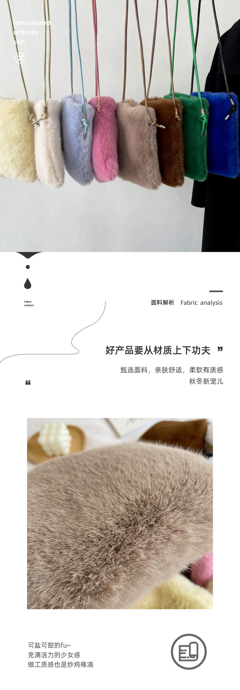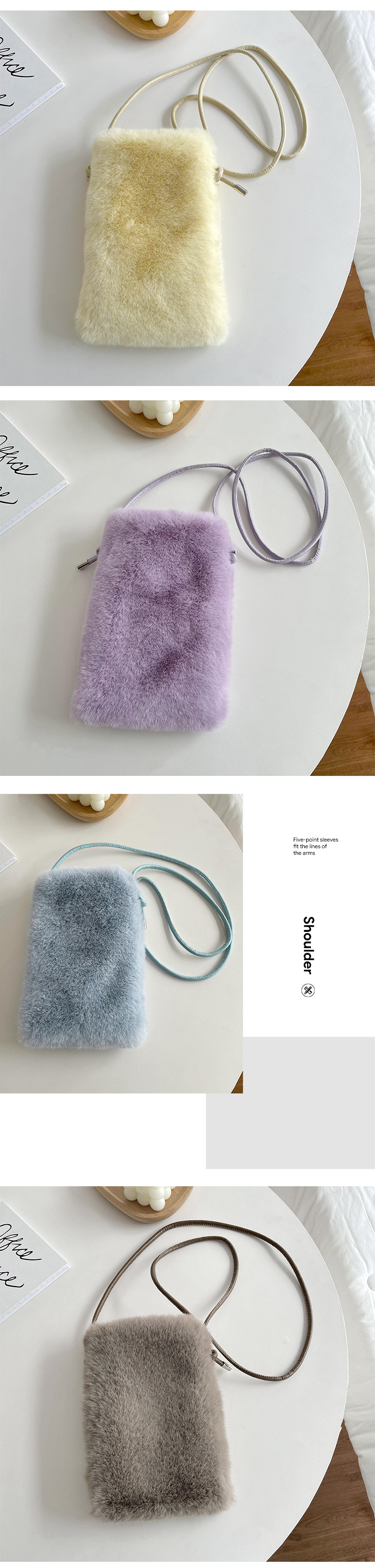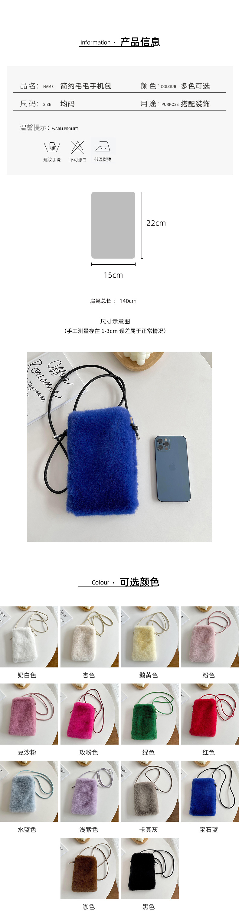 Bolso otoño-invierno nuevo estilo coreano bolso para teléfonos móviles de lana de color sólido, mini bolso de cambio, bolso de hombro de peluche para mujeres