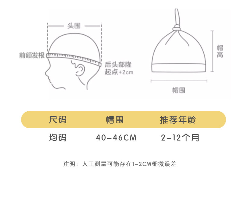 | Talla | Edad recomendada de 2 - 12 meses (perímetro de la cabeza 40 - 46 cm) - colección más compra, envío prioritario |