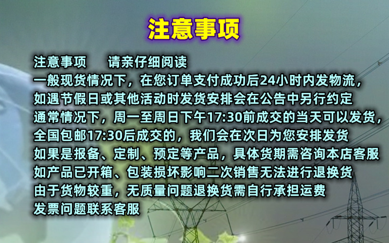 1、本店铺所售产品,为厂家,常规型号一般为现货,特殊项目品牌和型号需要跟厂家报备,具体请先咨询本店客服。