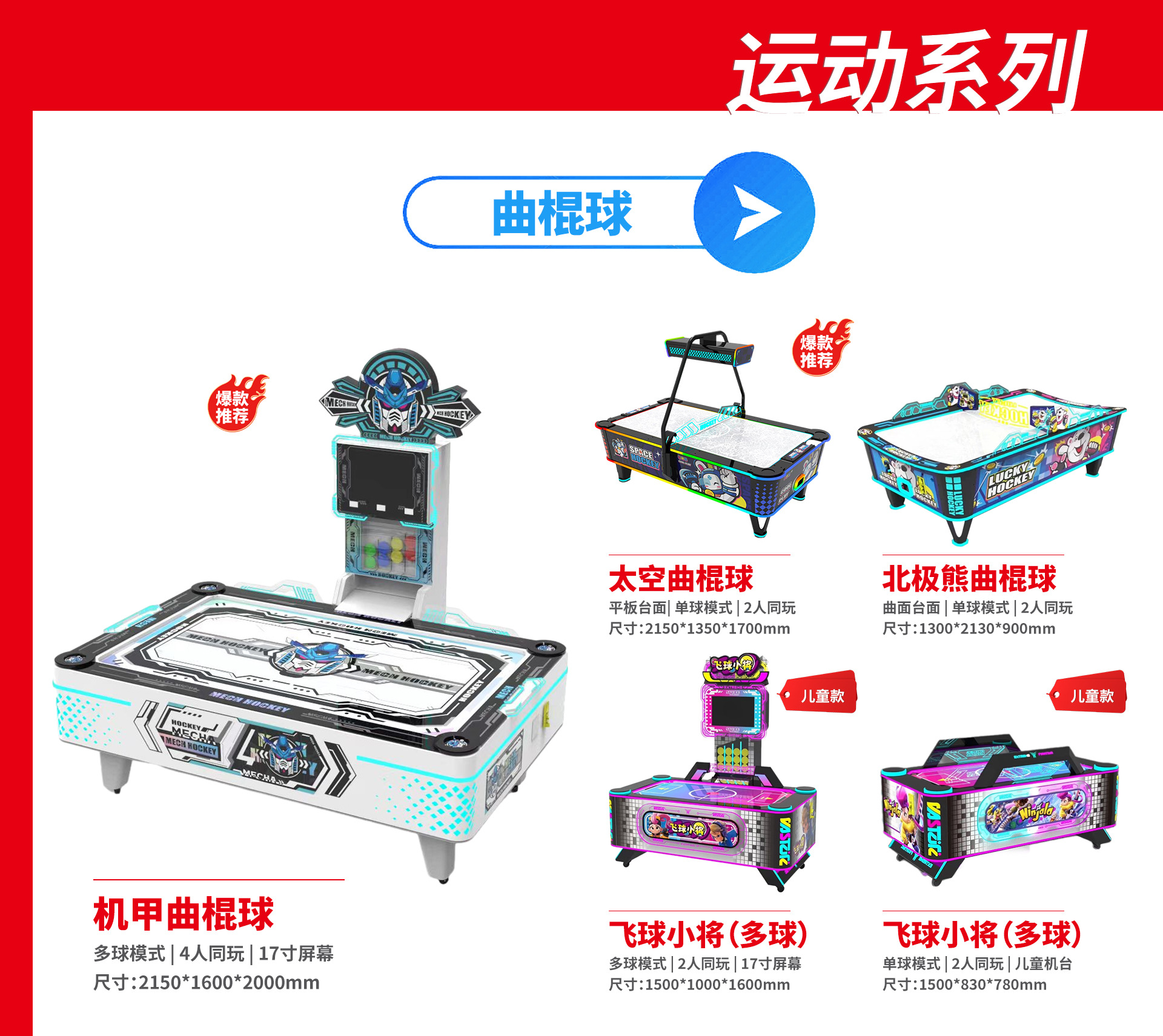 | Especificaciones | Hockey espacial para niños,Flying Ball Junior Hockey para niños (pelota única),Flying Ball Junior Hockey para niños (múltiples bolas),Hockey Mecha (pelota múltiple),Hockey espacial (pelota única),Hockey sobre el oso polar (pelota única),Hércules cohete,Boxing Overlord,Hércules,Puño de dragón,Enlace de depósito |