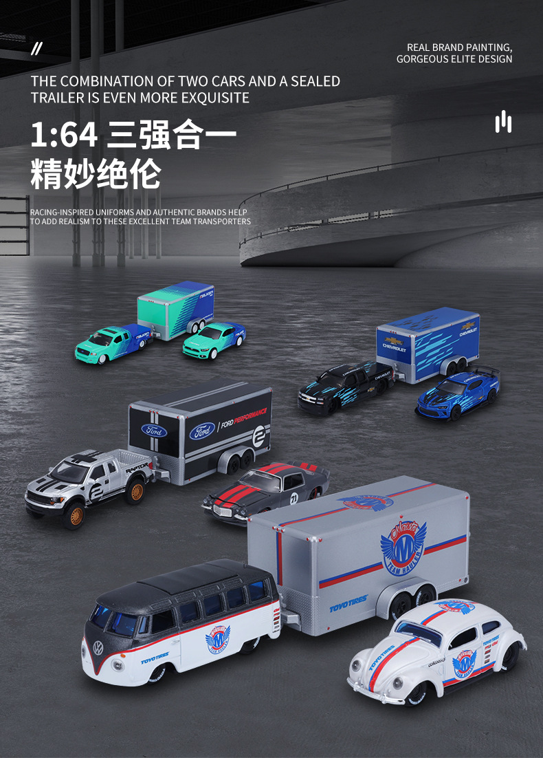 | Colores | Trailer tres en uno Chevrolet Camero-Azul Negro,Trailer Ford 3 en 1-Azul Verde,Ford GT 3 en 1 remolque-plata negra,Volkswagen trailer tres en uno-blanco plateado,Chevrolet trailer tres en uno-negro plata,Chevrolet Z28 Transporte Tres en Uno,Ford Bronco remolca Ford Mustang tres en uno,Camioneta Ford 1993 Ford SVT Cobra,Chevrolet pickup remolcar Subaru BRZ,1988 BMW 3 Series M3,Camioneta Chevrolet Camioneta Camioneta Chevy 1936 Rojo Blanco,1:64 transportador de contenedores metal negro,1979chevroletk5 blazer-amarillo |