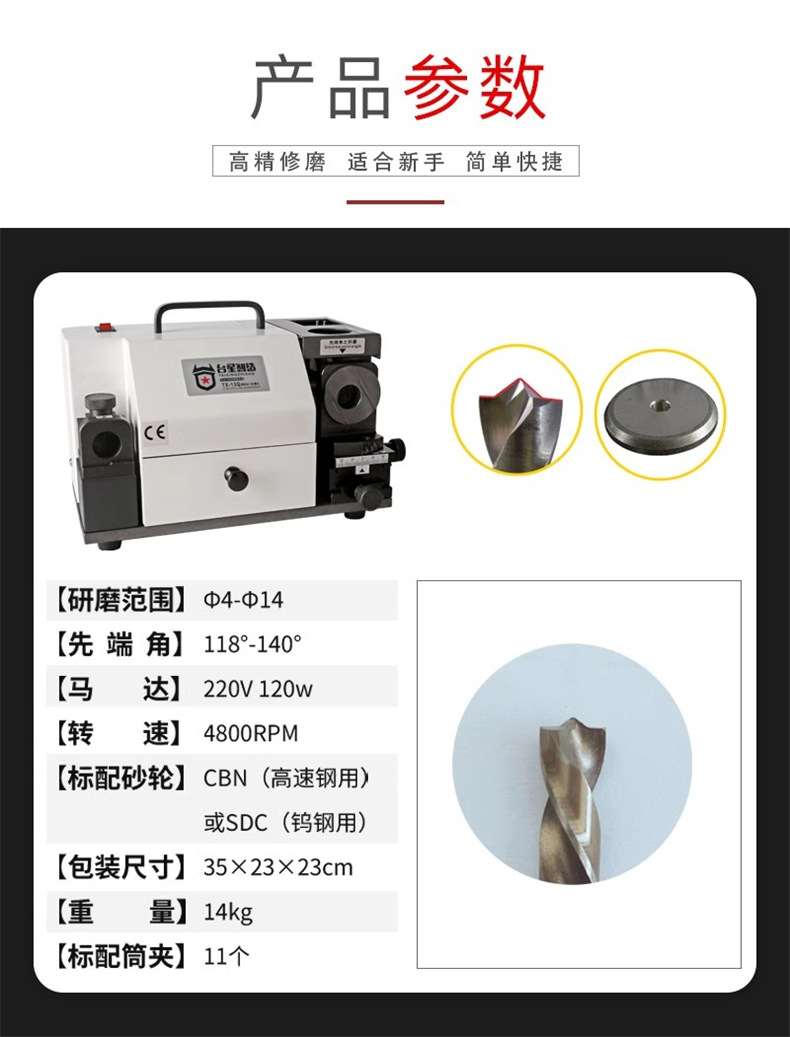 Molino de taladro de hoja TX - 13q (rango 4 - 14mm), rueda de molienda TX - 13q (cbn sdc)