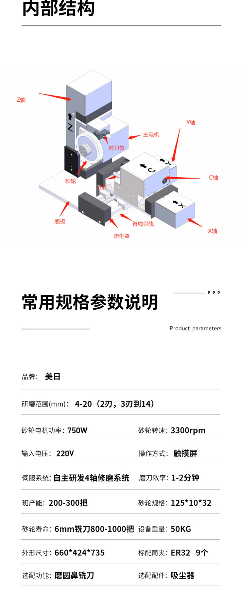 Máquina rectificadora de corte de fresado CNC estadounidense-japonesa rectificadora de precisión automática CNC máquina CNC de cuatro ejes 2.3.4 Máquina rectificadora de corte de fresado de cuchilla