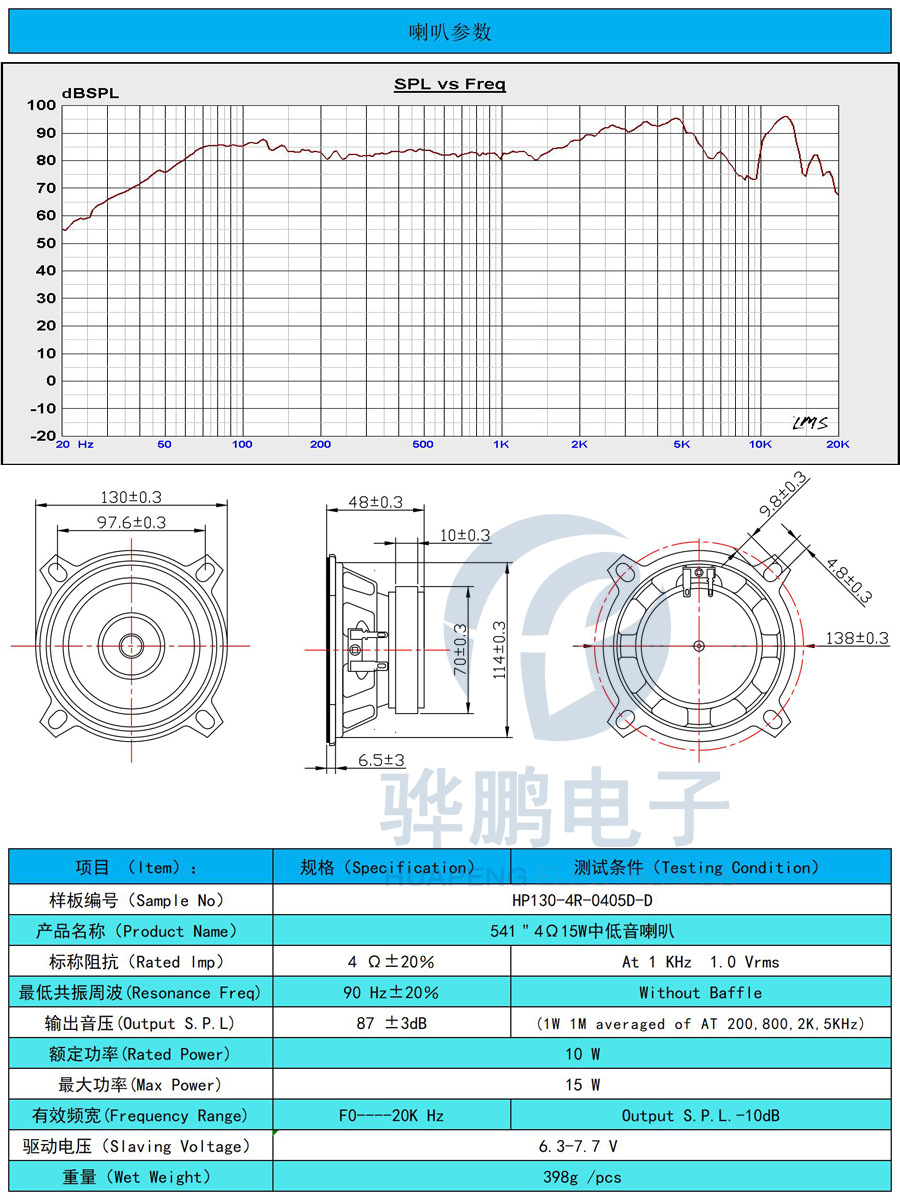 Altavoz de coche de 5.25 pulgadas y 15W, 541 mid-woofer de 4 ohmios, fabricante de altavoces de rango completo de 20W
