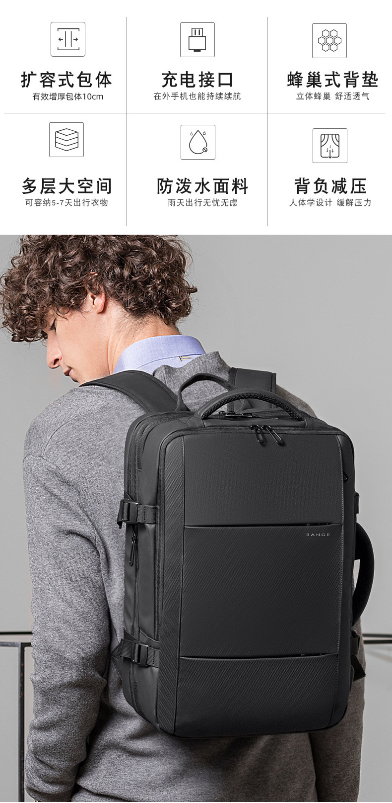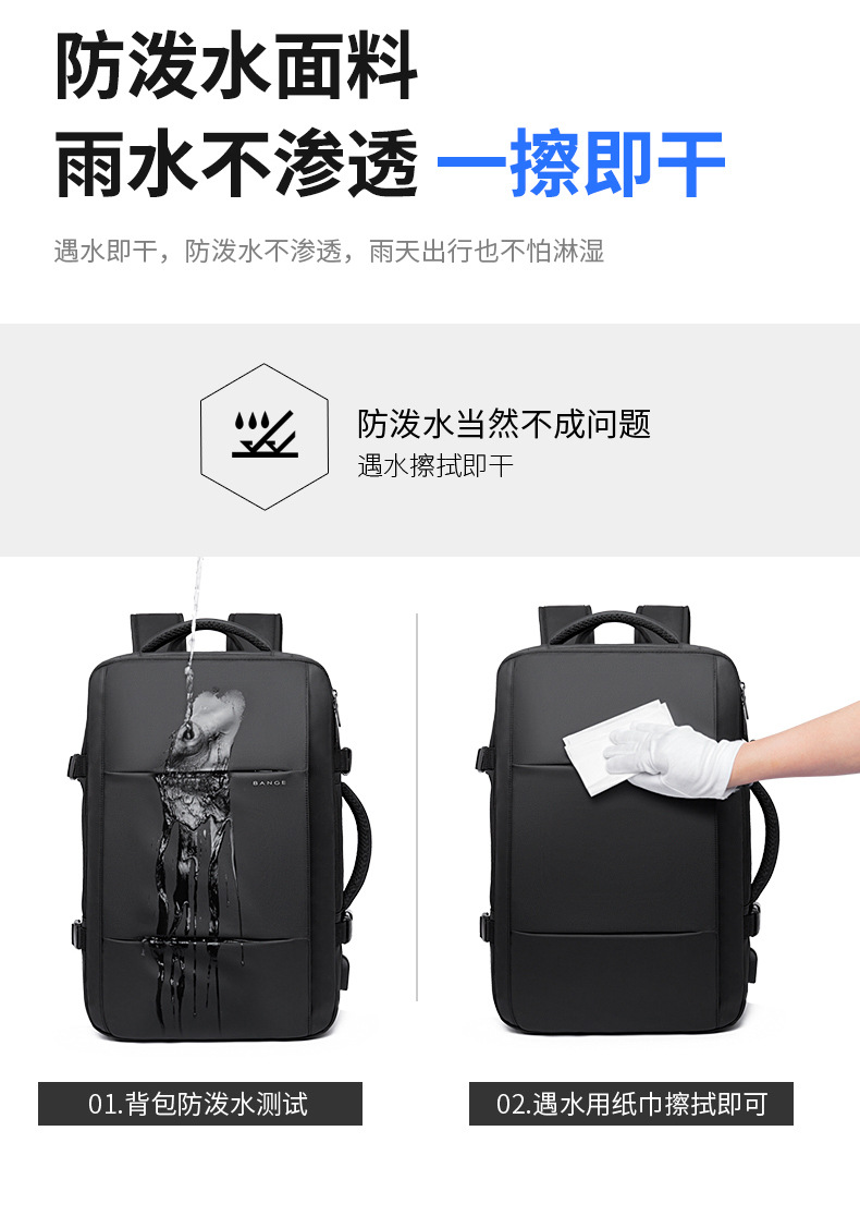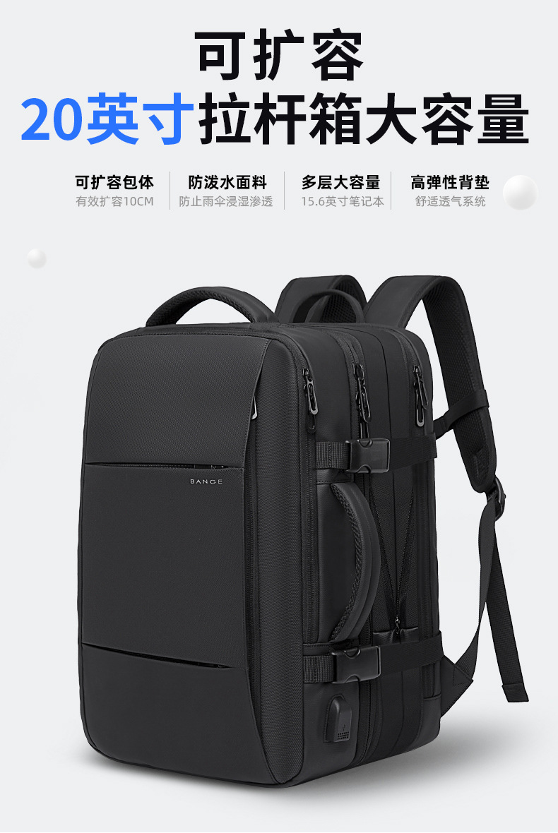 Mochila BANGE de gran capacidad – mochila expandible para portátil, viaje, impermeable con puerto USB