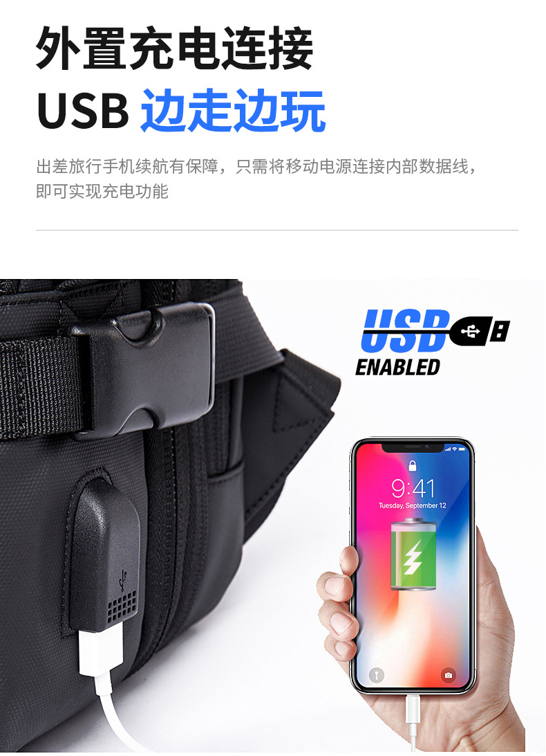 Mochila de ocio para hombre USB de comercio exterior de gran capacidad, portátil y multifuncional para viajes de negocios al aire libre, mochila para computadora de viaje de moda