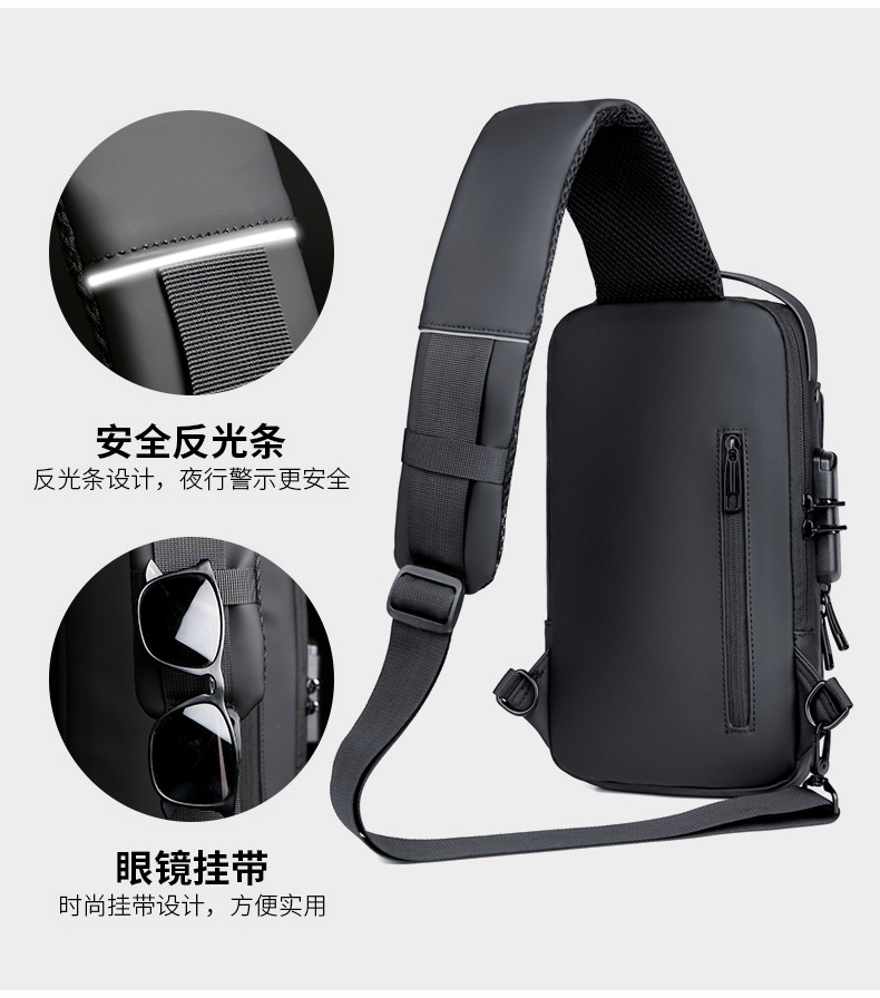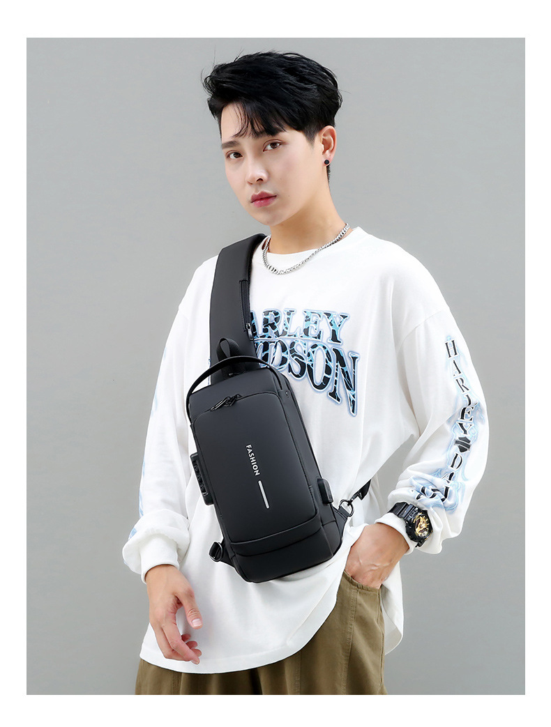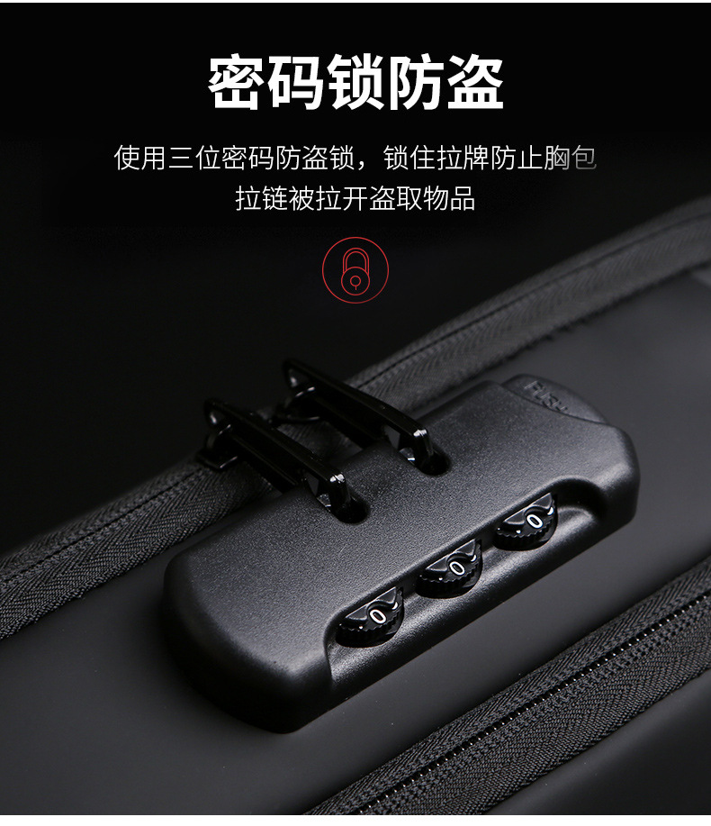 Bolsa de pecho impermeable y antirrobo con candado de contraseña, unisex, ideal para moto y ocio