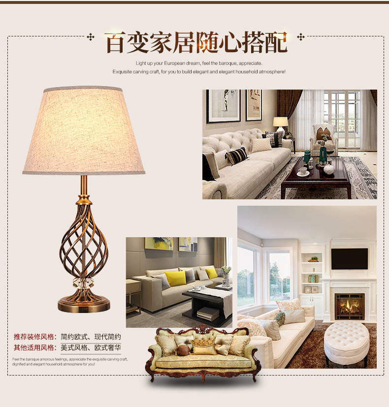 Nuevo Jiayinmei iluminación americana nuevo estilo chino simple europeo industrial hierro cristal lámpara de mesa Hotel ingeniería lámpara de pie al por mayor