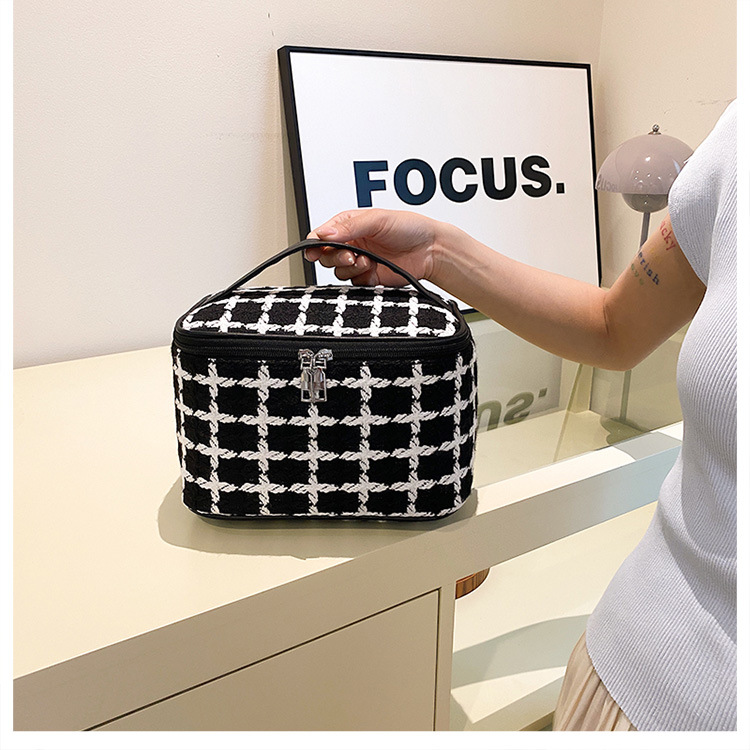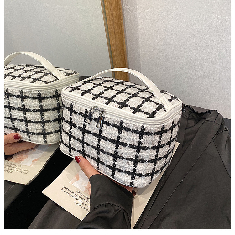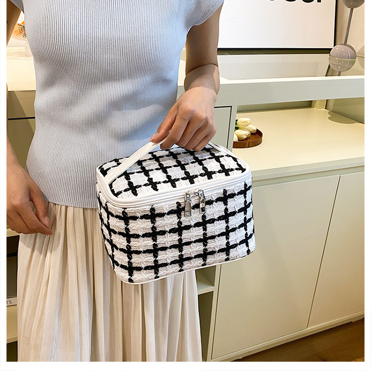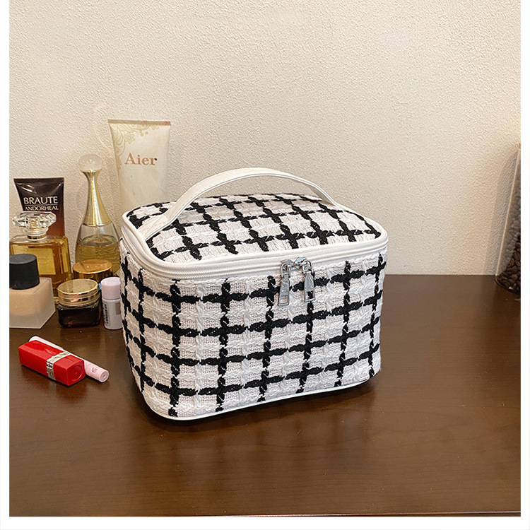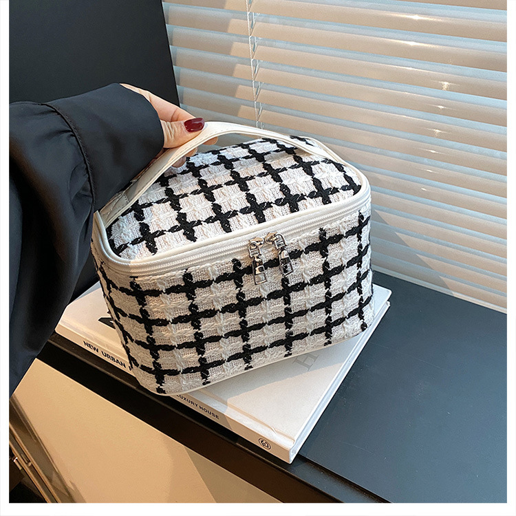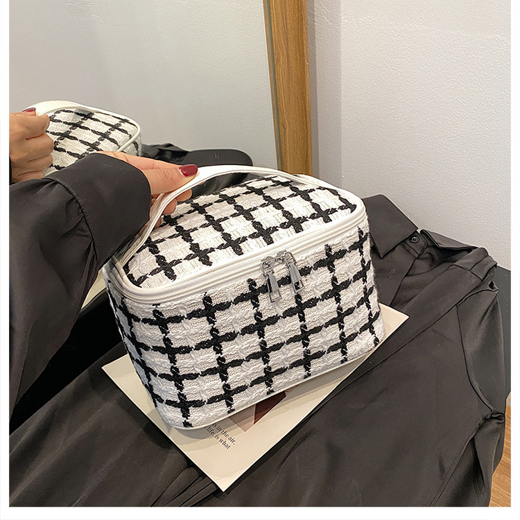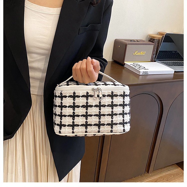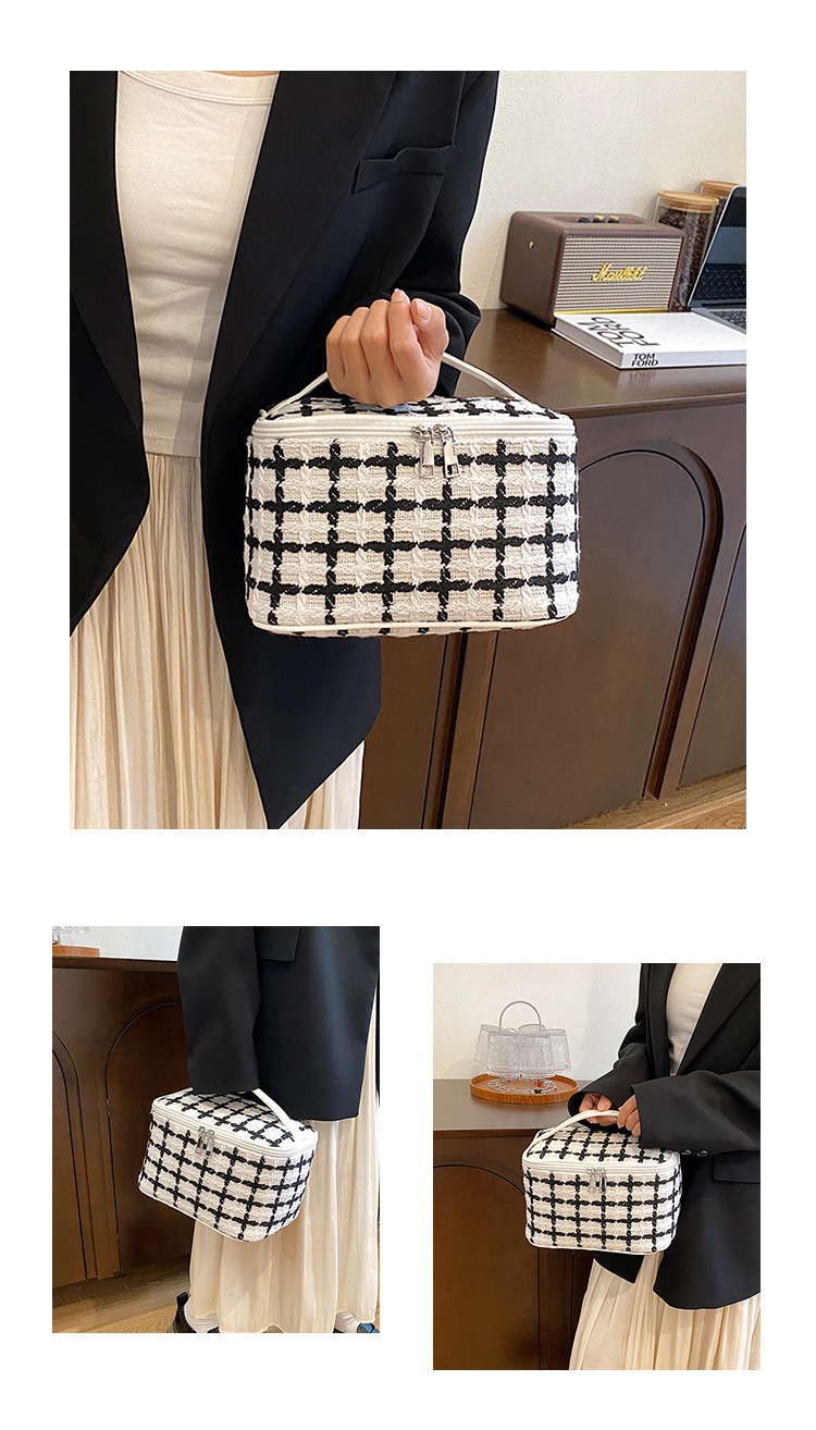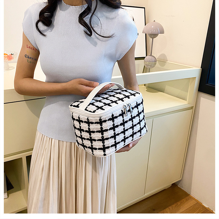 Neceser de Lana a Cuadros de Gran Capacidad - Estilo Coreano, para Maquillaje y Aseo