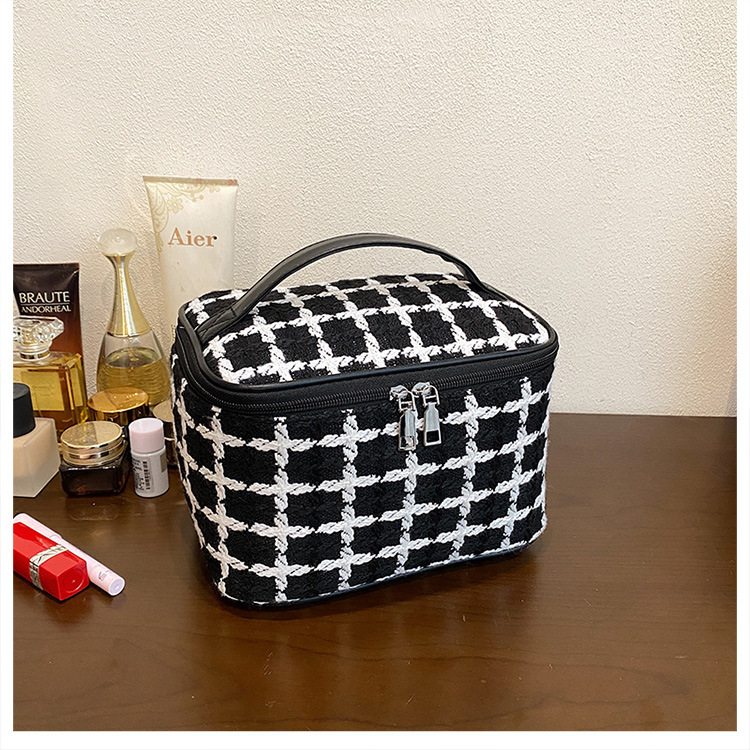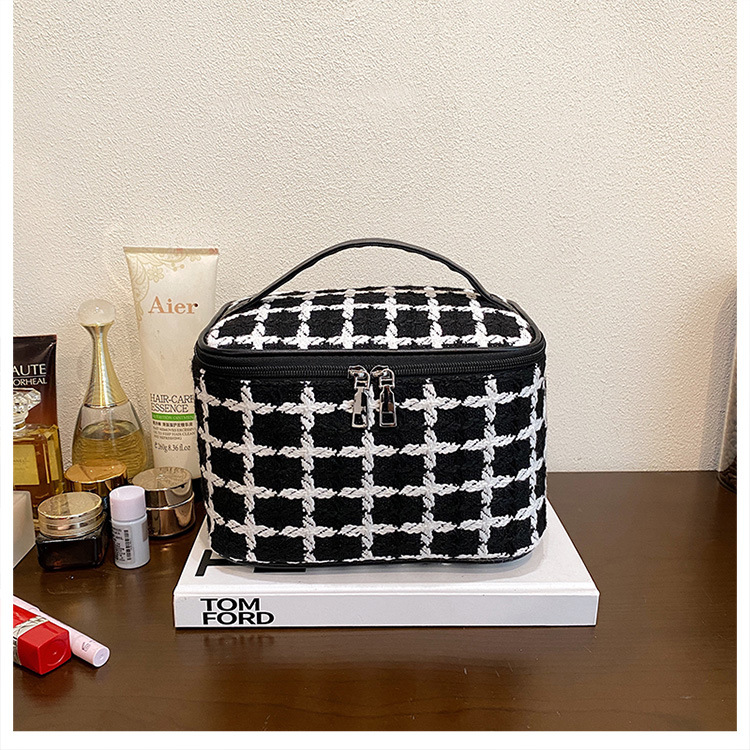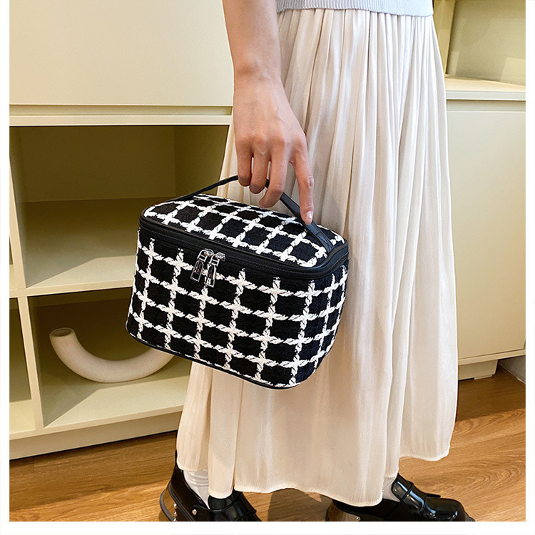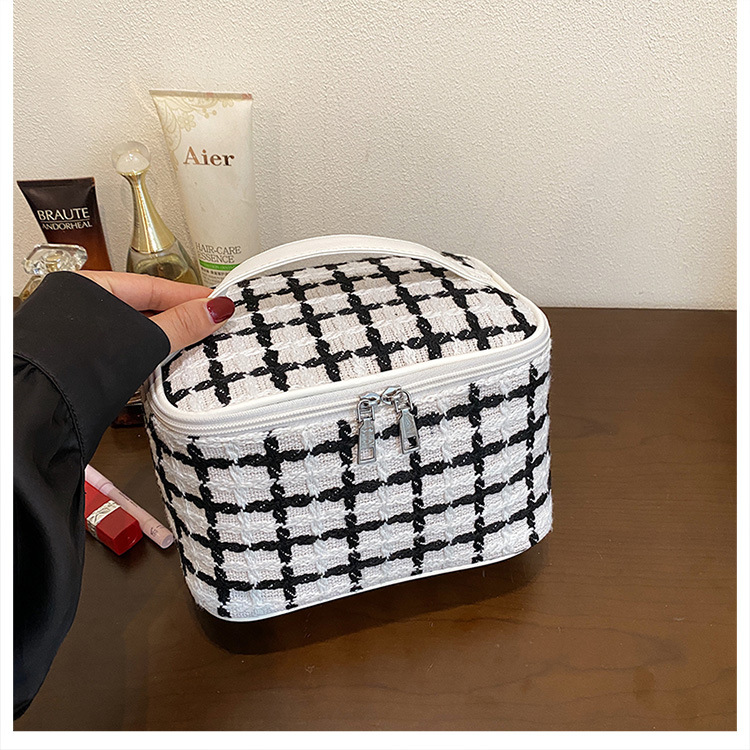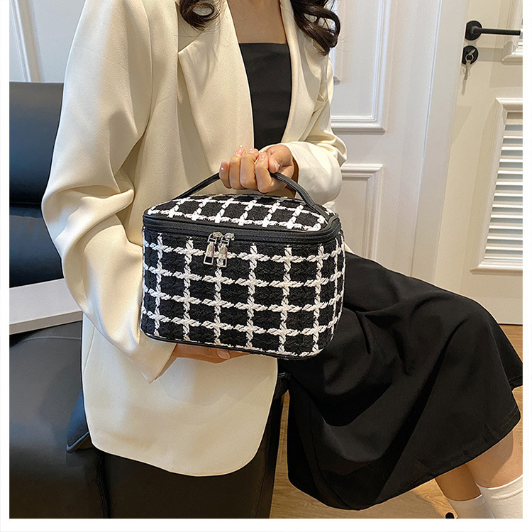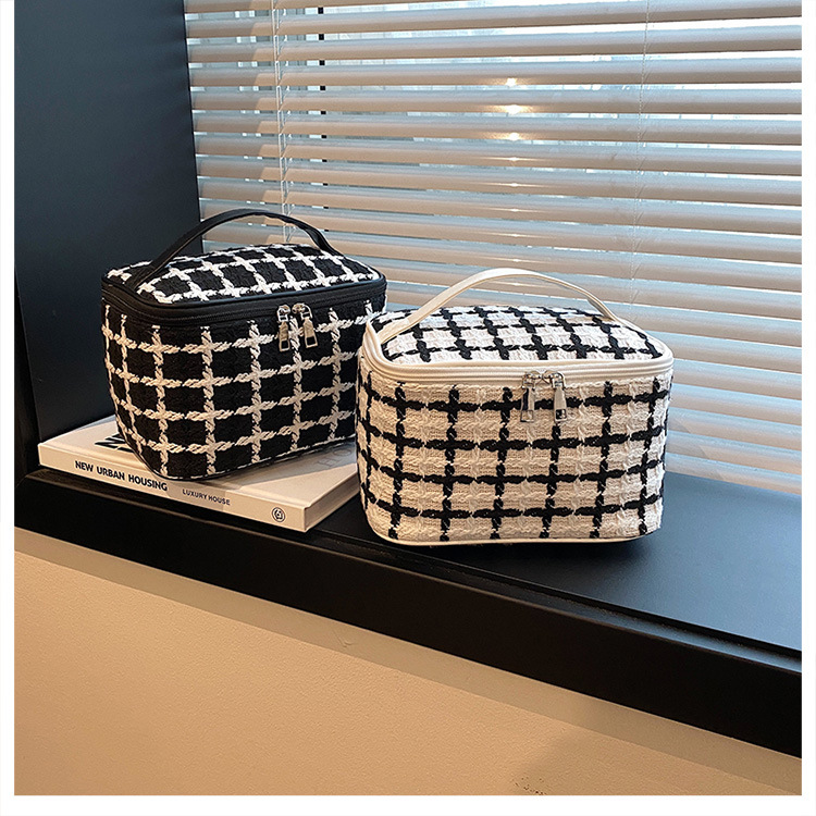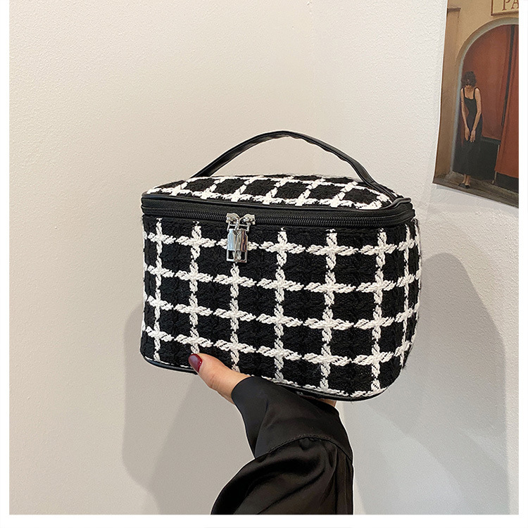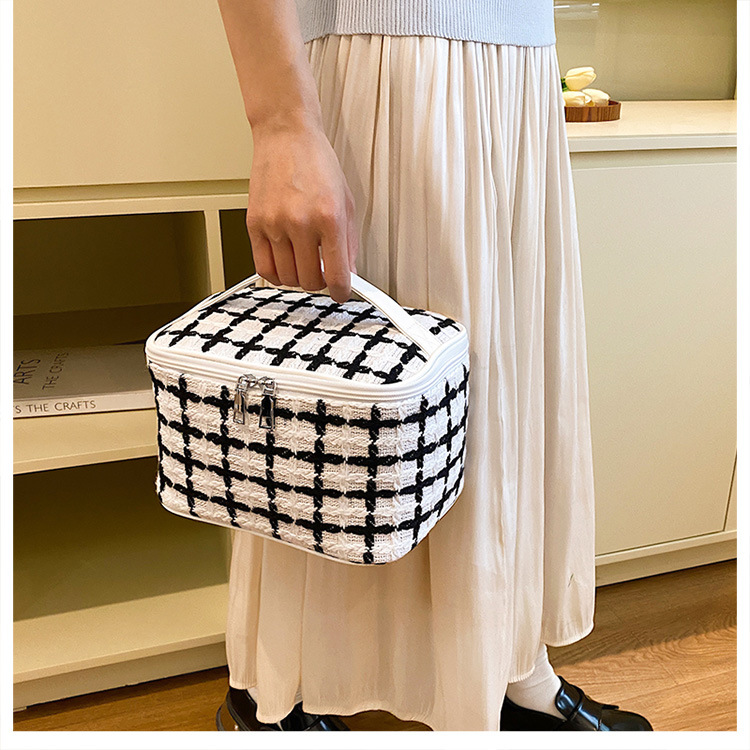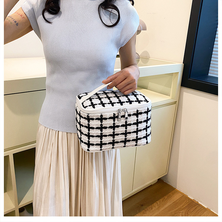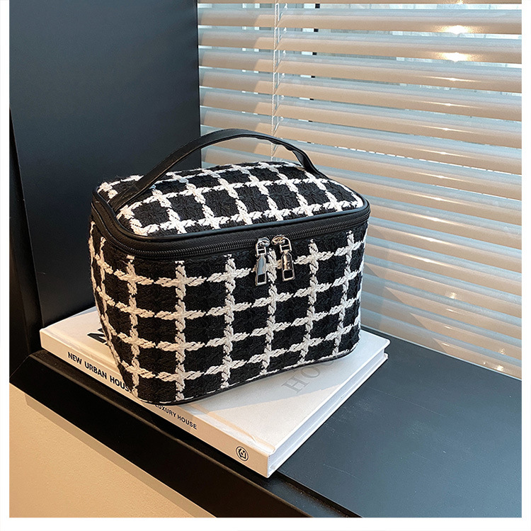 Neceser de Lana a Cuadros de Gran Capacidad - Estilo Coreano, para Maquillaje y Aseo