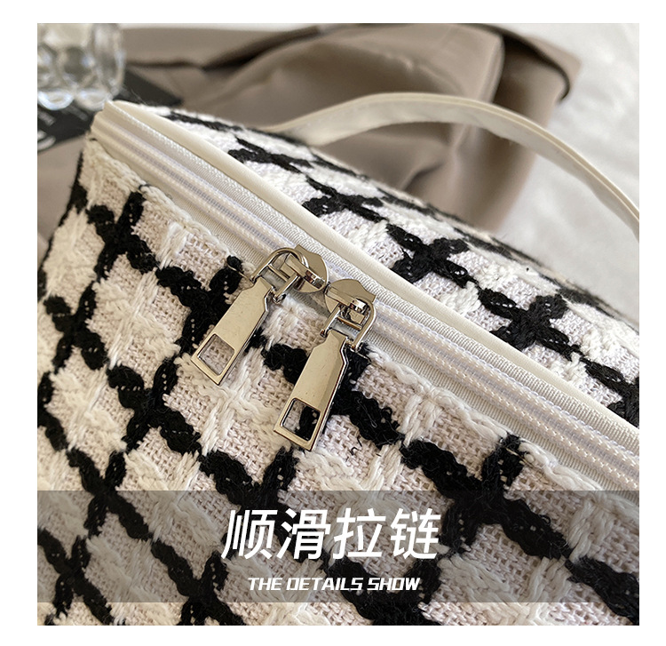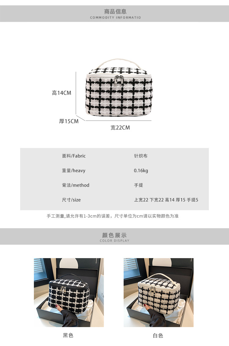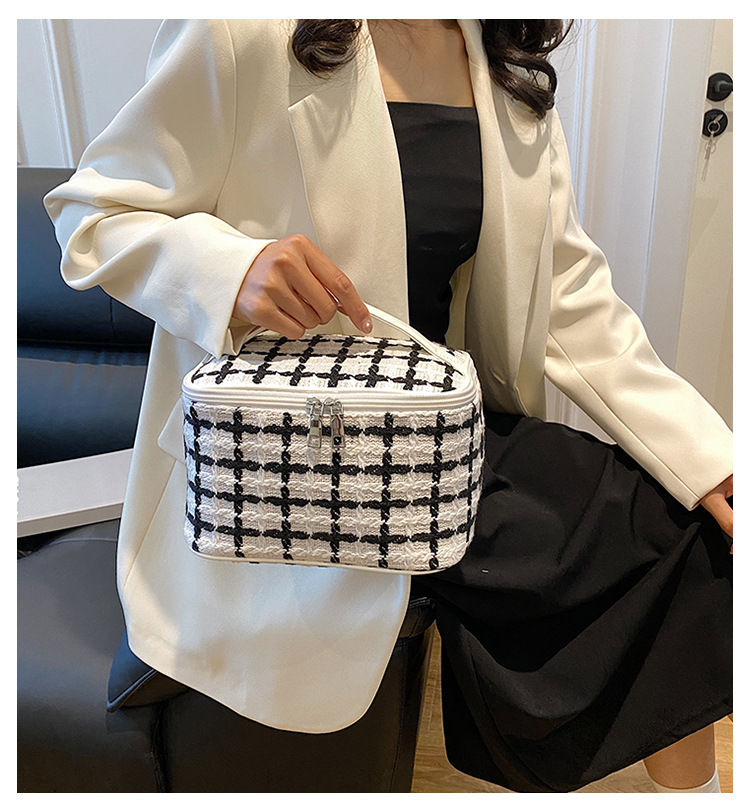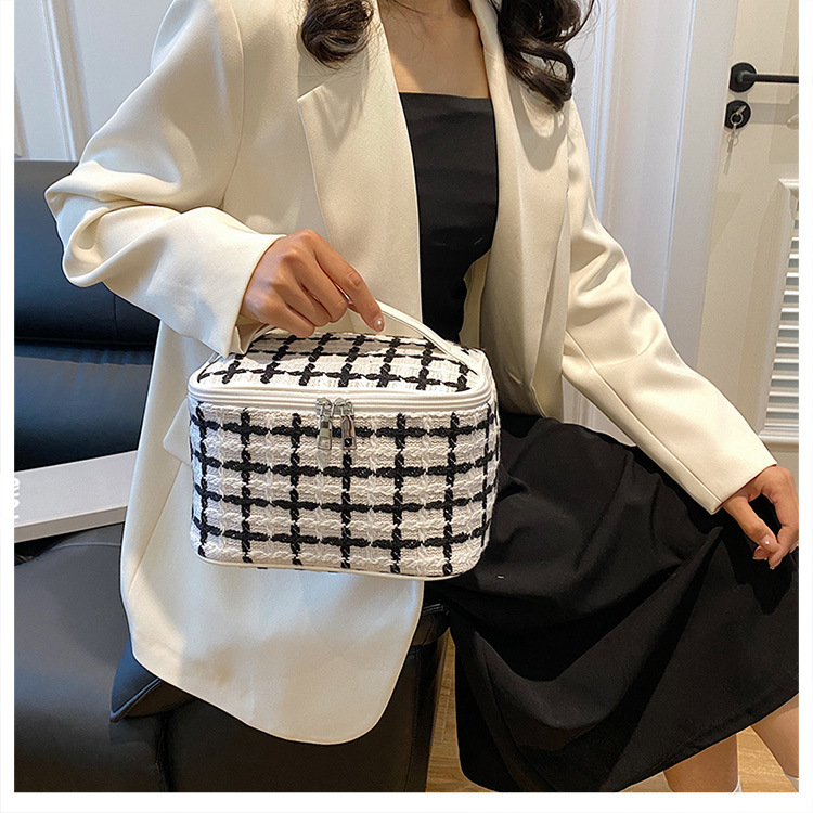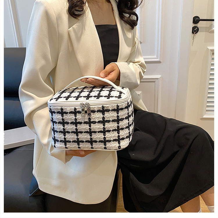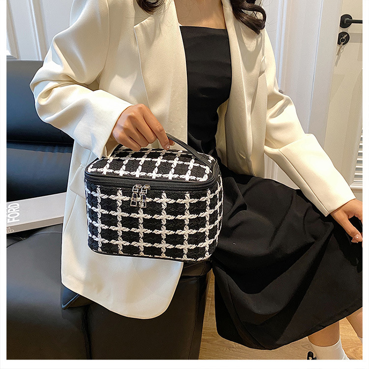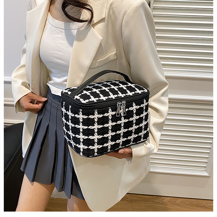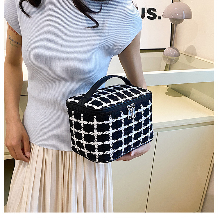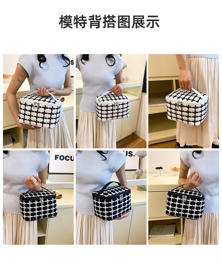 Neceser de Lana a Cuadros de Gran Capacidad - Estilo Coreano, para Maquillaje y Aseo