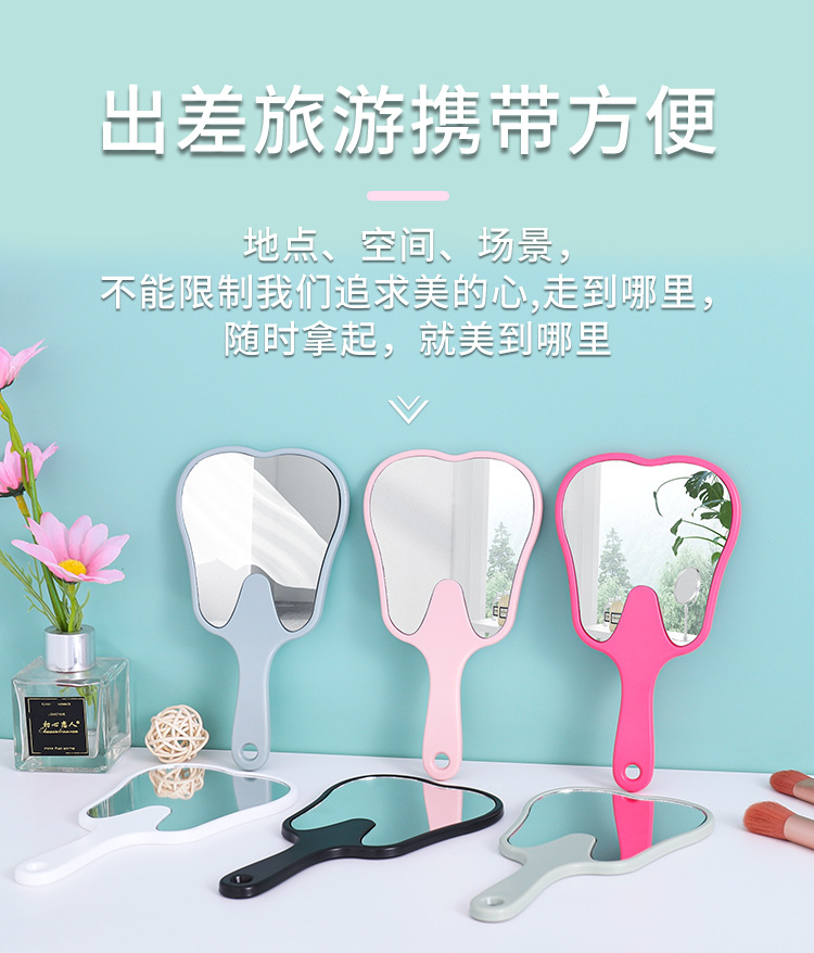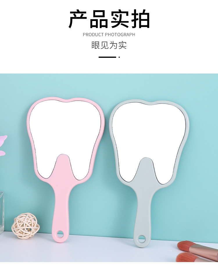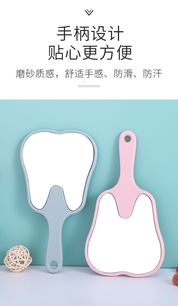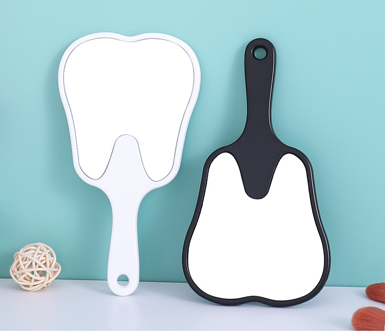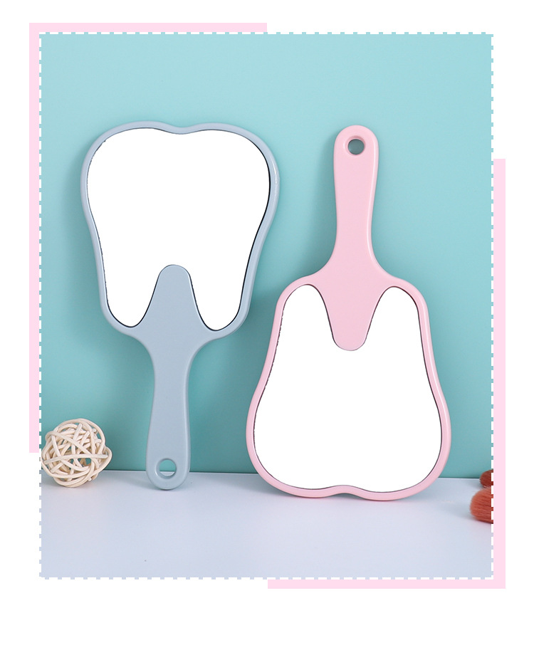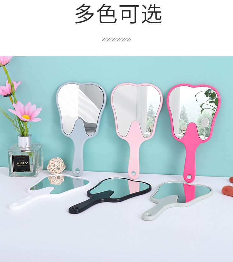Espejo portátil en forma de diente pequeño clínico dental HD espejo de mano multicolor publicitario